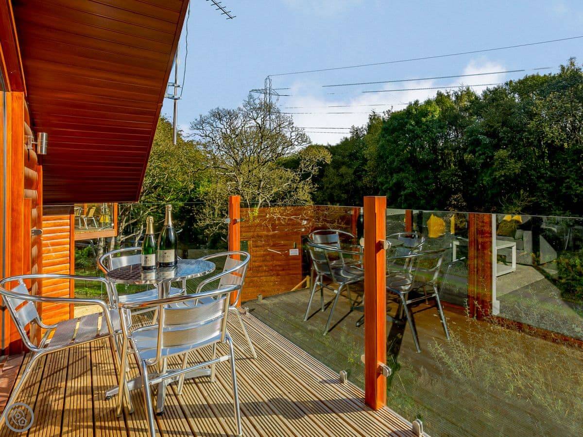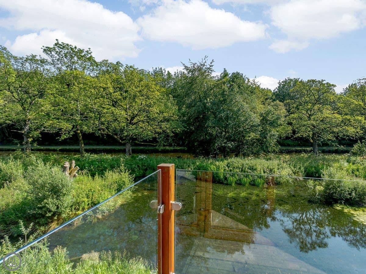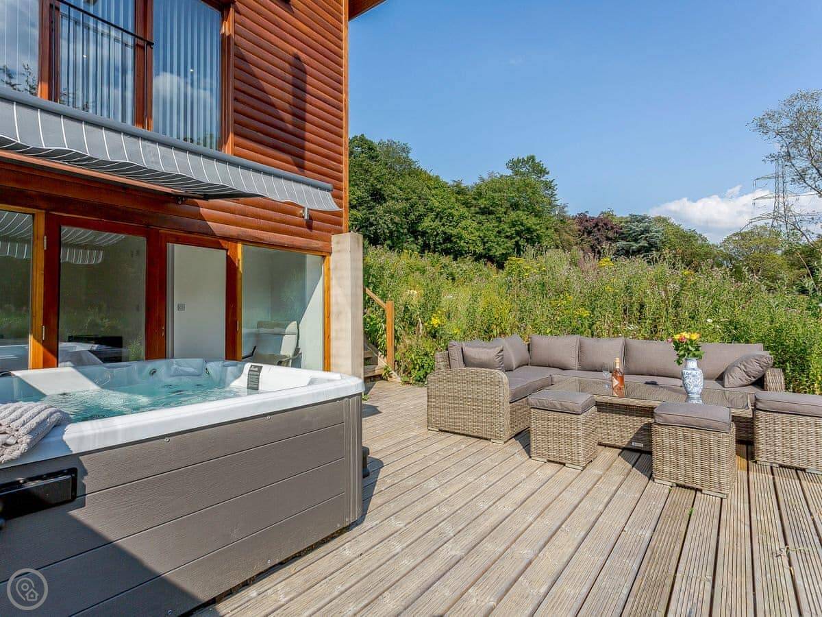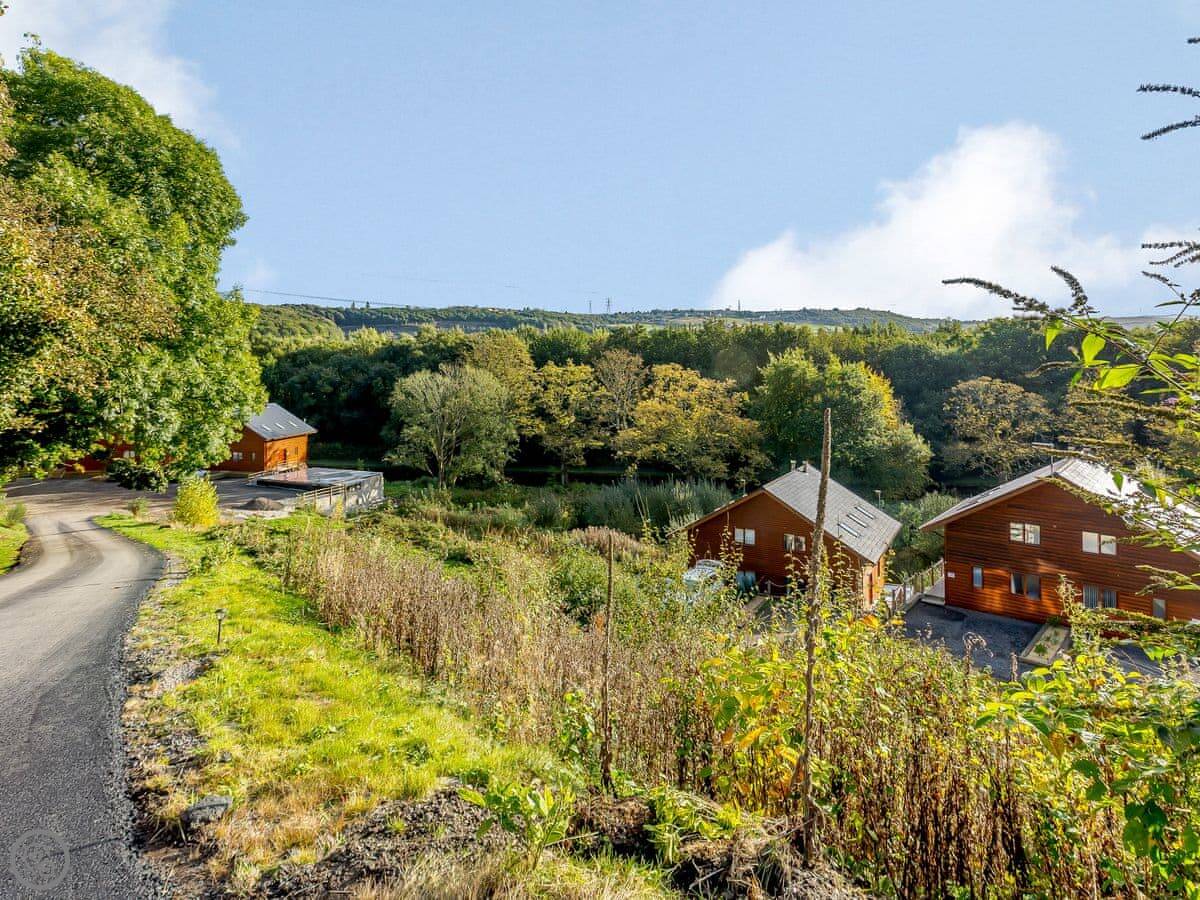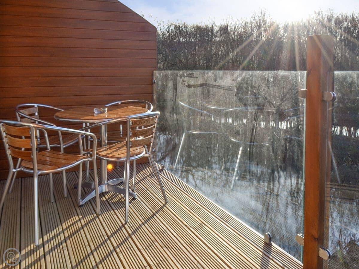 Waterside Lodge Three is in Elland, West Yorkshire. It's a wooden lodge set in a country park. The views over the lakes and trees are the main thing. It's quiet.