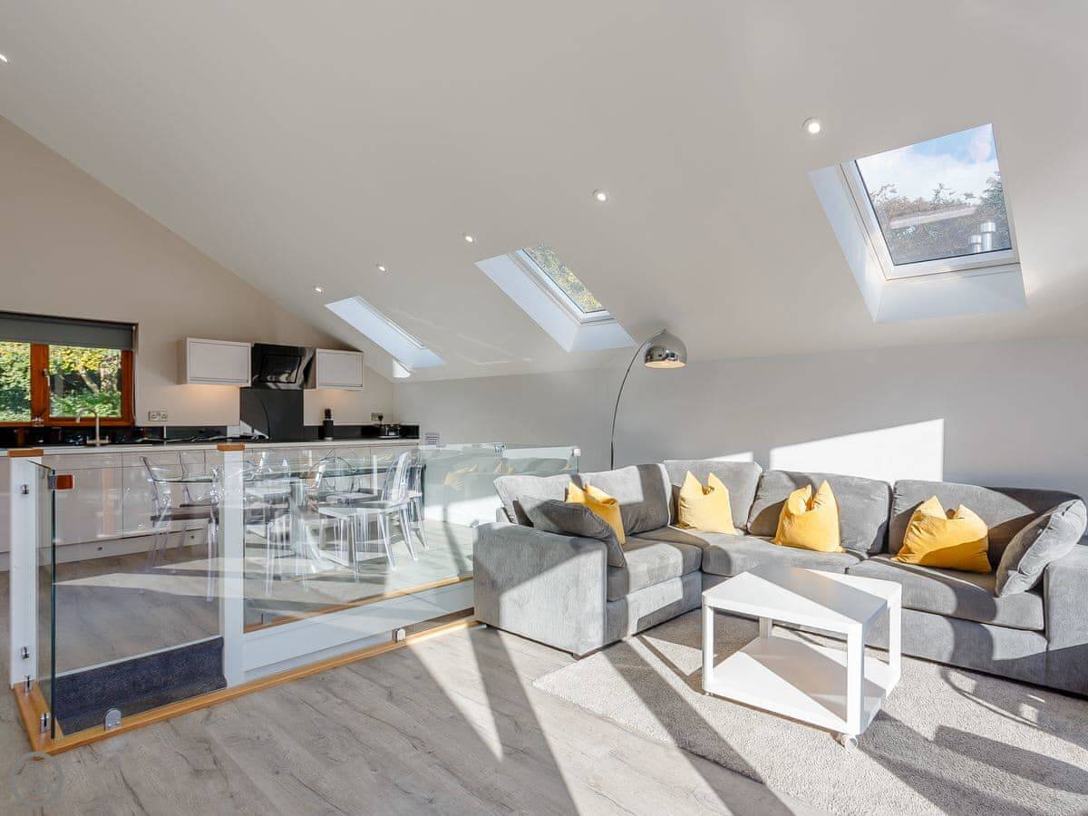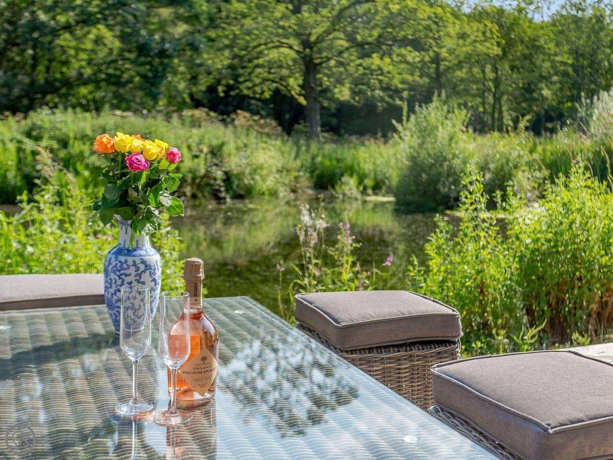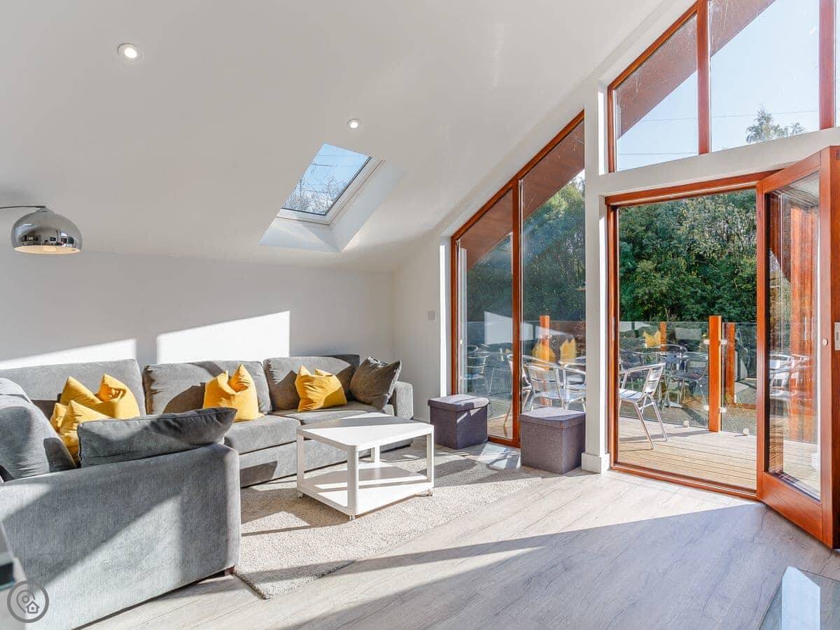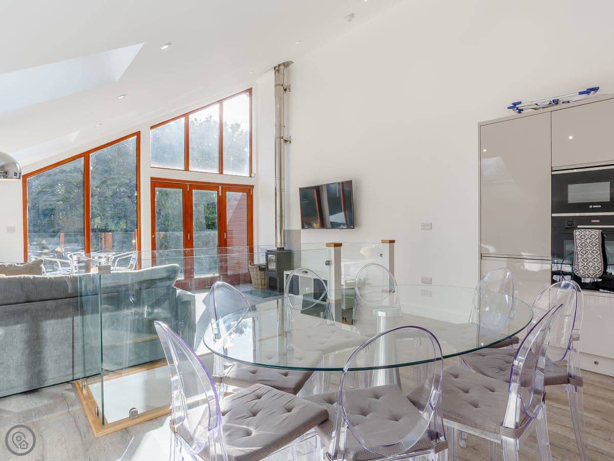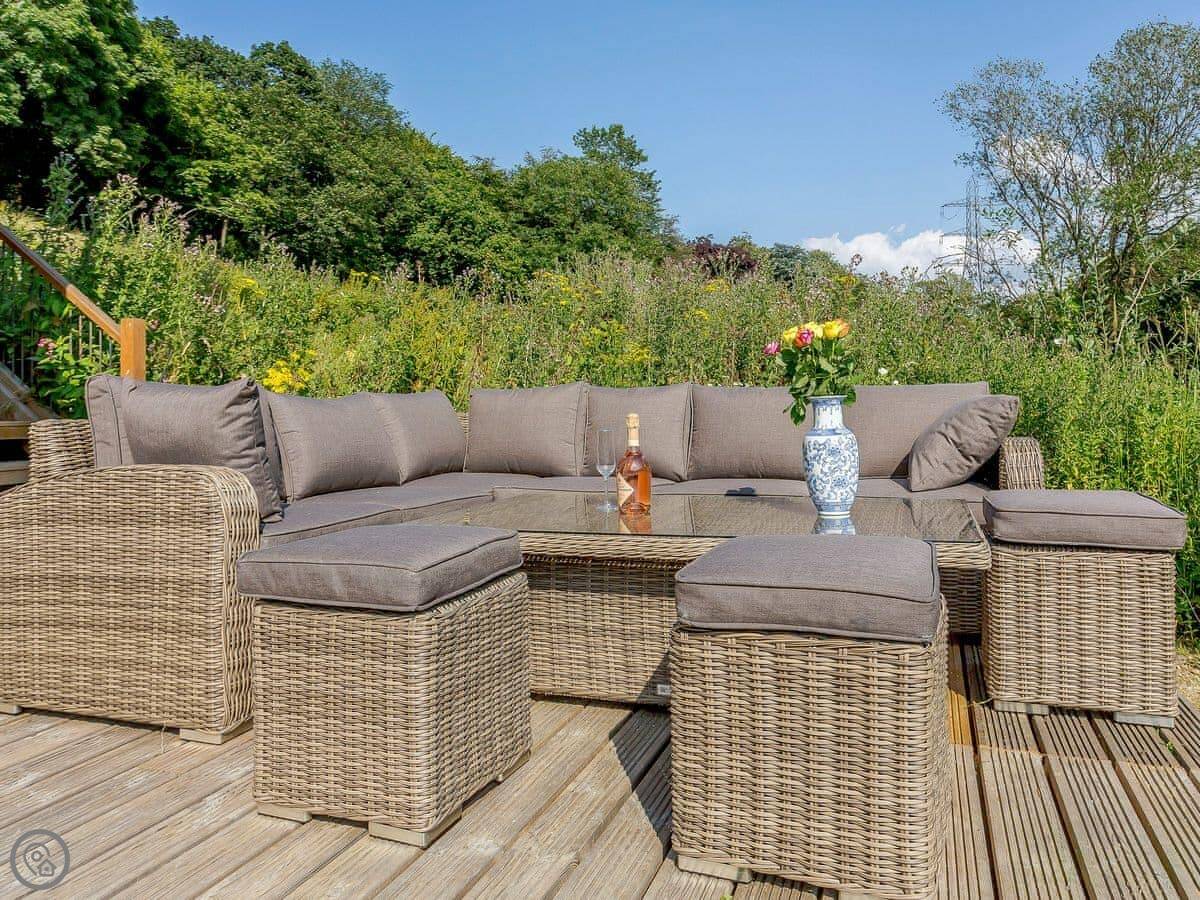 Waterside Lodge Three is in Elland, West Yorkshire. It's a wooden lodge set in a country park. The views over the lakes and trees are the main thing. It's quiet.