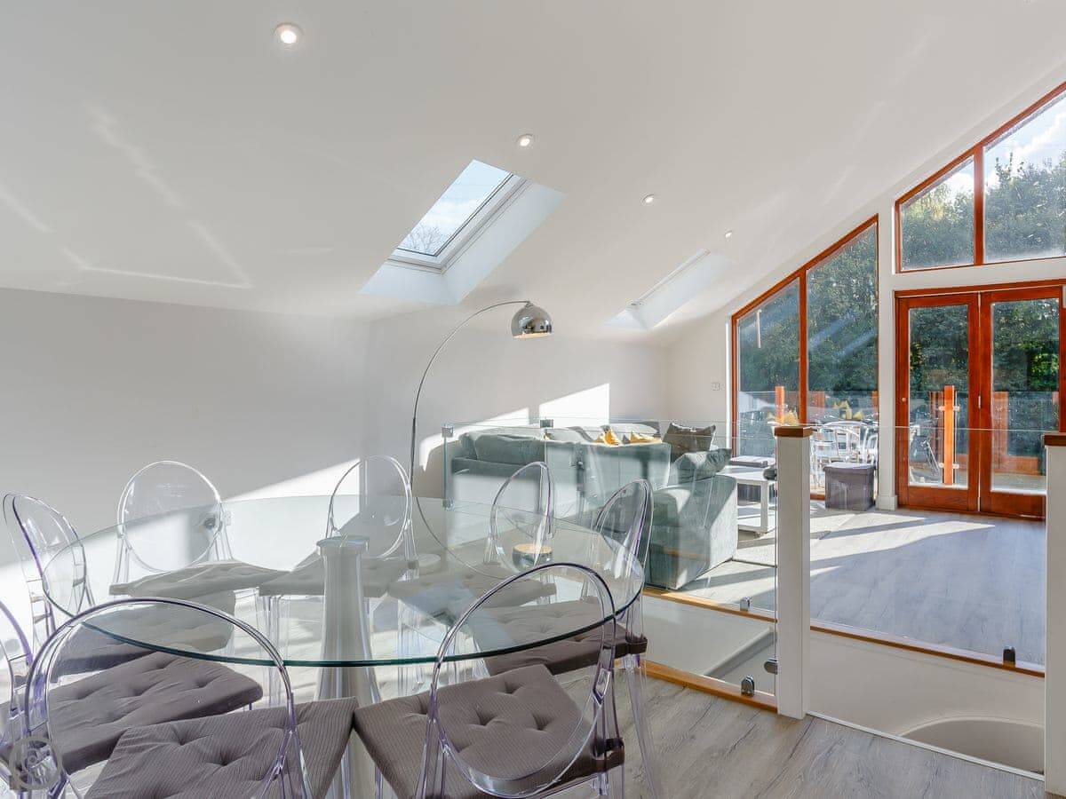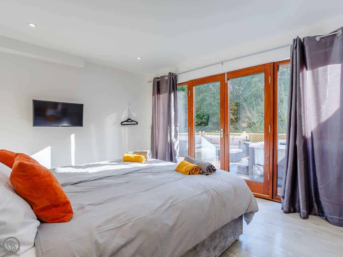 It sleeps eight. Four bedrooms, three bathrooms. It's got a 4 Star rating. Everything is clean and works. The layout is split over three floors. The living area is on the top floor with big doors that open onto a deck. The bedrooms are on the middle and lower floors. One of the downstairs bedrooms opens straight out onto a deck by the water.