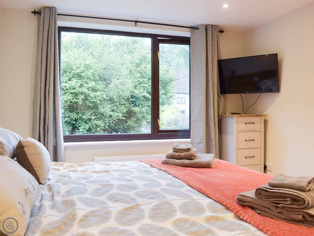 The place has wifi, a TV, a dishwasher, and a washing machine. Bedding and towels are included. You can bring up to two dogs. There's an enclosed garden for them.