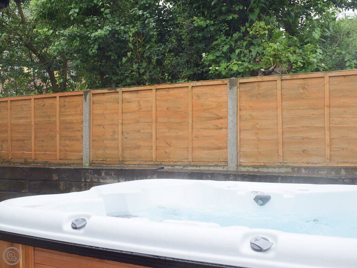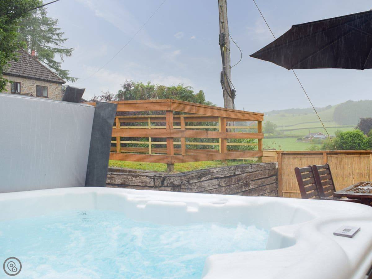 Outside, there's an enclosed patio garden. It has a hot tub. The view from it is across the Radnorshire hills. You can park two cars on the parking area directly opposite the cottage.