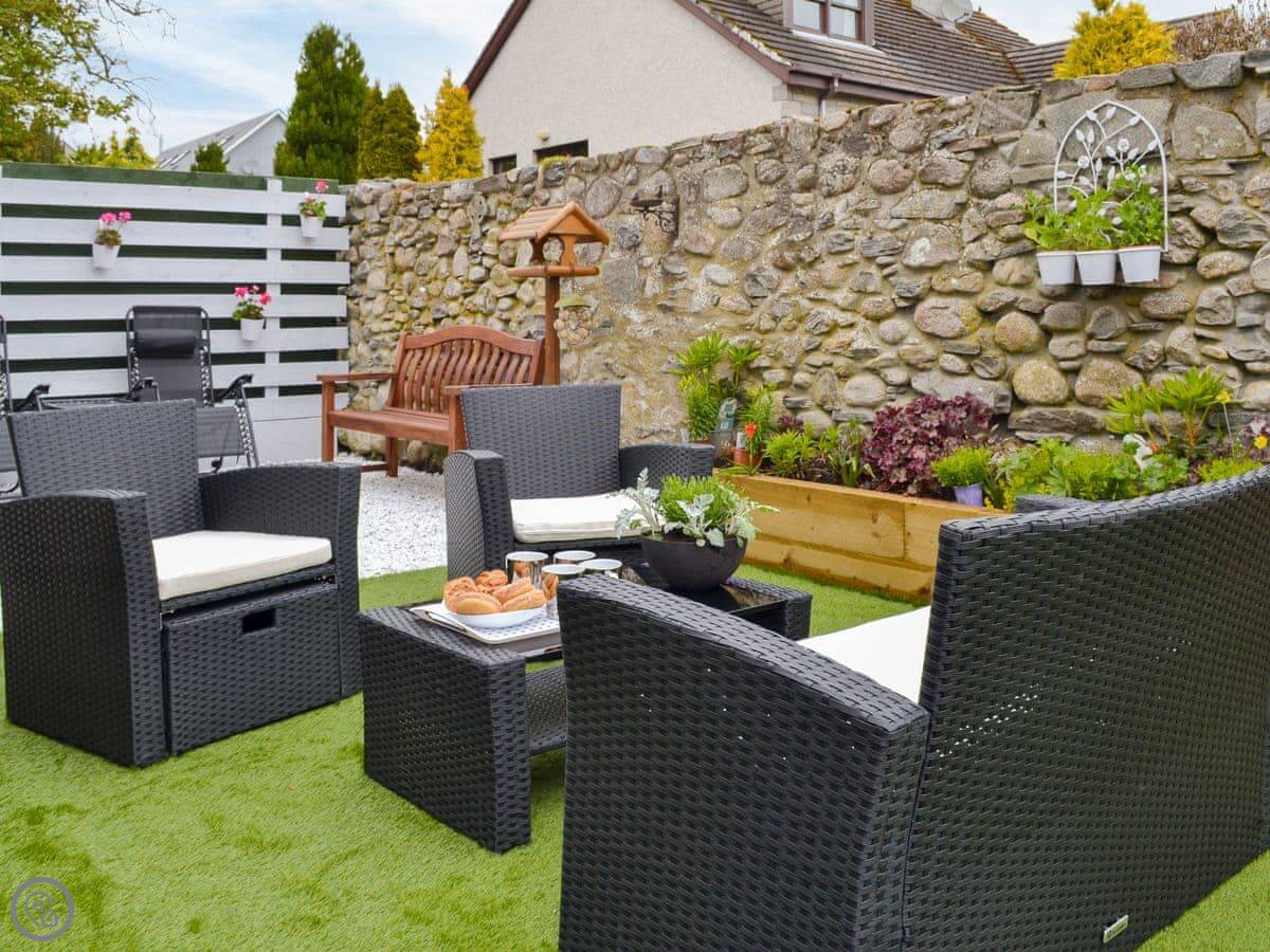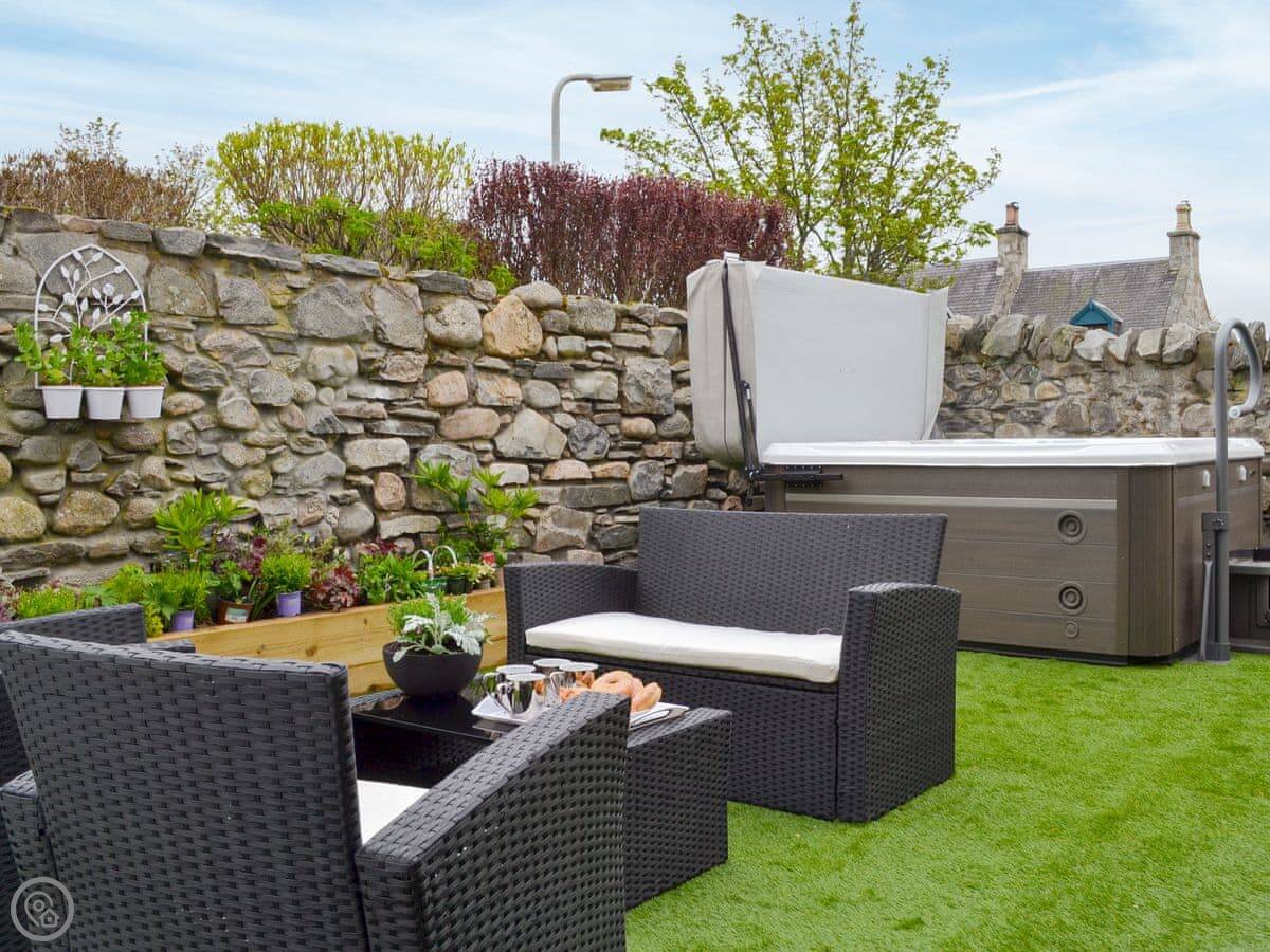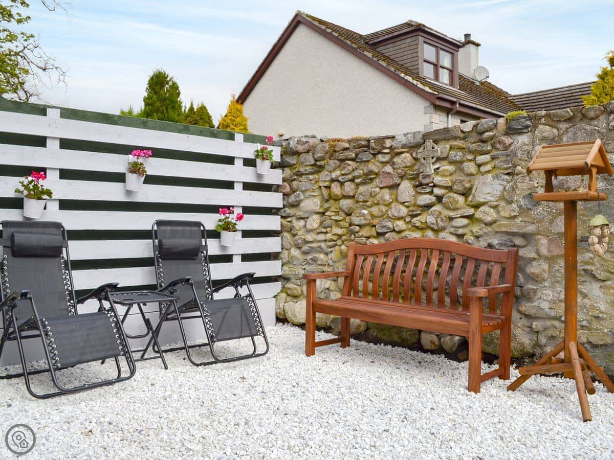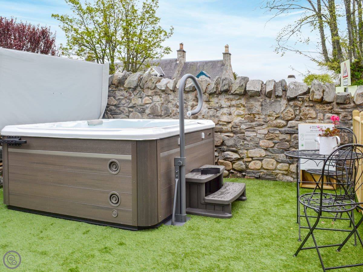 Whilst outside, a private enclosed garden is the perfect place to sit and relax, the hot tub with massage jets is the perfect place to unwind in after a busy day, and for al fresco dining, the barbecue area is to hand. There is a summer house with a canopy in the garden beside the large stone barbecue, for eating outside undercover or inside the lockable summerhouse, which offers storage for golf clubs or skis. There is private parking and a bike rack in the front garden with a seating area to enjoy the evening sun. Enjoying a quiet setting within a few minutes’ walk of the town centre, golf club and riverside walks along the Spey.