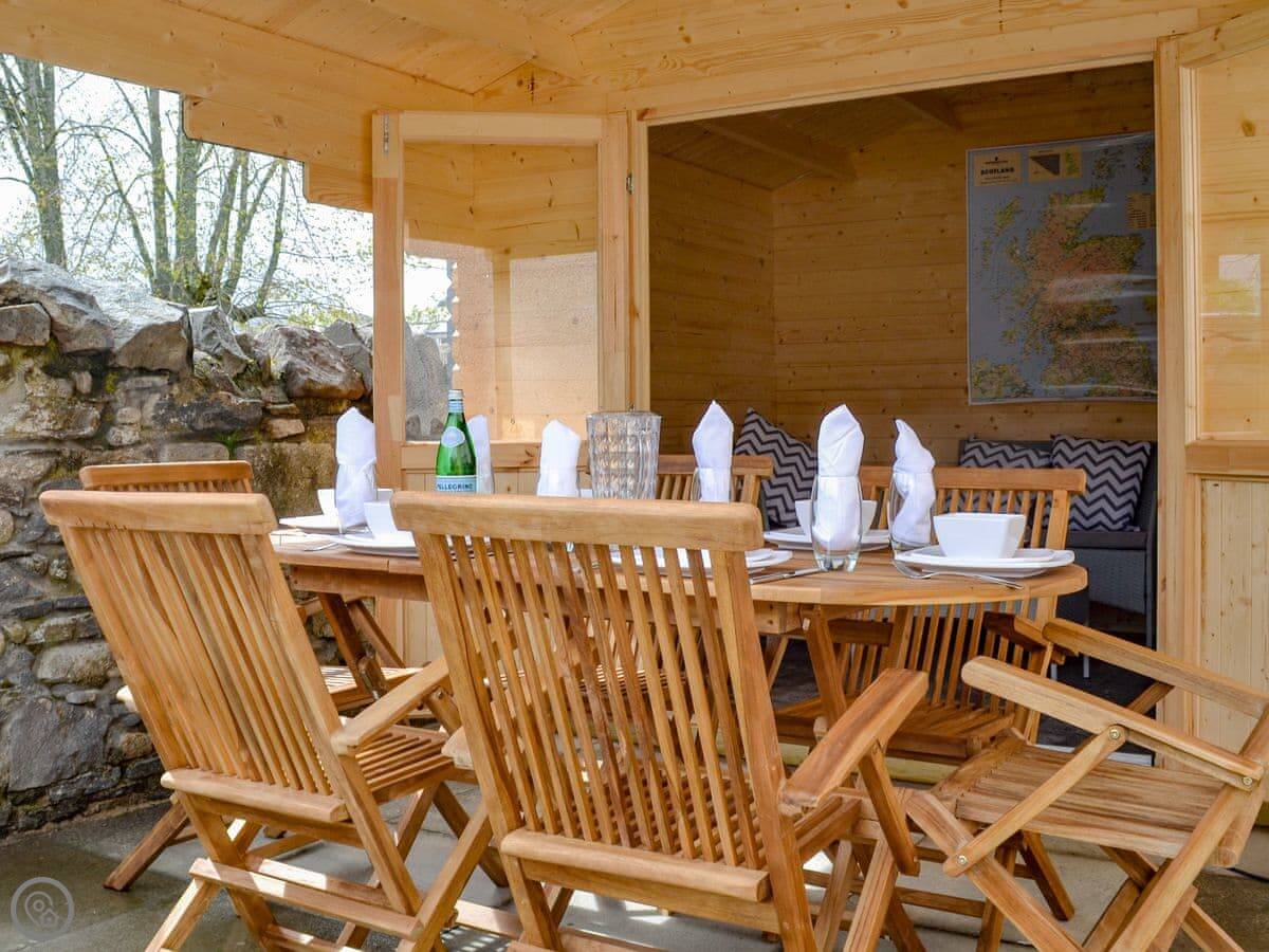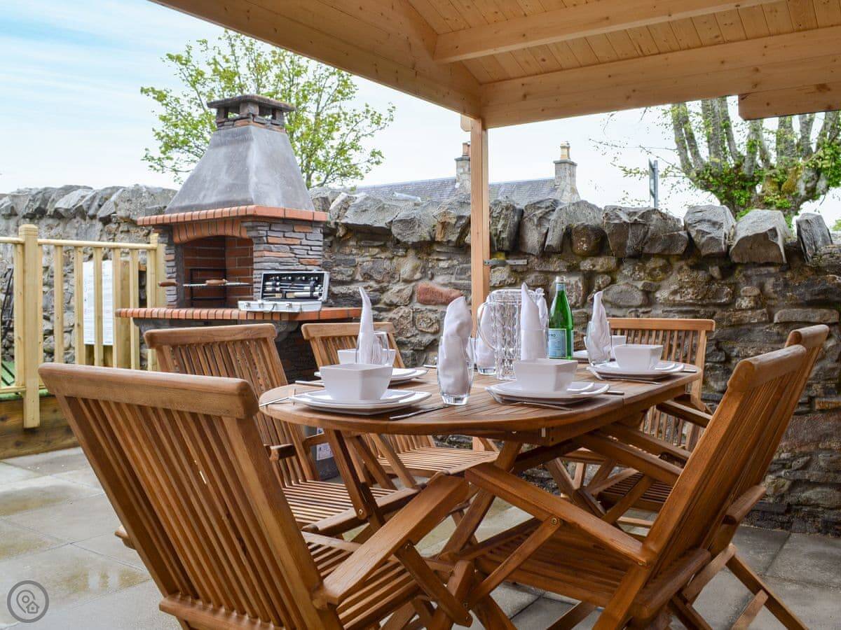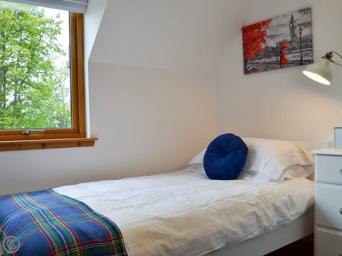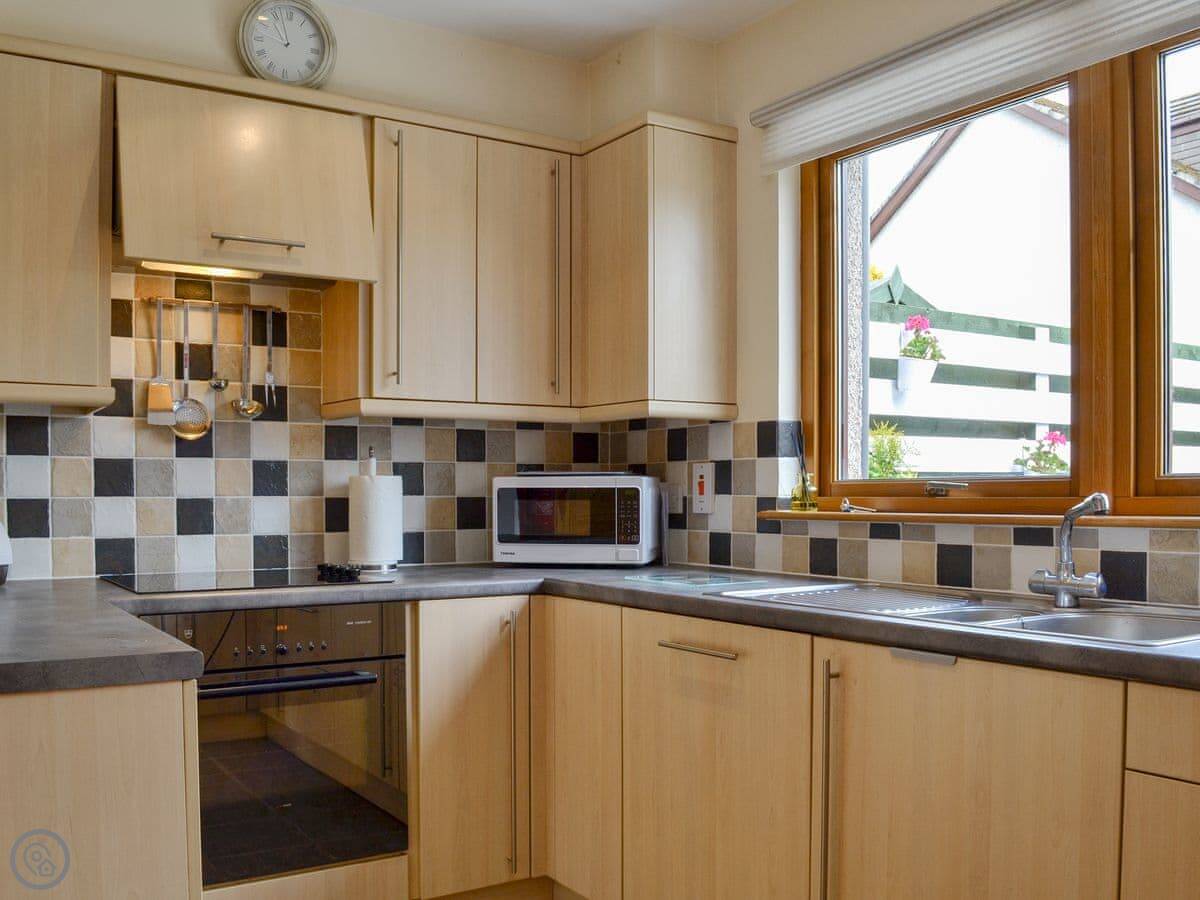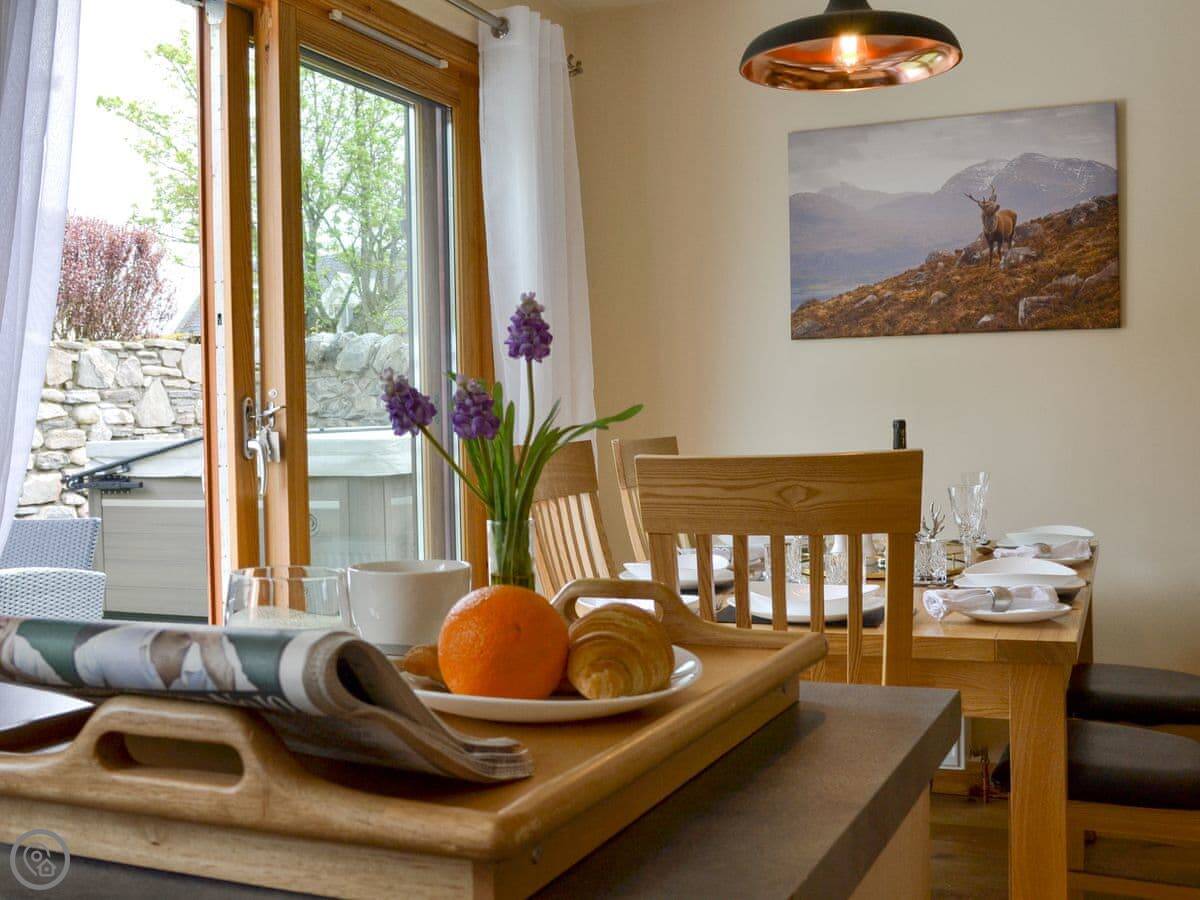 Whilst outside, a private enclosed garden is the perfect place to sit and relax, the hot tub with massage jets is the perfect place to unwind in after a busy day, and for al fresco dining, the barbecue area is to hand. There is a summer house with a canopy in the garden beside the large stone barbecue, for eating outside undercover or inside the lockable summerhouse, which offers storage for golf clubs or skis. There is private parking and a bike rack in the front garden with a seating area to enjoy the evening sun. Enjoying a quiet setting within a few minutes’ walk of the town centre, golf club and riverside walks along the Spey.