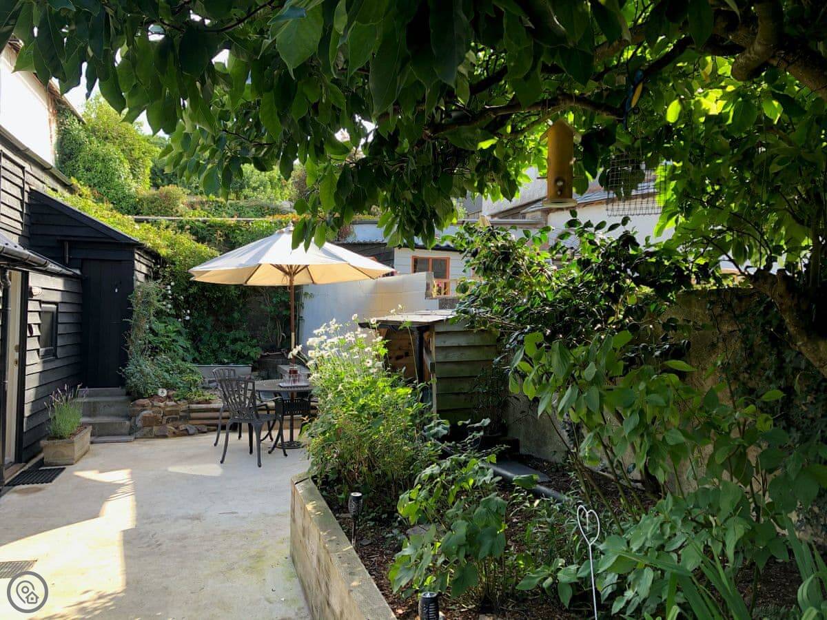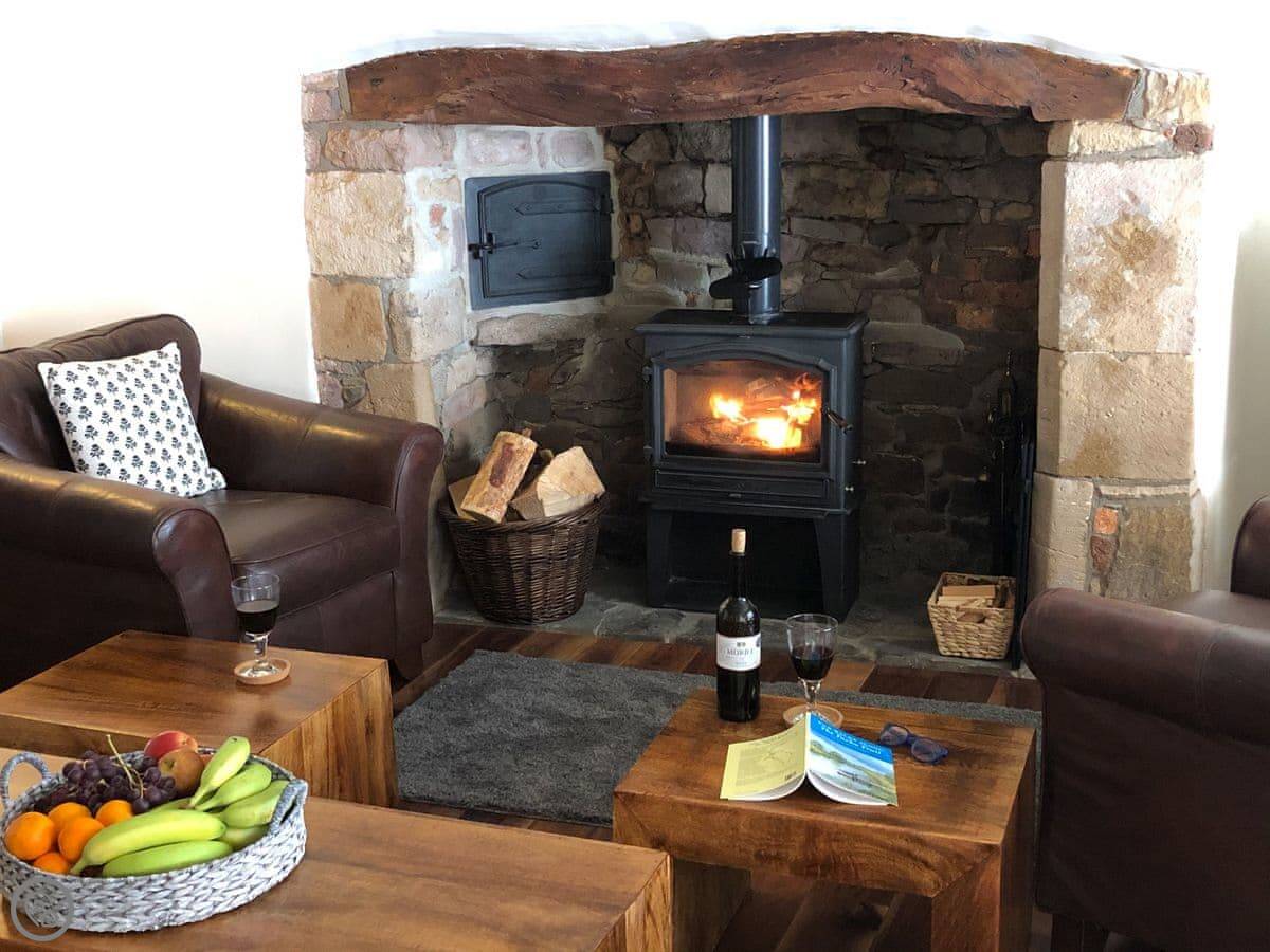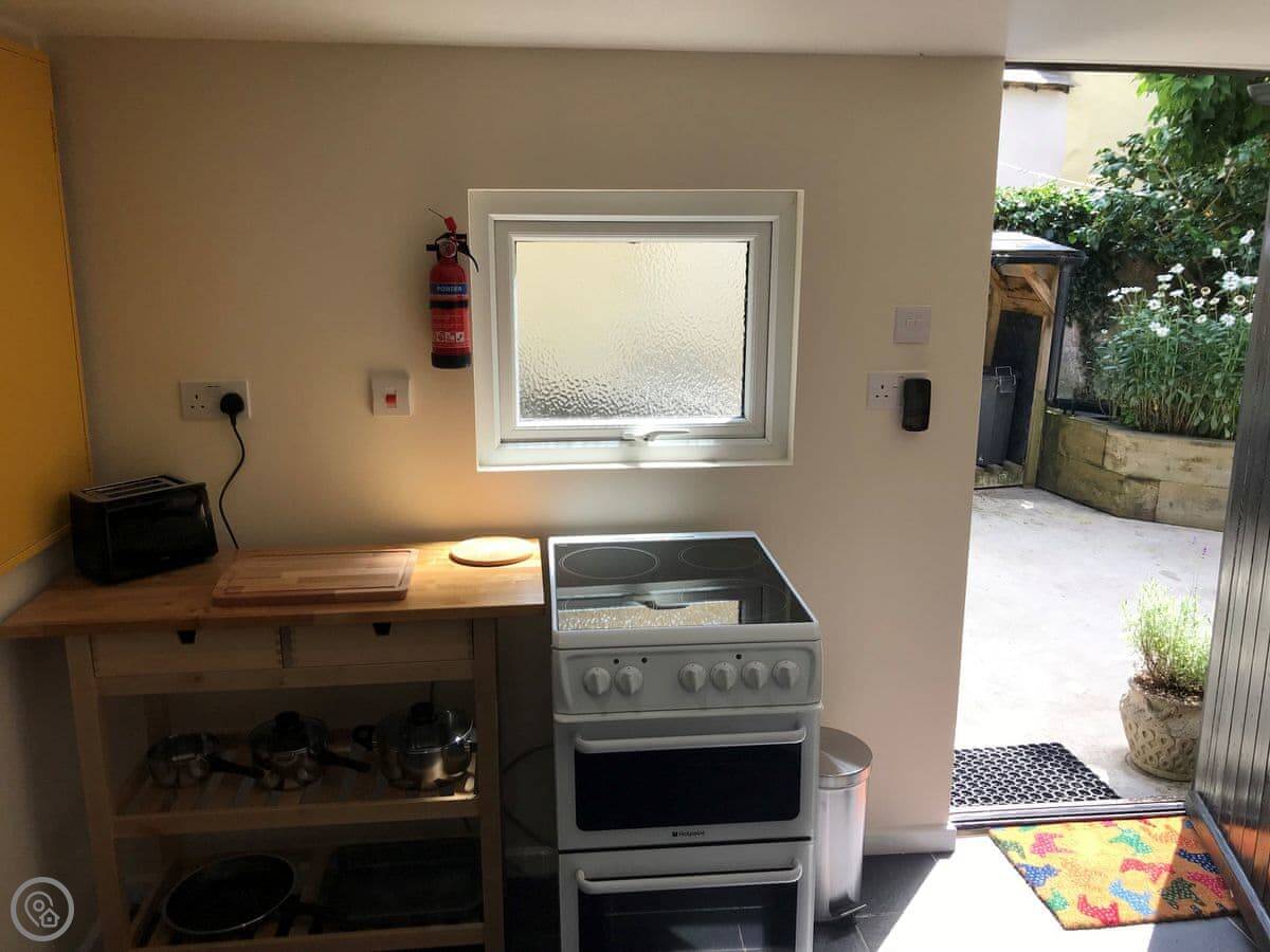 The kitchen in the cottage is fine for cooking. The barn has a smaller kitchenette, better for basics. There's a wood burner in the main living area for cooler nights. The garden is a courtyard, enclosed.