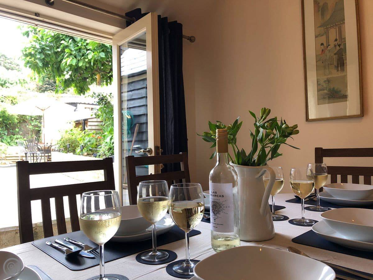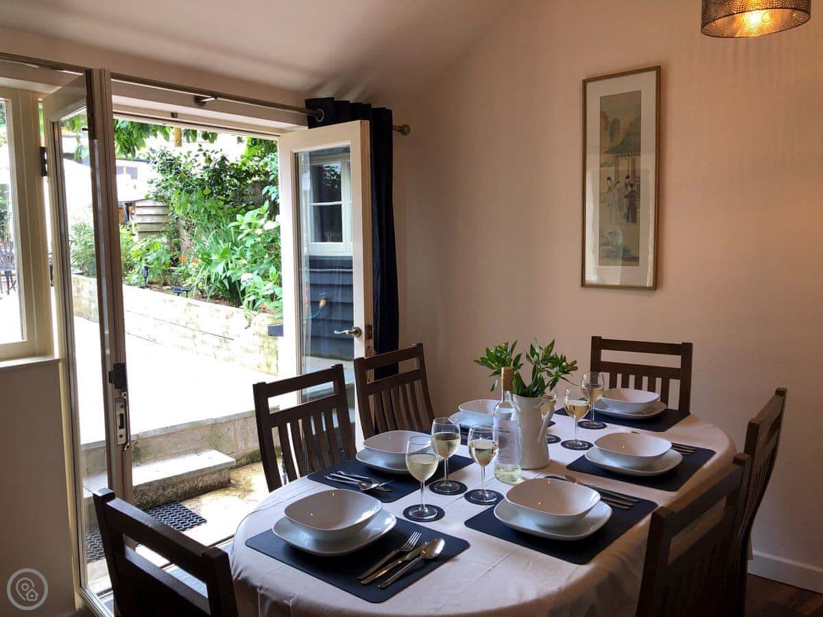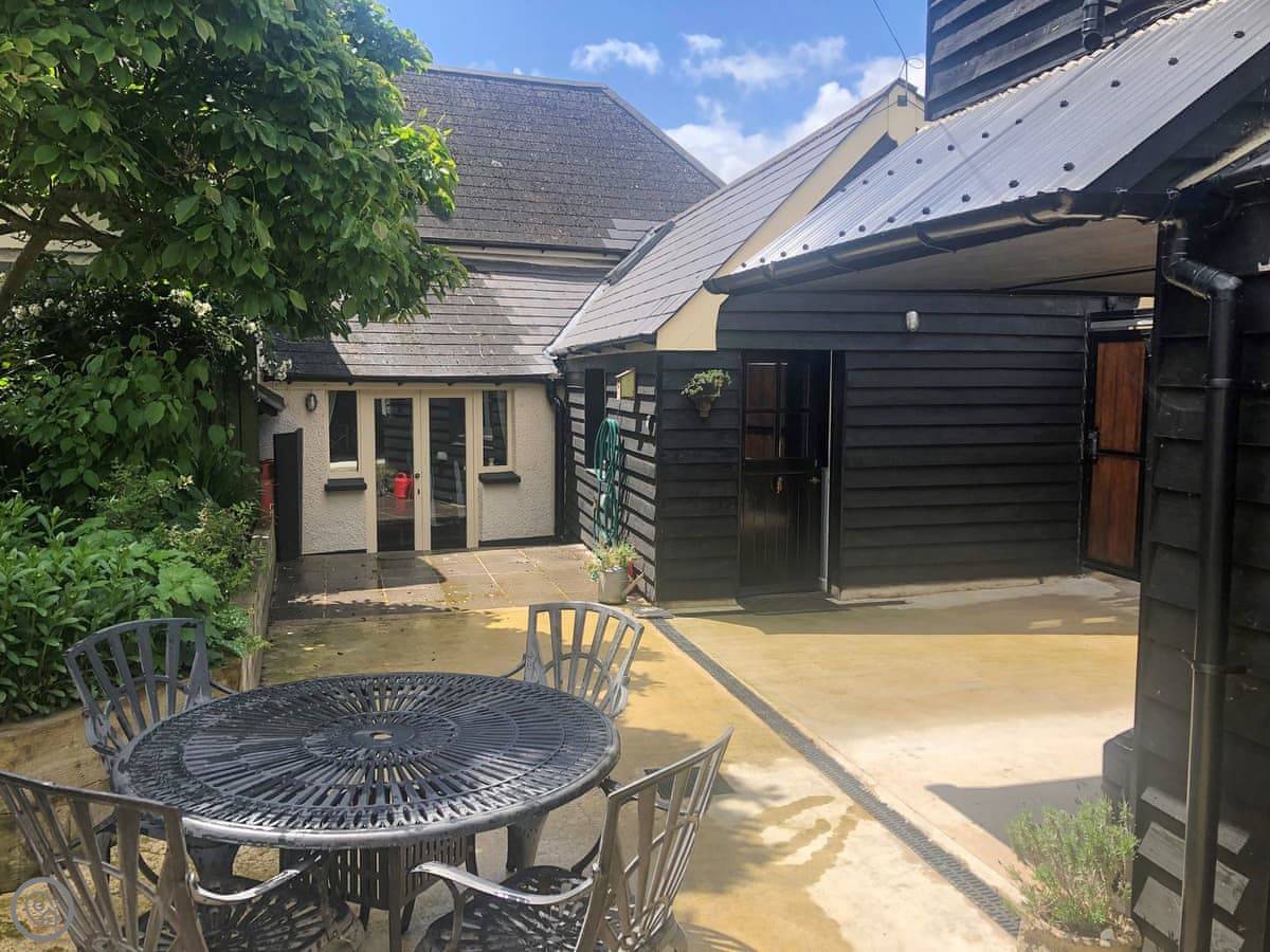 The kitchen in the cottage is fine for cooking. The barn has a smaller kitchenette, better for basics. There's a wood burner in the main living area for cooler nights. The garden is a courtyard, enclosed.
