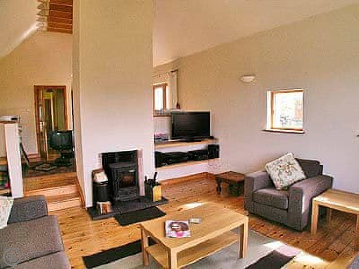 The wood burner in the living room works well. The kitchen has a dishwasher and a washing machine. The garden is enclosed, which is handy if you're bringing a dog. You can see Loch Pooltiel from there. The sunsets are good.
