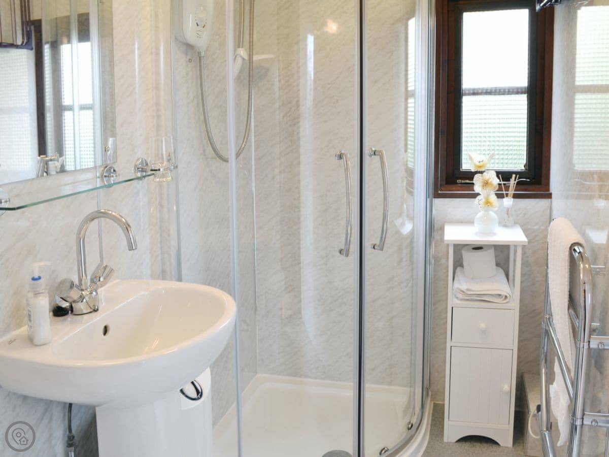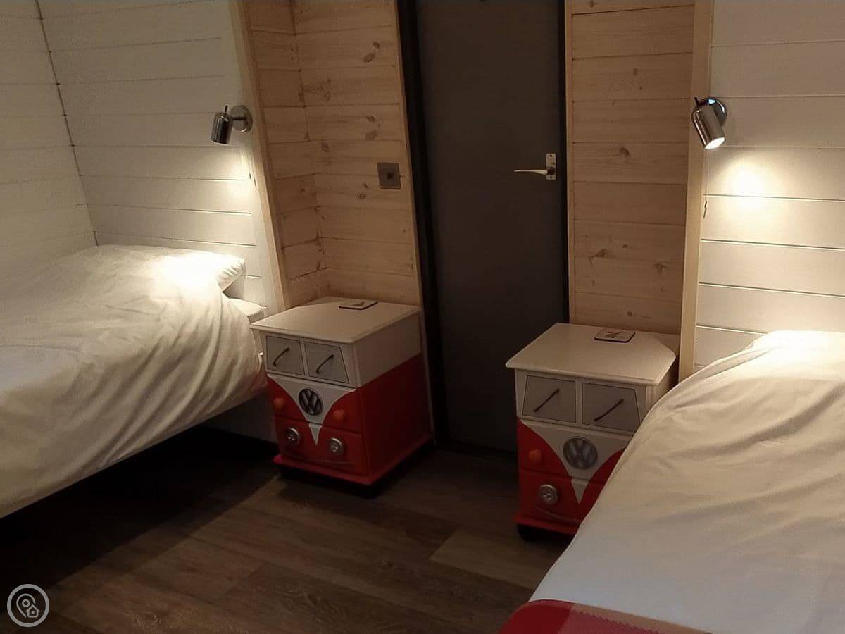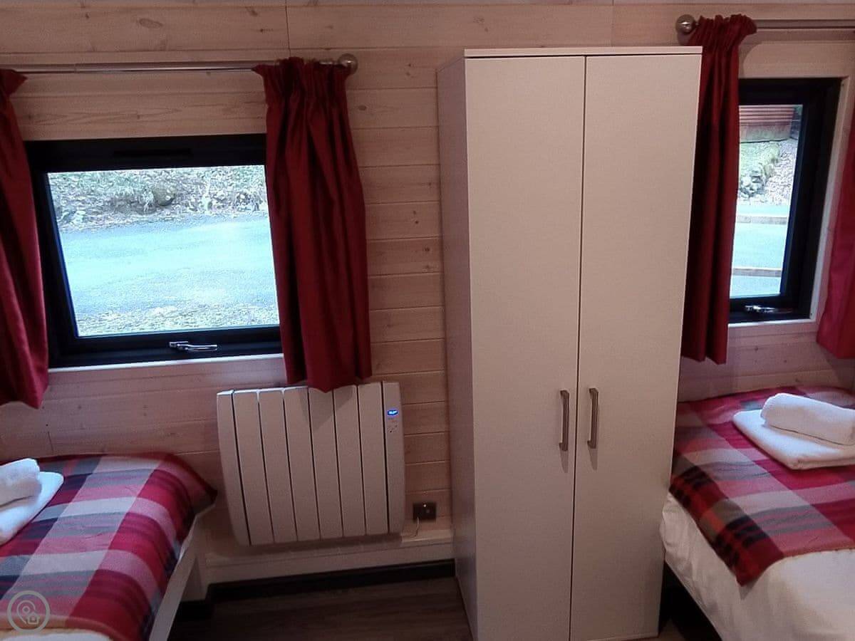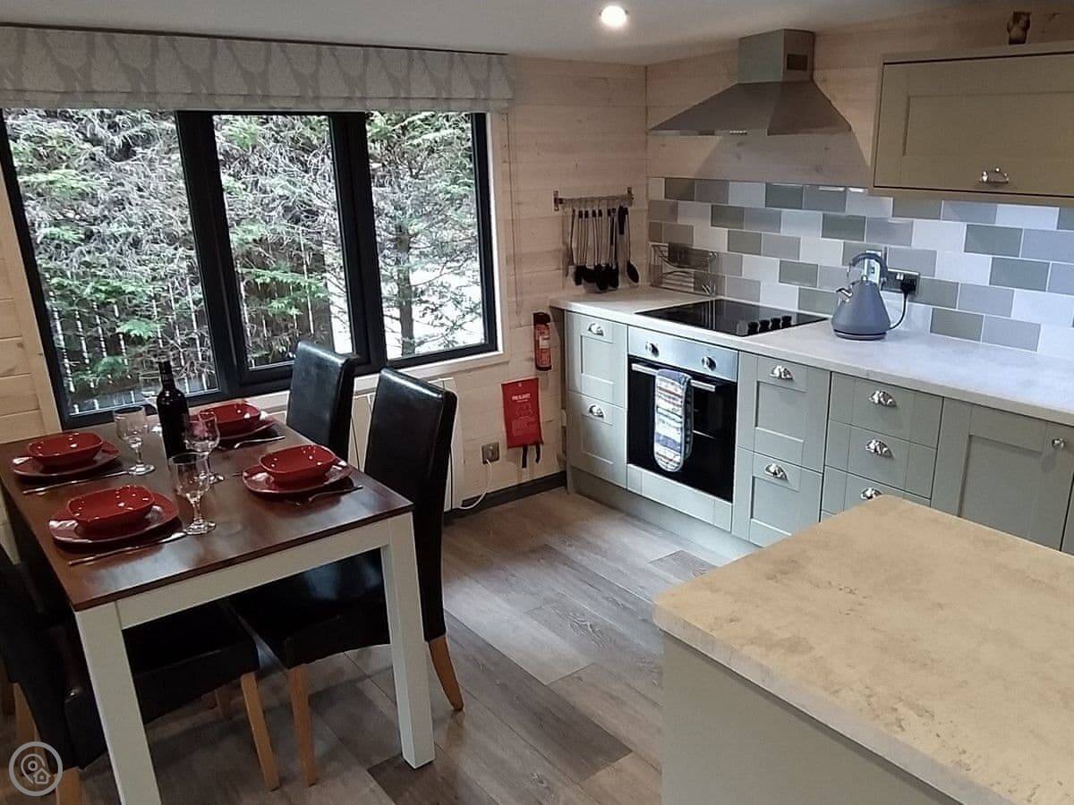 It sleeps four, two bedrooms. One double, one twin. One bathroom. The kitchen is new. It's a four-star lodge, so it's got decent fittings.