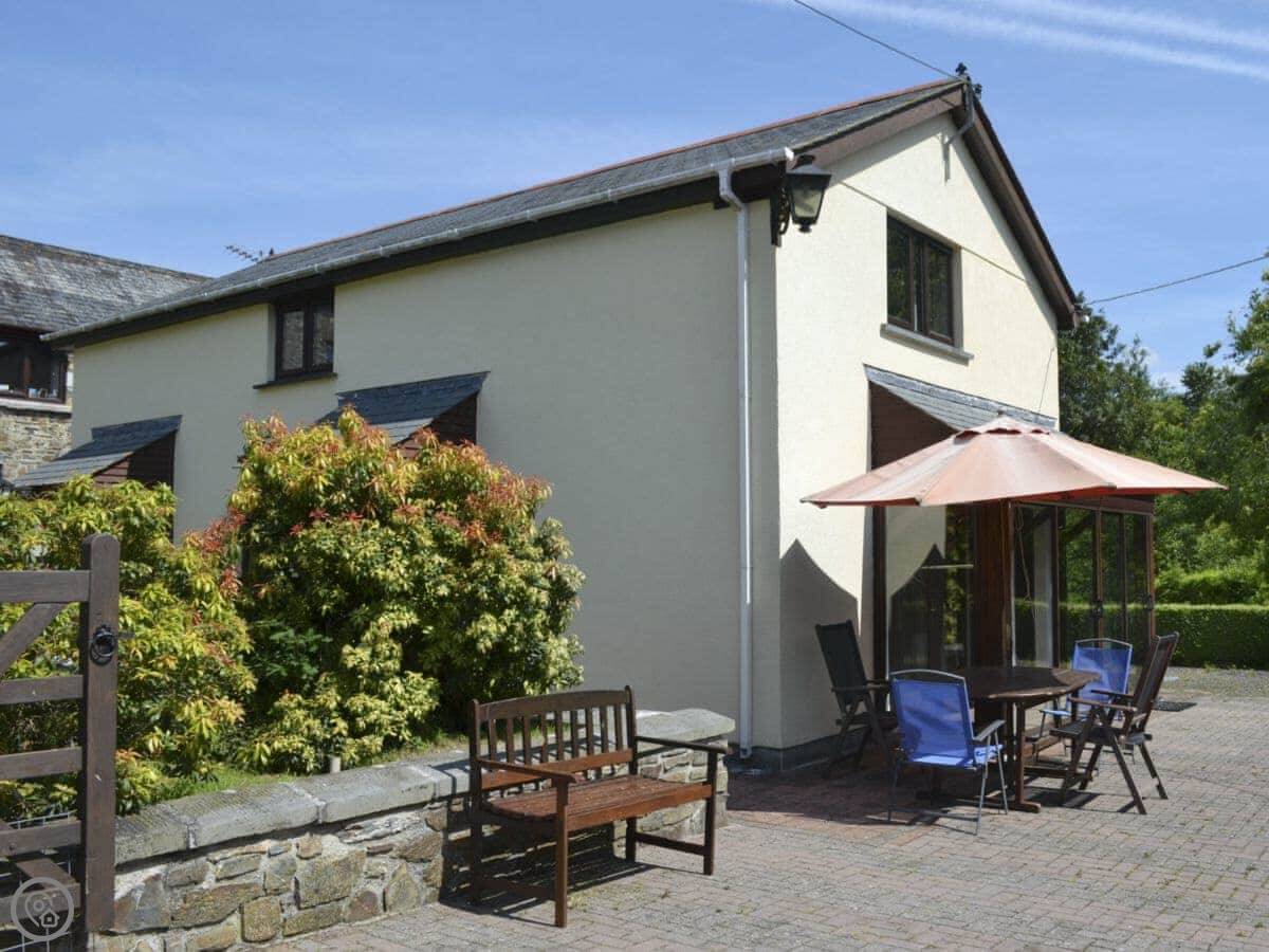 Swallows Nest is on our farm at Stowford Barton, right on the Devon and Cornwall border. It's a detached barn conversion. You get your own enclosed garden and patio out the back. It's sunny in the afternoon.