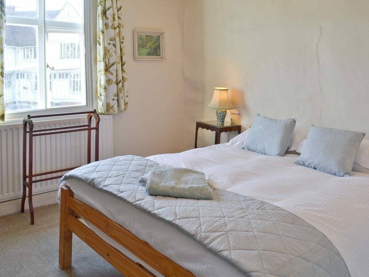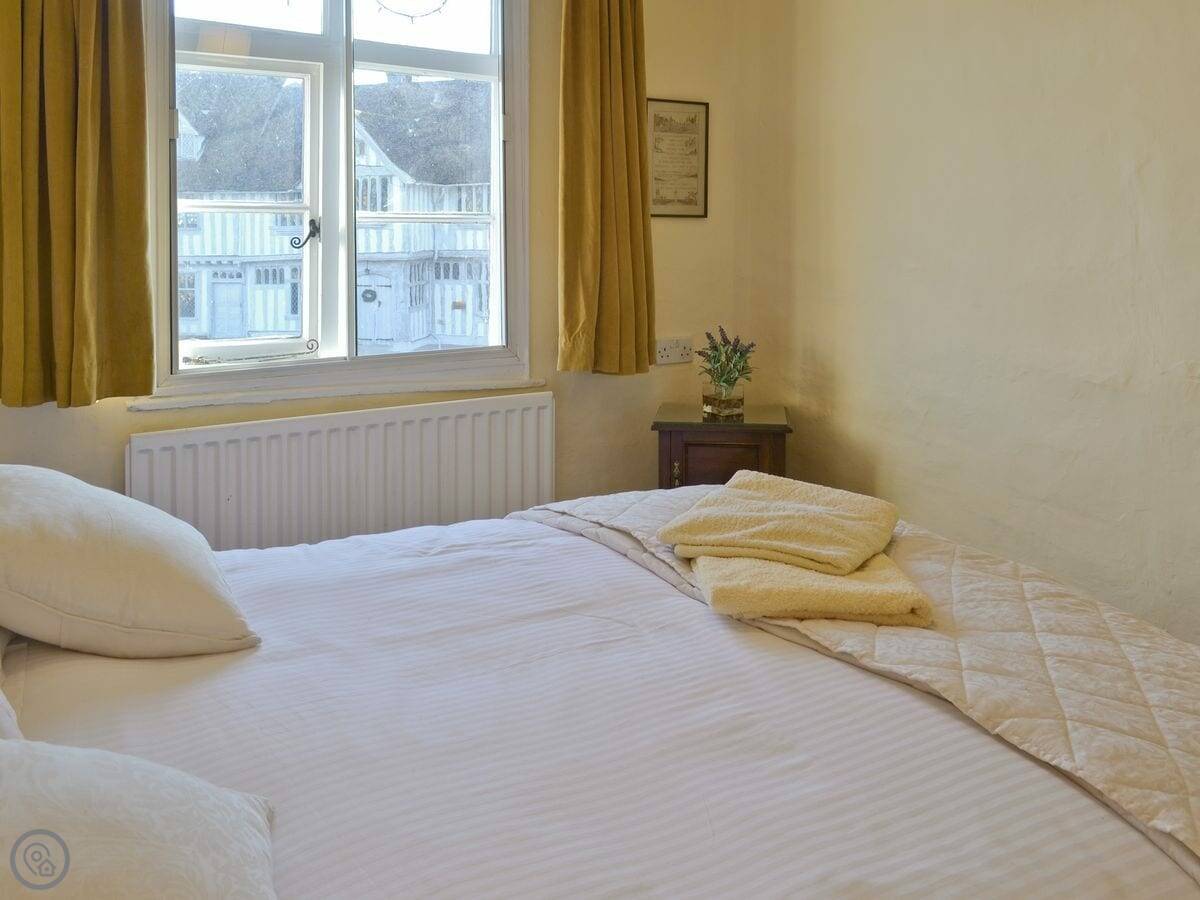 Red Lion Corner is in the middle of Lavenham. It's on the main market square, so you're right in among all the old buildings. The view from the front windows is across the square to the Guildhall. It's a proper Tudor view.