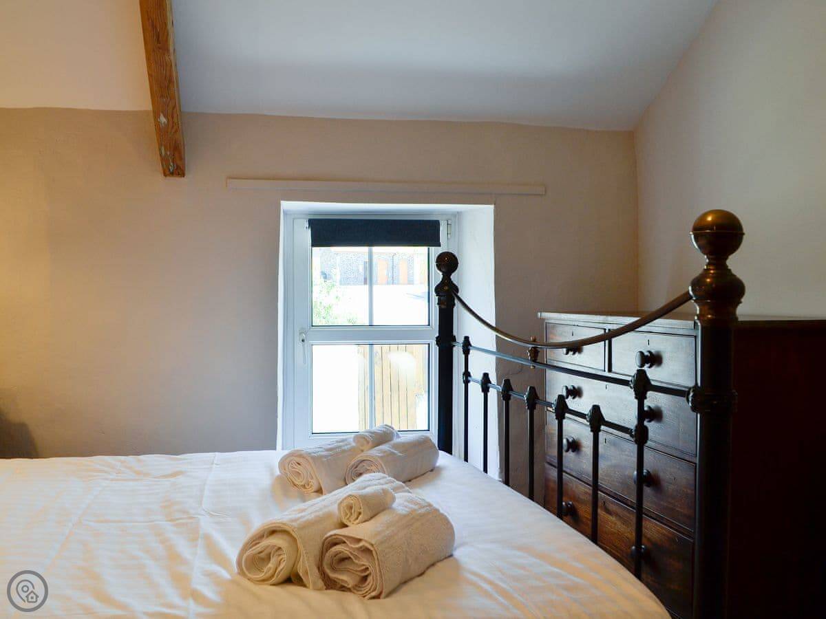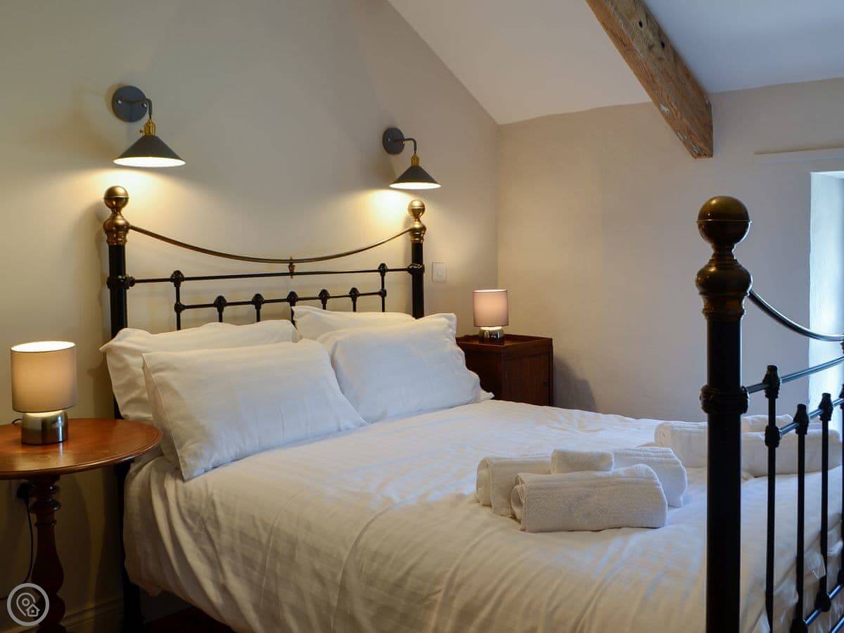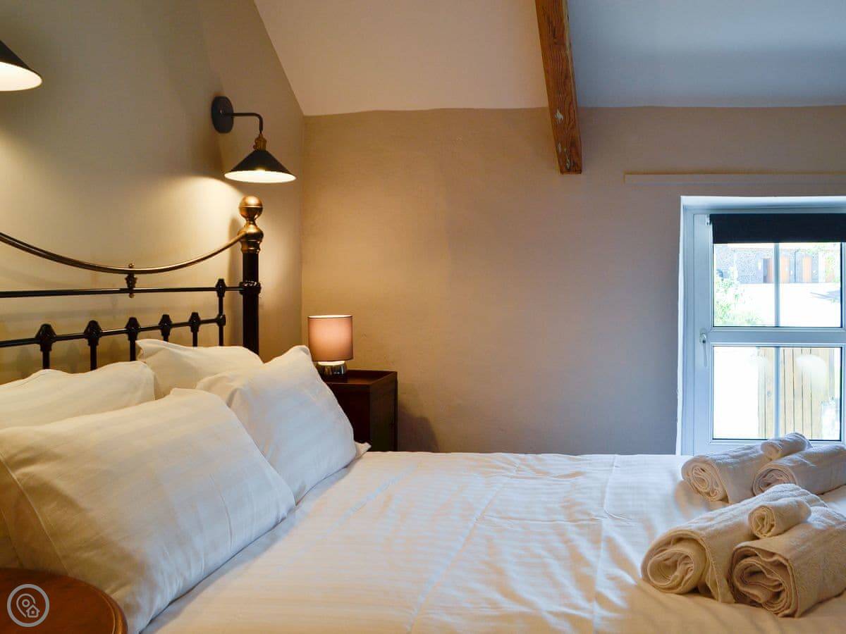 It sleeps four, in two bedrooms. Both bedrooms have their own shower room. It's got a 4 Star rating. It's comfortable and clean, with some old beams and a stone fireplace.