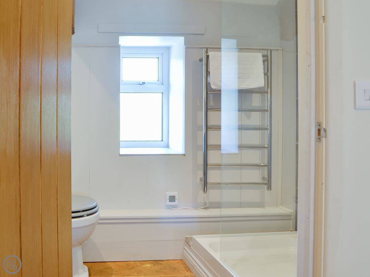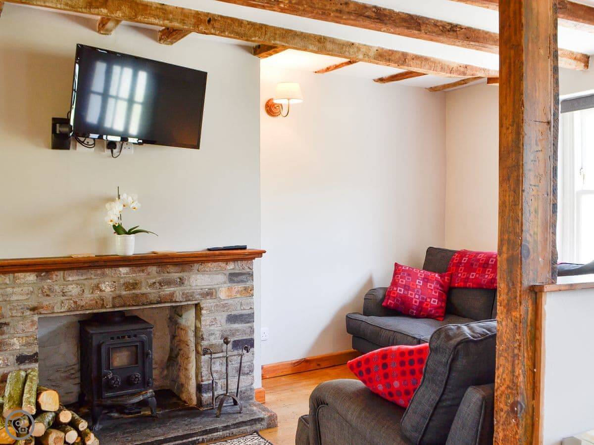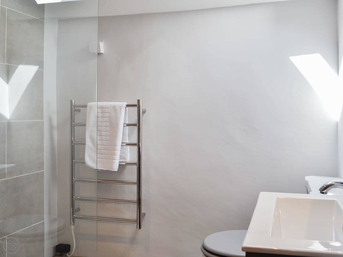 It sleeps four, in two bedrooms. Both bedrooms have their own shower room. It's got a 4 Star rating. It's comfortable and clean, with some old beams and a stone fireplace.