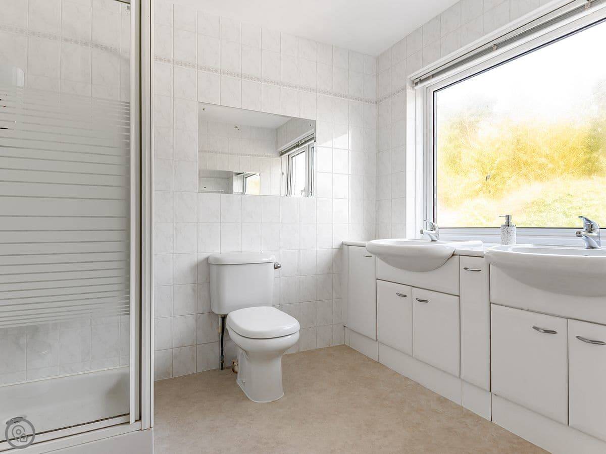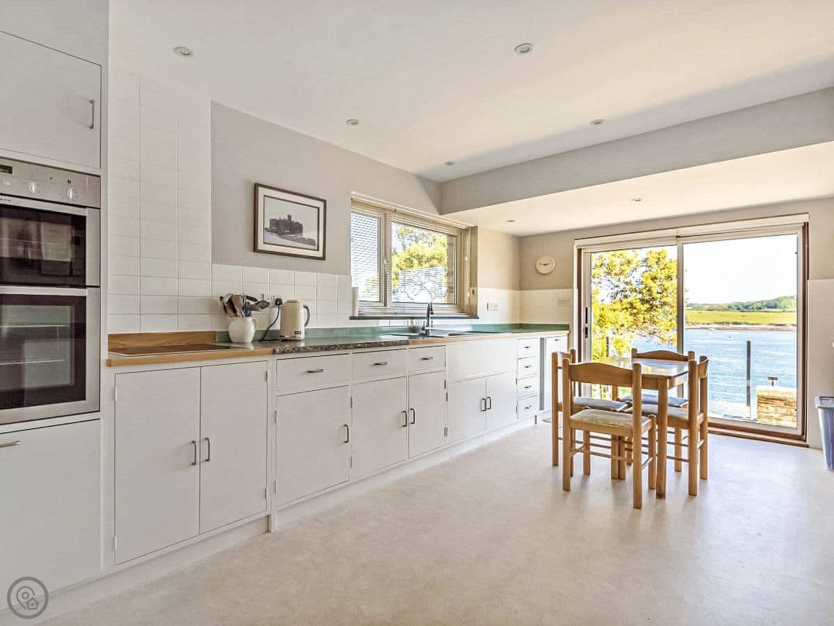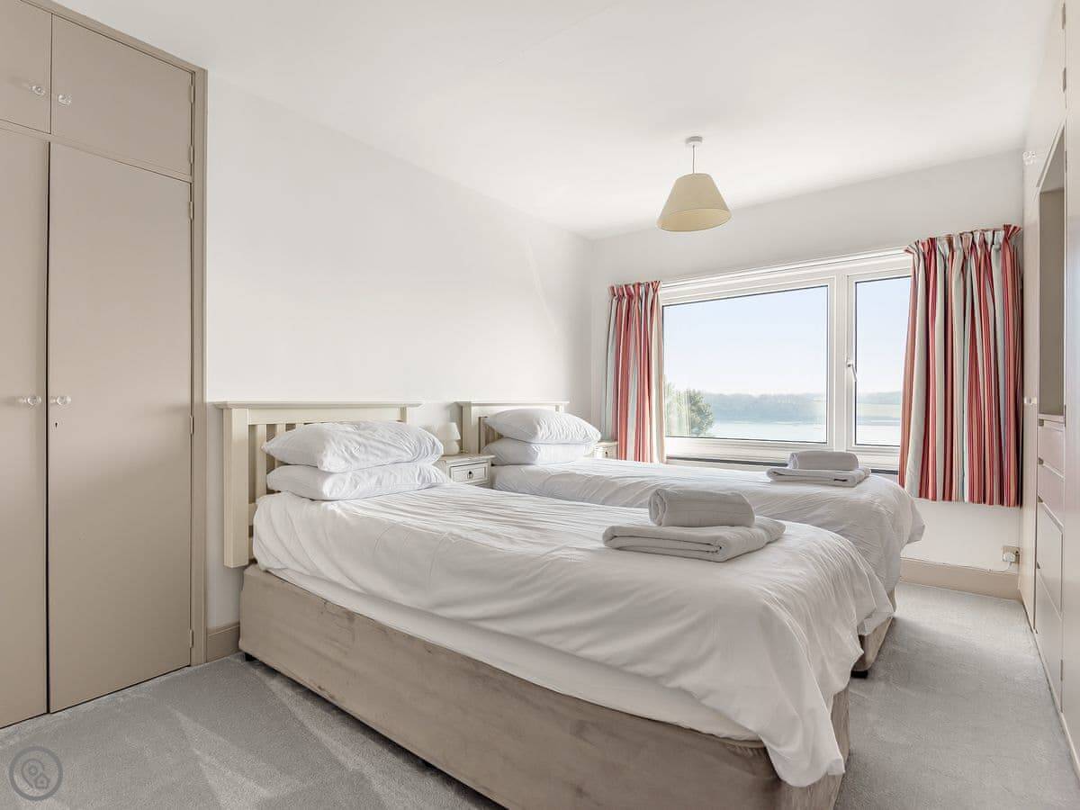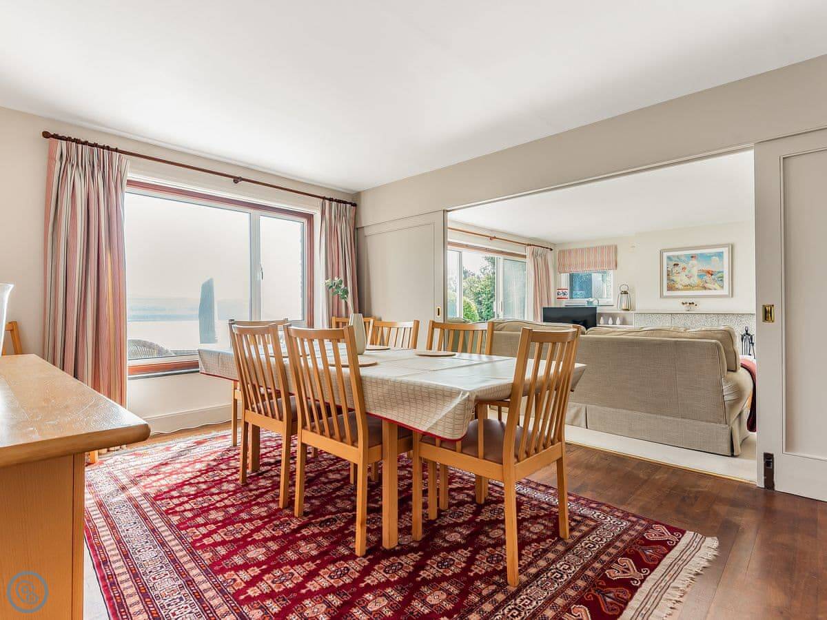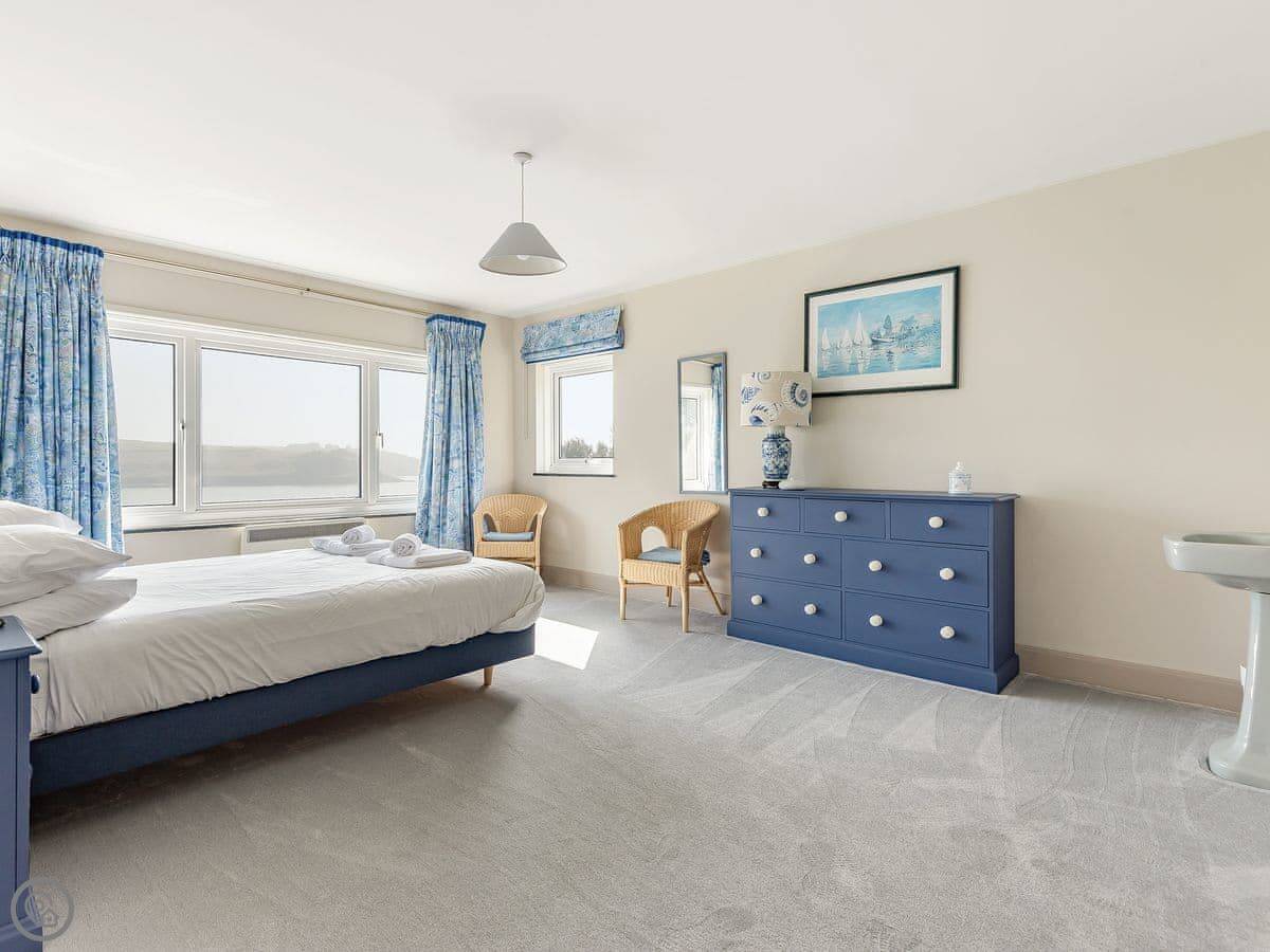 From the entrance hall off which there is a cloakroom with toilet you ascend to the large landing off which are a shower room, super kingsize bedroom with glorious sea views and balcony. A zip and link super kingsize bedroom with great sea views, kingsize bedroom again with super sea views and a family bathroom with over bath shower and toilet. A short flight of stairs leads to two single bedrooms. Stairs from the lobby lead down to the spacious hallway off which are the utility room, kitchen with good sea and harbour views and patio doors out to the terrace. The large living/dining room have lovely sea views and patio doors leading off both to the terrace with the most lovely sea views and there is an open fire in the living room. The terraced garden leads down to the foreshore but please take care with children on the terraces and around the fish pond. Beach ½ mile.