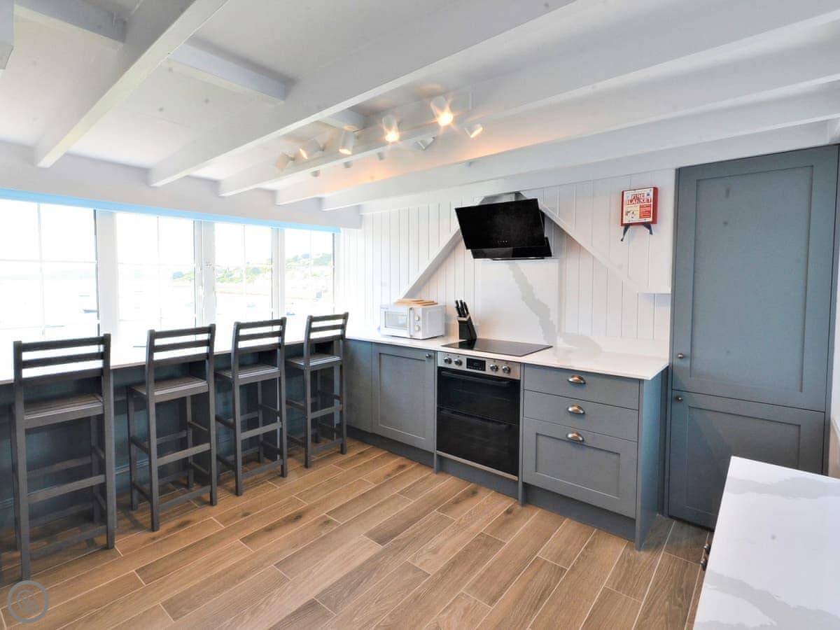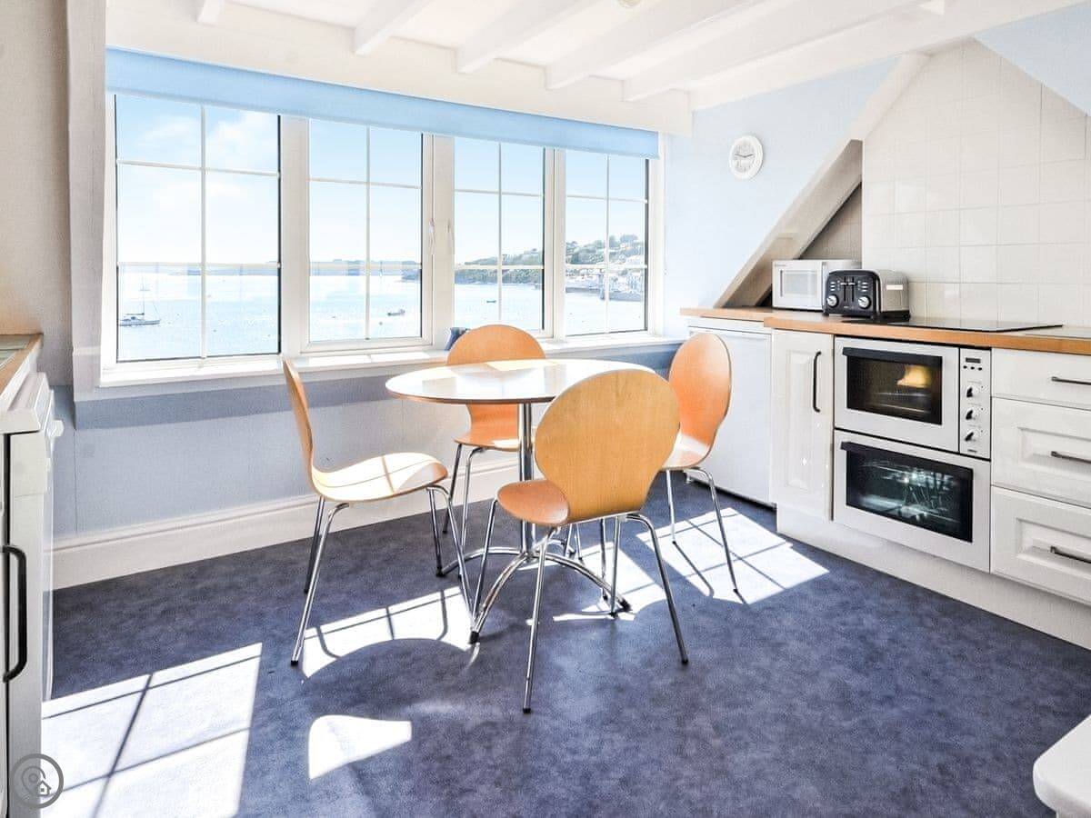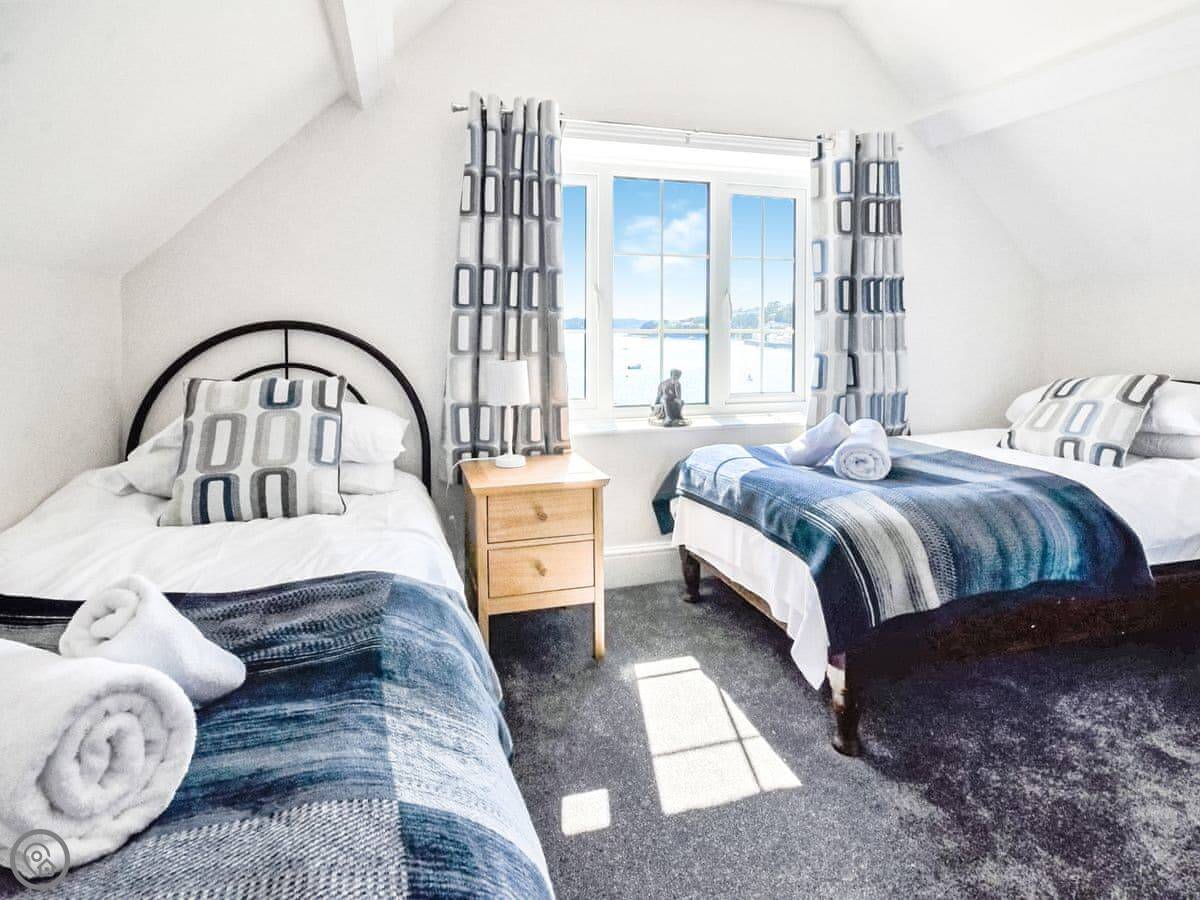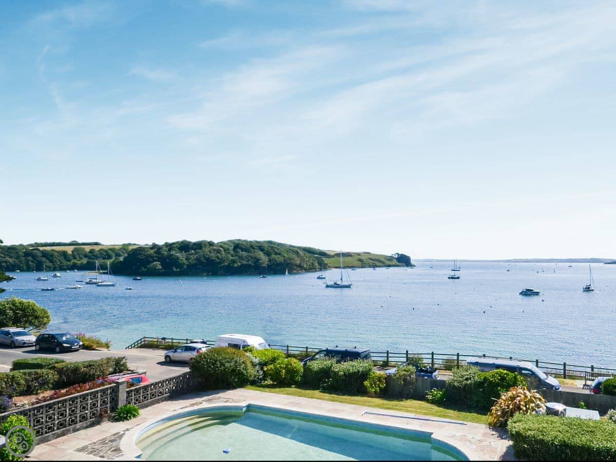 Roseland View is in St Mawes. It's an apartment on the first and second floor of a building, so you'll have neighbours above or below. The front door is at the back of the building, up an external staircase. There are about twenty steps. It's fine, but just so you know.