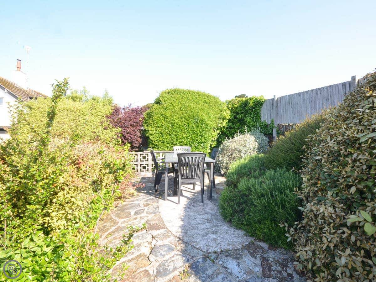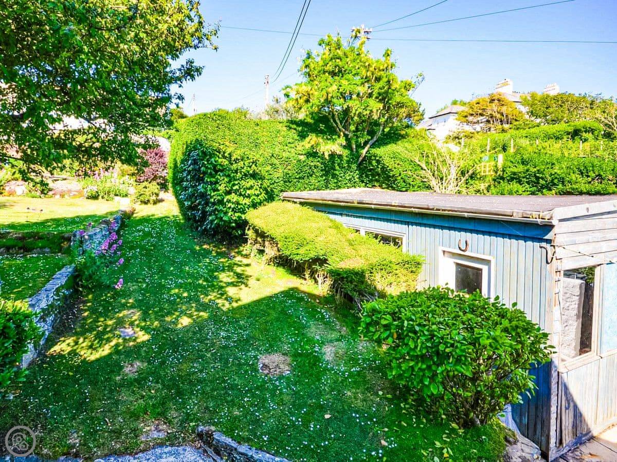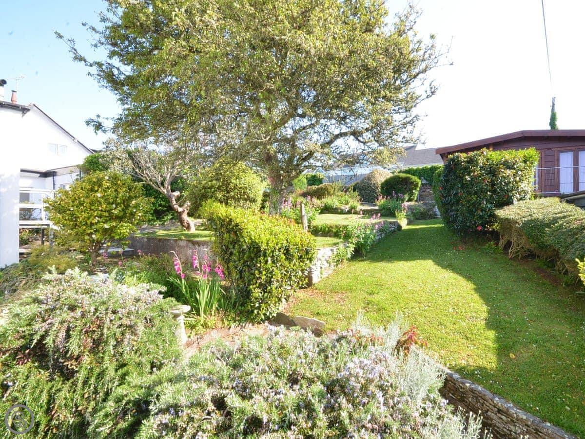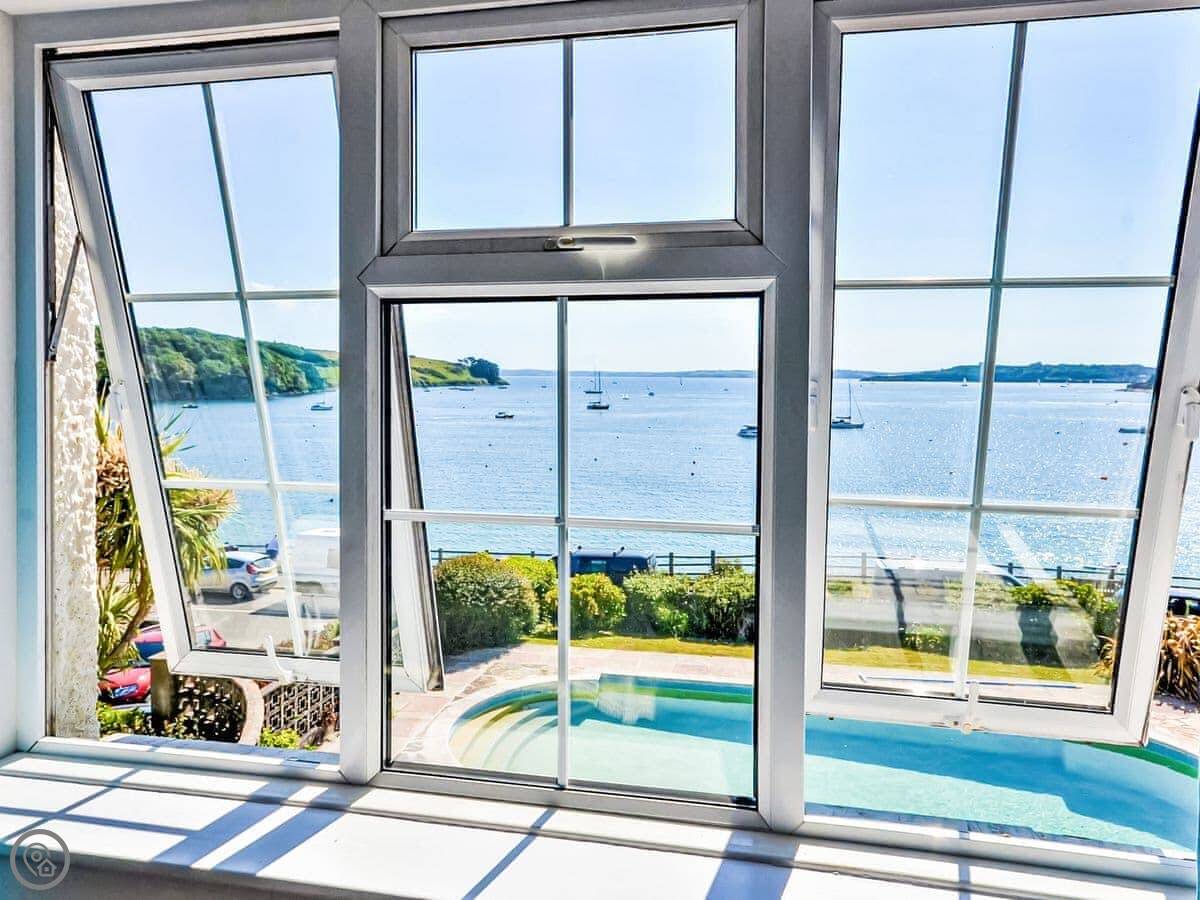 The living room and main bedroom look straight out over the sea to St Mawes harbour. You can see the castles and right across to the Lizard on a clear day. The garden has a raised patio with a table and chairs. You can sit out there and it's a nice spot.
