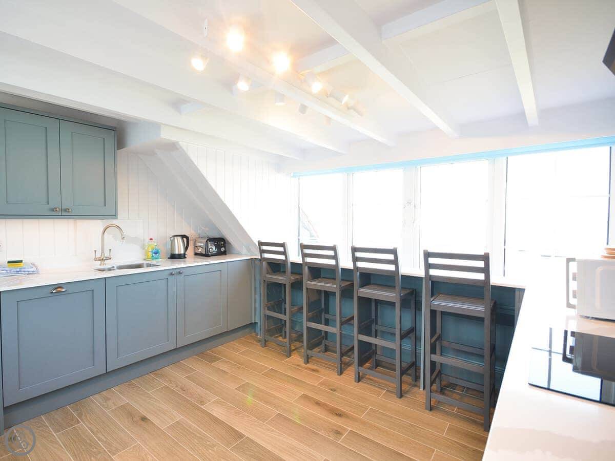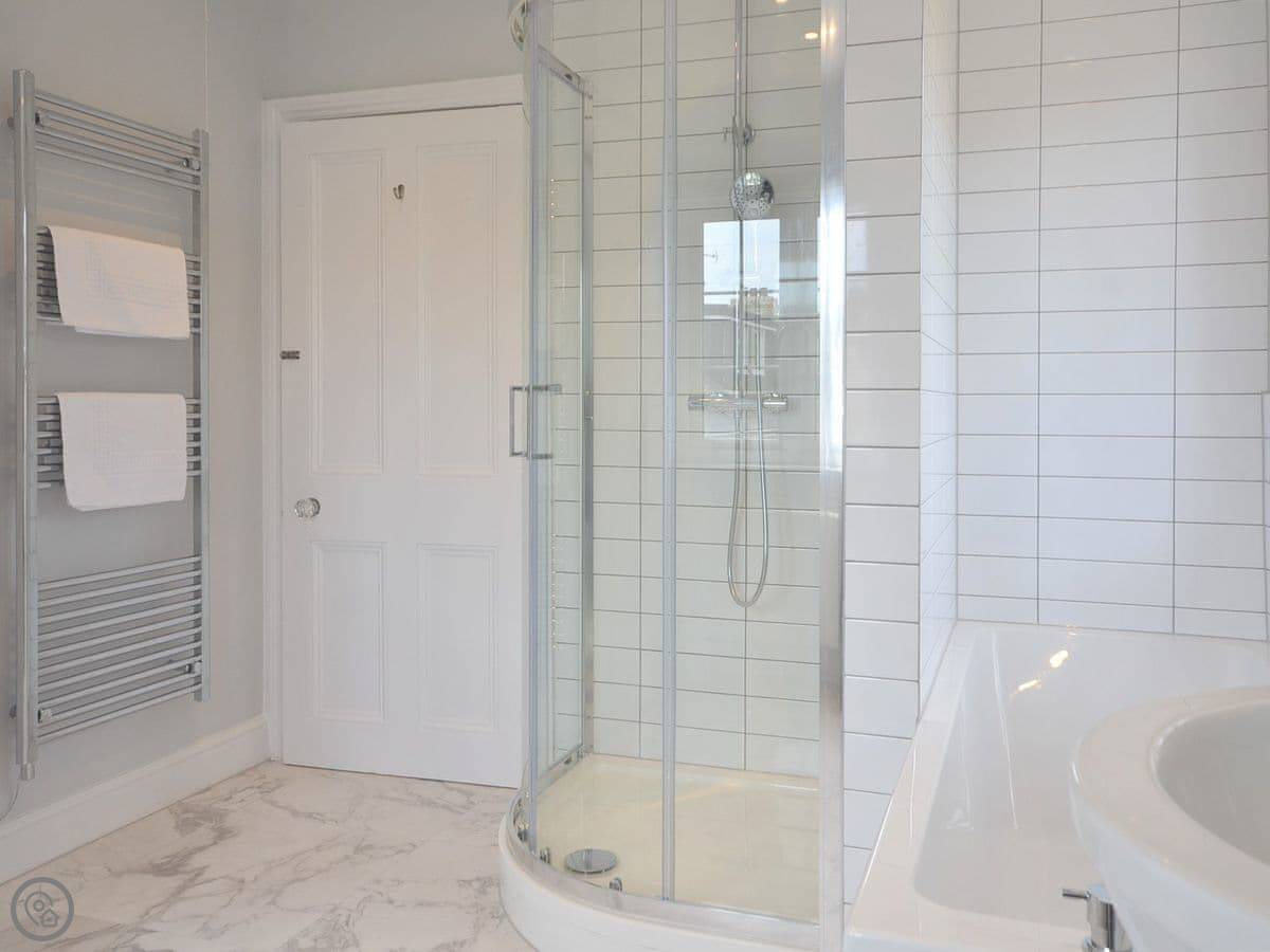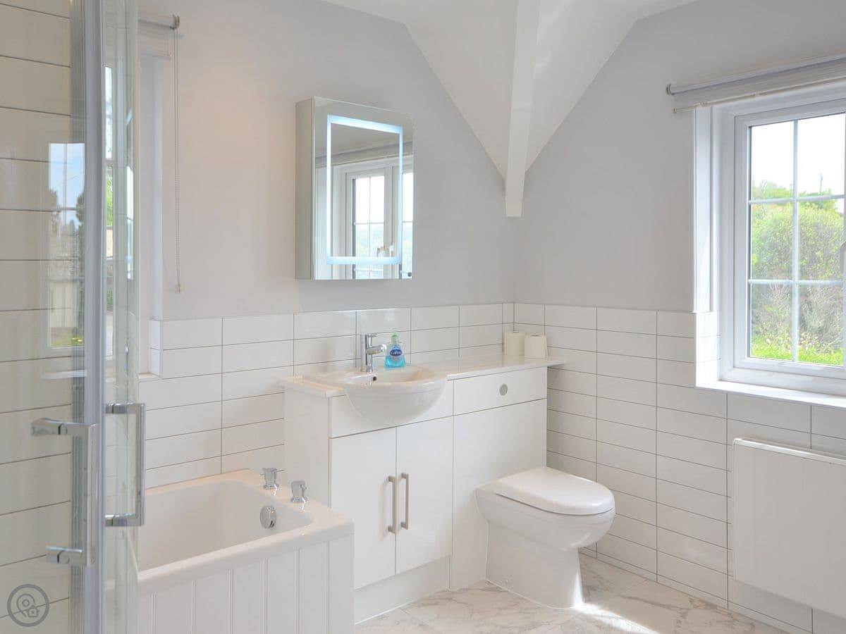 It sleeps six. Three bedrooms, two bathrooms. One bathroom on the first floor with a separate shower, and another shower room upstairs. It's got a 4 Star rating. It's clean and comfortable, and the main thing is the view.