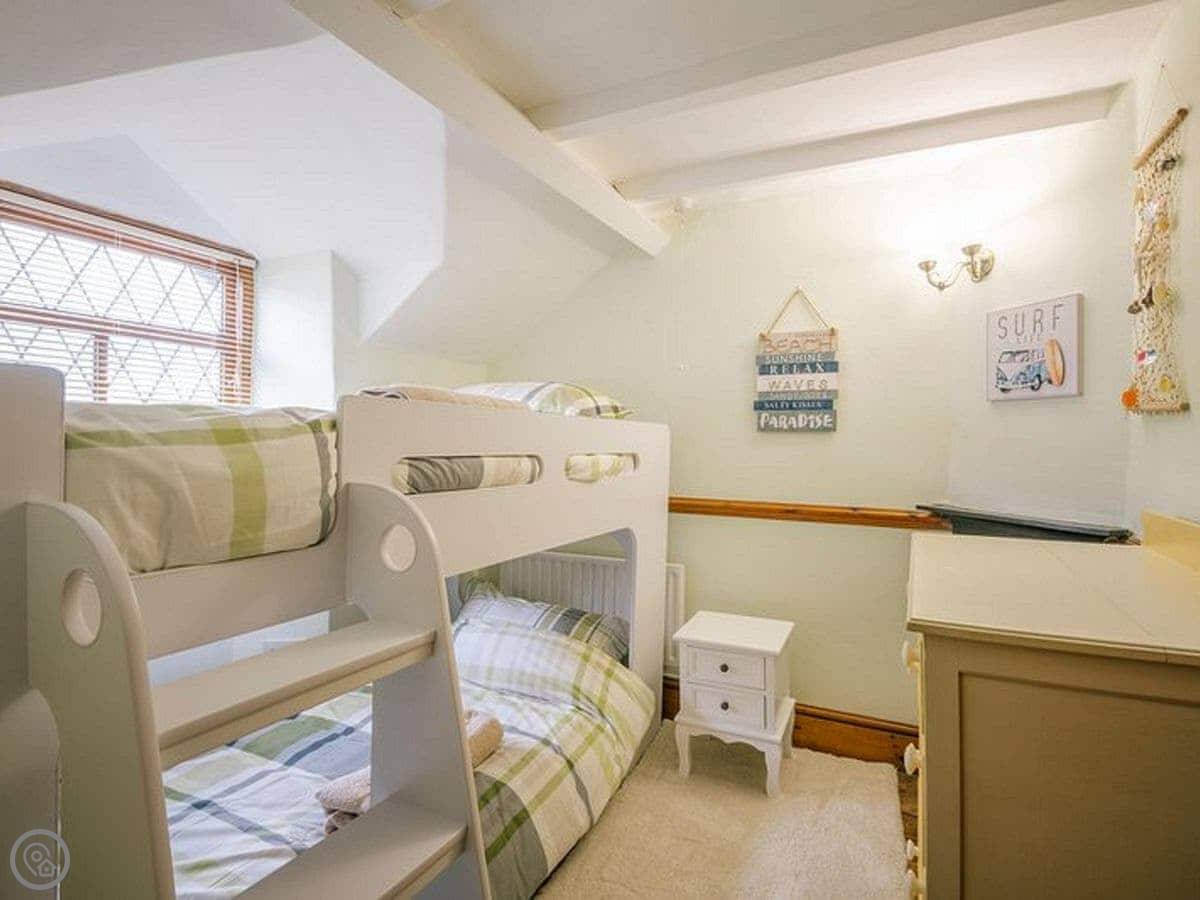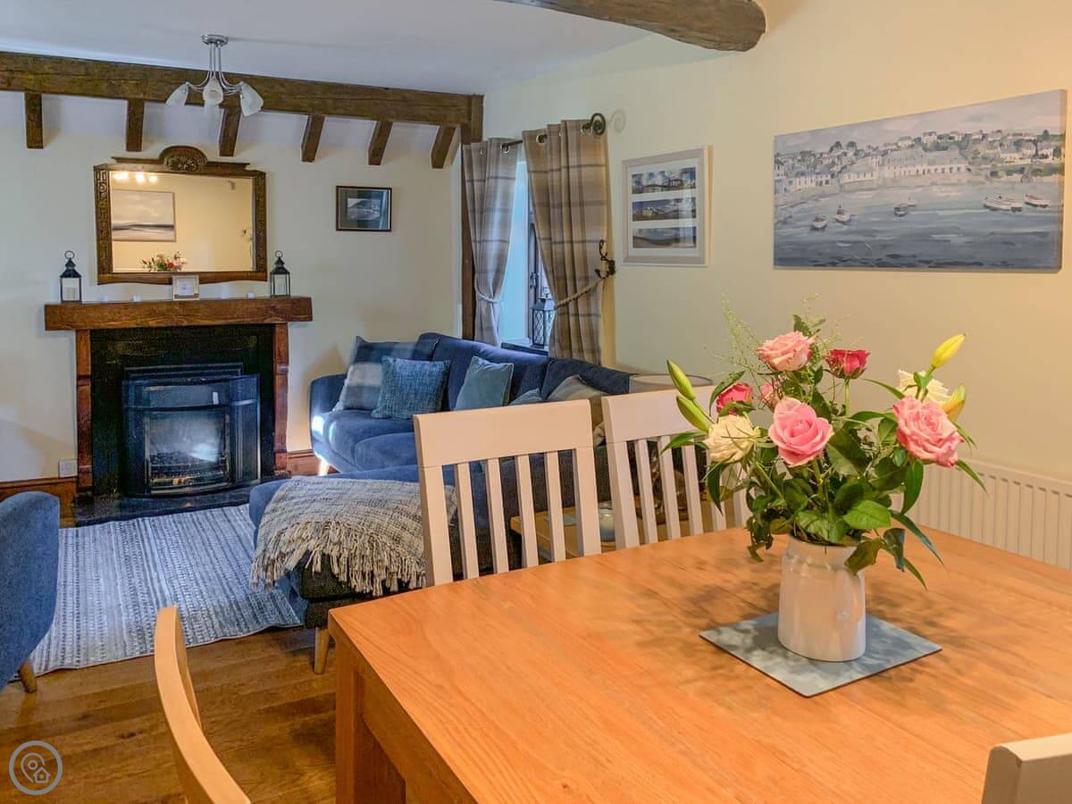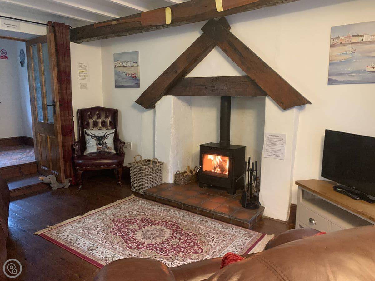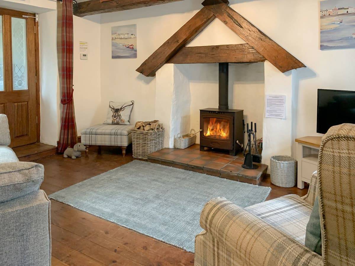 If you are imagining a stay that involves strolls to the beach in the day, followed by relaxing evenings in a traditional Welsh pub enjoying great food, drink and hospitality, then Keepers Cottage is the place for you. Right from the doorstep, you will find a path that takes you down to the bay and the pub. Keeper’s Cottage provides the perfect getaway for a multi-generational seaside break. Traditional in style, with many original features including exposed timber beams, latched internal doors and fabulous feature fireplaces, it oozes cottage charm. The hallway, with tiled flooring, provides space to hang up your coats or place your sandy shoes before walking through into the snug. A stunning Inglenook fireplace with wood burning stove is the focal point of this room, with comfortable sofas and a Freeview TV. Patio doors lead straight out onto a decked outdoor area with modern garden furniture, the perfect spot for a sundowner or morning coffee. Through then to a separate living/dining area with flame effect electric fire, comfortable sofas and dining table seating six, providing the group with yet another place to relax, watch TV or pop through to the lovely sunroom to read a book or listen to music. The kitchen is modern yet retains its traditional feel, providing all the amenities you could need during your stay including double oven, microwave, fridge freezer, wine cooler and dishwasher. The adjacent utility room is complete with washing machine, dryer, iron and ironing board. Finishing off the ground floor, you will find the master king sized bedroom boasting beamed ceilings, walk-in wardrobe, and en-suite shower room for your comfort. On the first floor you will find two additional bedrooms, consisting of a double room with private terrace and seating, the perfect spot for enjoying a morning brew. The other, a comfortable bunk room, both served by a modern walk-in shower room with basin and WC.