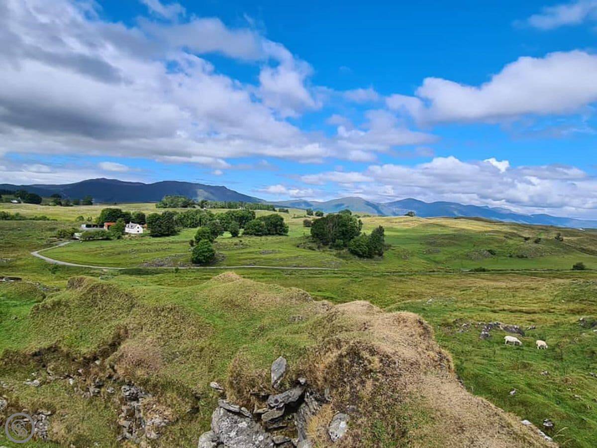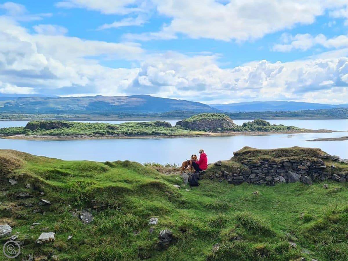 If you are looking for stunning landscapes, rich wildlife, and friendly islanders, then look no further! Take in the breath-taking views of the surrounding mountains of Ben Nevis, Ben Cruachan and the Morven hills, alongside the rugged coastline which only an island can offer. This is both a truly unique experience and relaxing getaway. Enjoy the silence except for the odd sheep or barn owl which you might hear in the evenings. With amazing views all around, an Iron Age Broch, Tirefour Castle, which can be seen from Balure, is only a 5-minute walk away where you can enjoy panoramic views over the island including Ben Nevis to the north and Oban in the south.