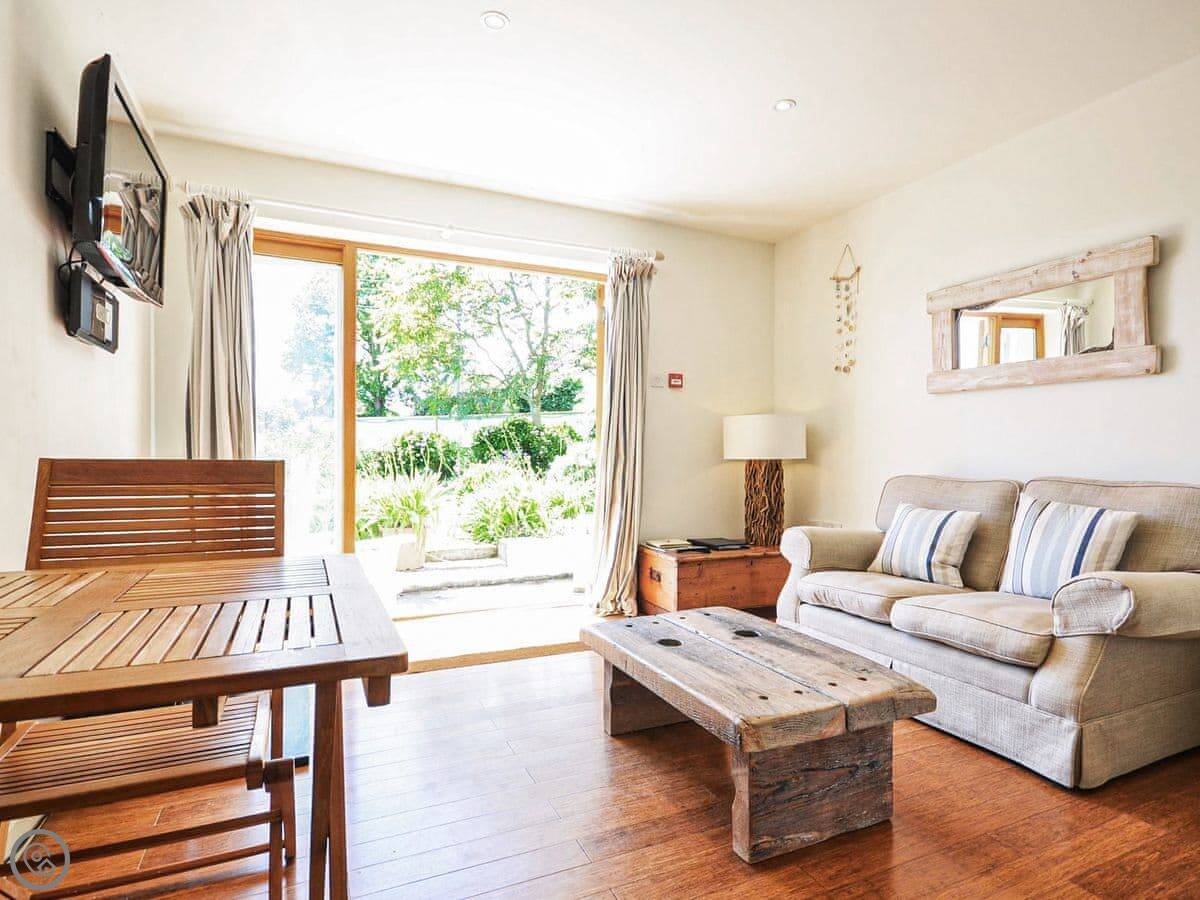 A perfect holiday home in a perfect location. A cosy and contemporary annexe to the owners’ home providing luxury accommodation for two. The accommodation is all arranged on the ground floor and comprises open plan living room and kitchen with dining area, double bedroom and modern shower room as well as outside space and parking. The entire cottage has been designed to have a coastal feel through the choice of warm pastel colours, quality fabrics and furniture. The local beaches, riverfront and sea are only a short stroll away with the village centre and amenities just beyond.