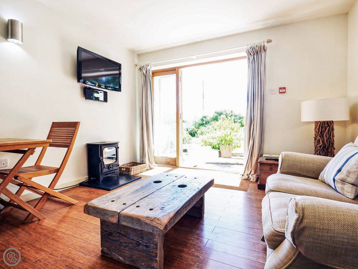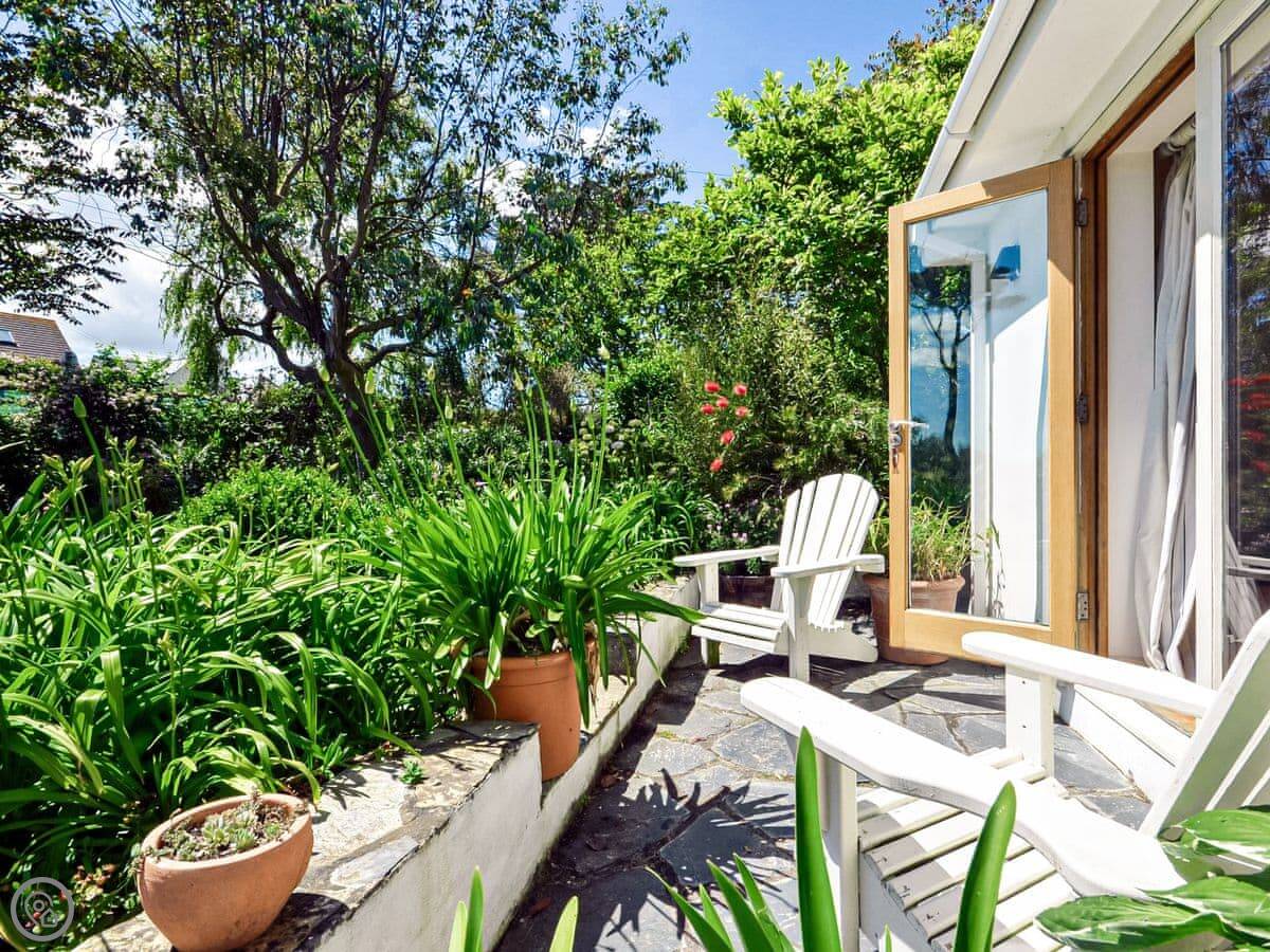 Living area with wood burner 32" television and DVD player, comfortable sofa and dining table for two. French doors opening onto the gardens. Kitchen shaker style and fully-equipped with double oven, hob, microwave and fridge. The bedroom is a secluded and tranquil room with double bed with beautiful White Company’ linen. The shower room is a contemporary room with modern fittings including a spacious shower cubicle. There is use of segregated parts of the well-stocked gardens including the sun terrace with loungers adjoining the living area. Why not bring your faithful friend to enjoy St Mawes too, they get their own fleece blanket to keep them warm and comfortable during their stay. Beach ¼ mile.