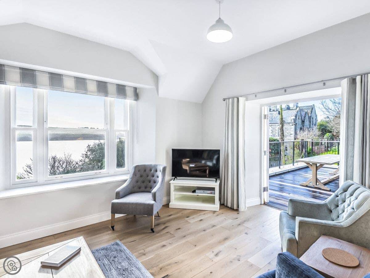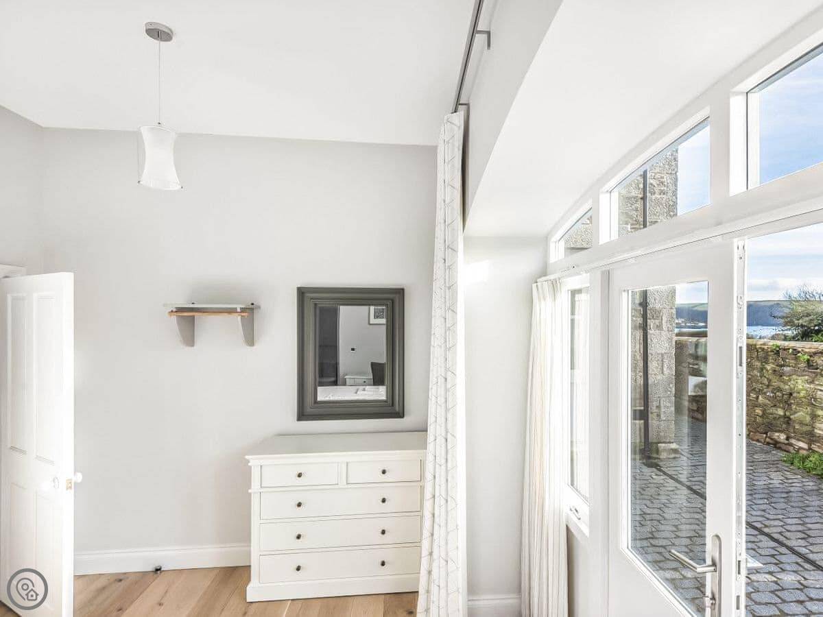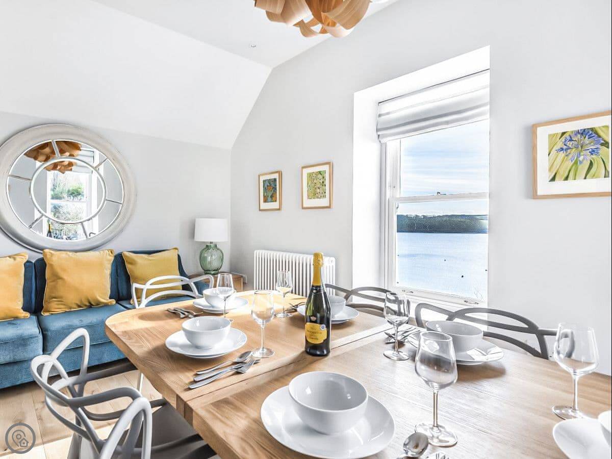 The Haven Lodge is in St Mawes. It's a detached house up the hill from the harbour. You can see the sea from the upstairs rooms.
