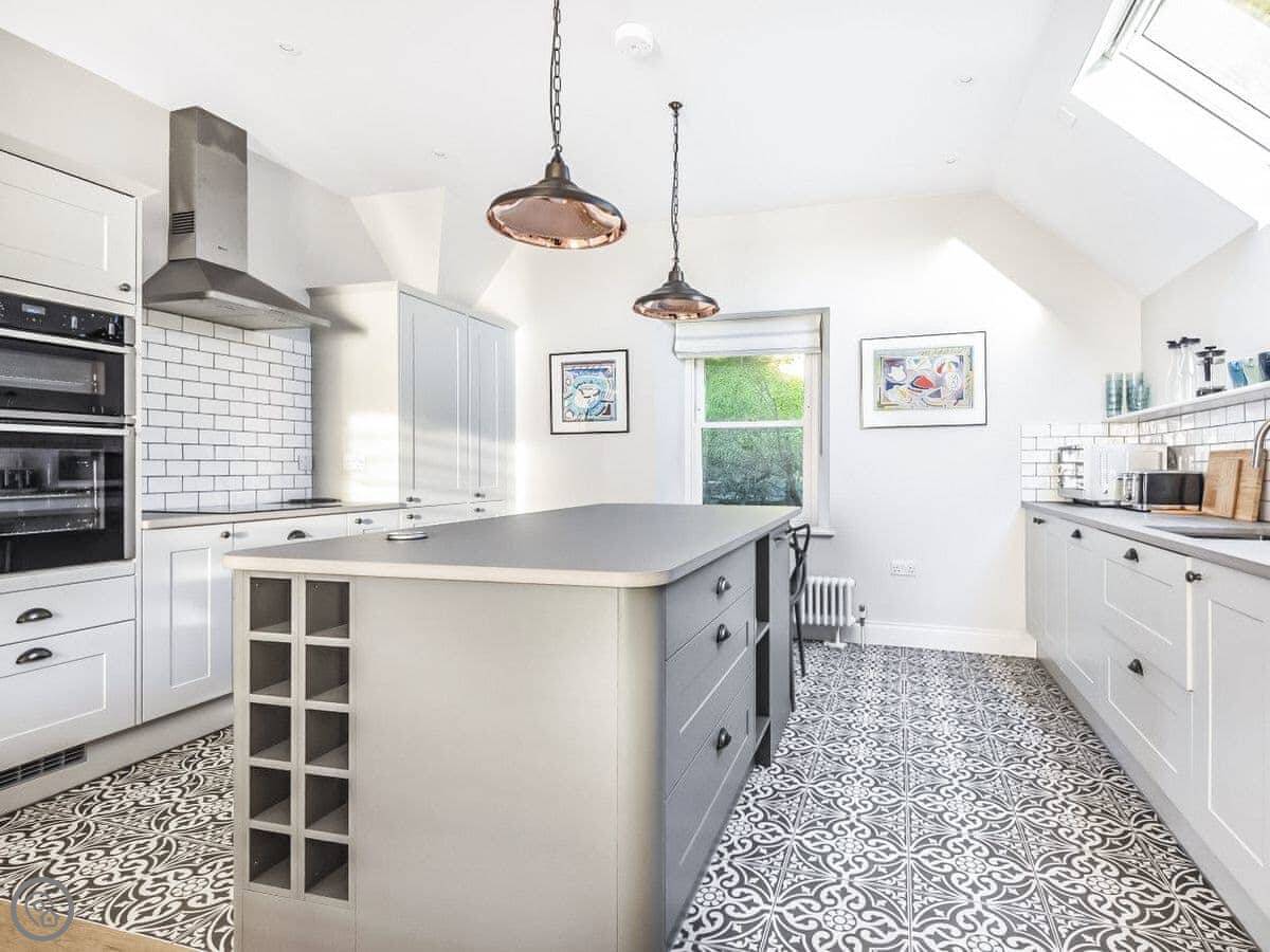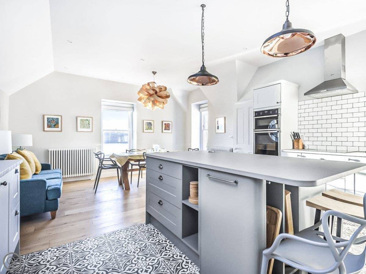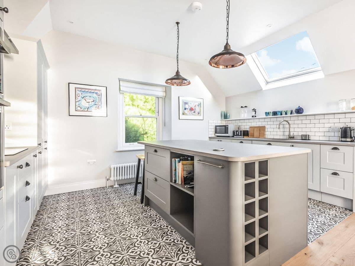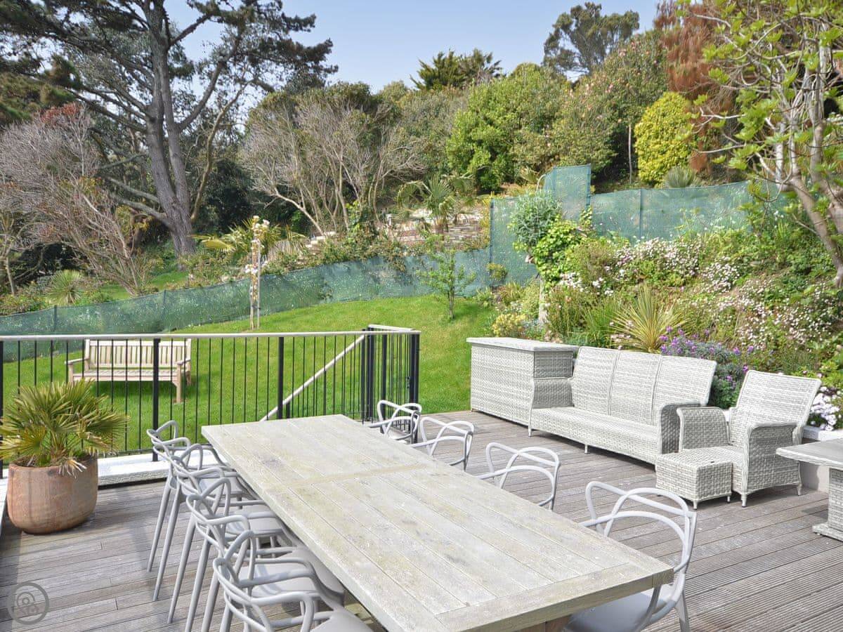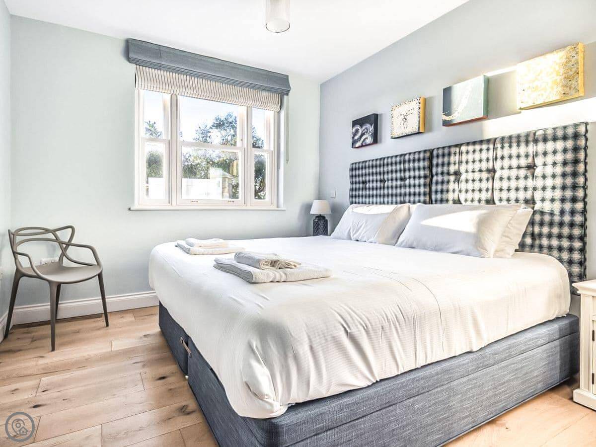 Facilities: it's got a washing machine and tumble dryer, a dishwasher, parking for two cars, and that deck with garden space. One well-behaved dog is allowed.