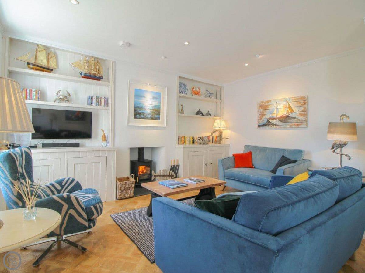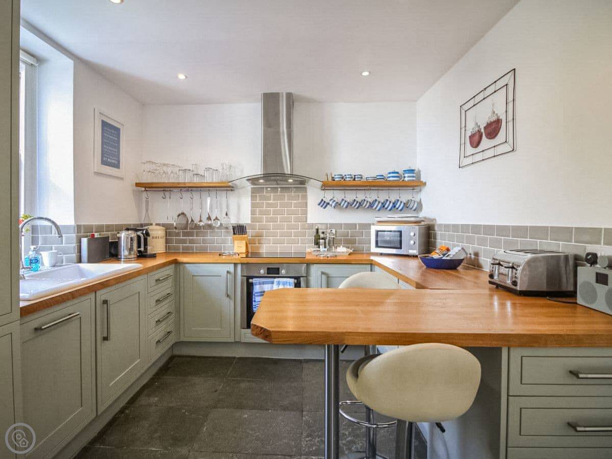 Inside, there's underfloor heating downstairs and a wood burner for the evenings. Washing machine, dishwasher, WiFi. Bedding and towels are included. There's a cot and a stairgate if you need them. No pets, sorry.