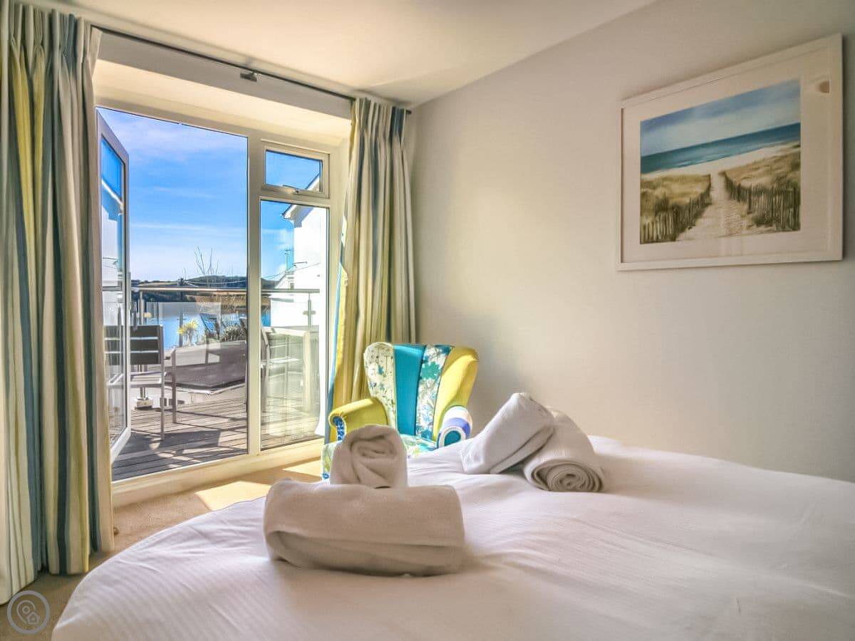 You don't really come here for the inside. It's nice. It sleeps six, three bedrooms, two bathrooms. The 4 Star rating means it's done to a good standard. But you're here for the view. The main bedroom has a balcony that looks straight out over the harbour. You can have your coffee there in the morning and watch the water taxis and sailing boats. The sea's right there.