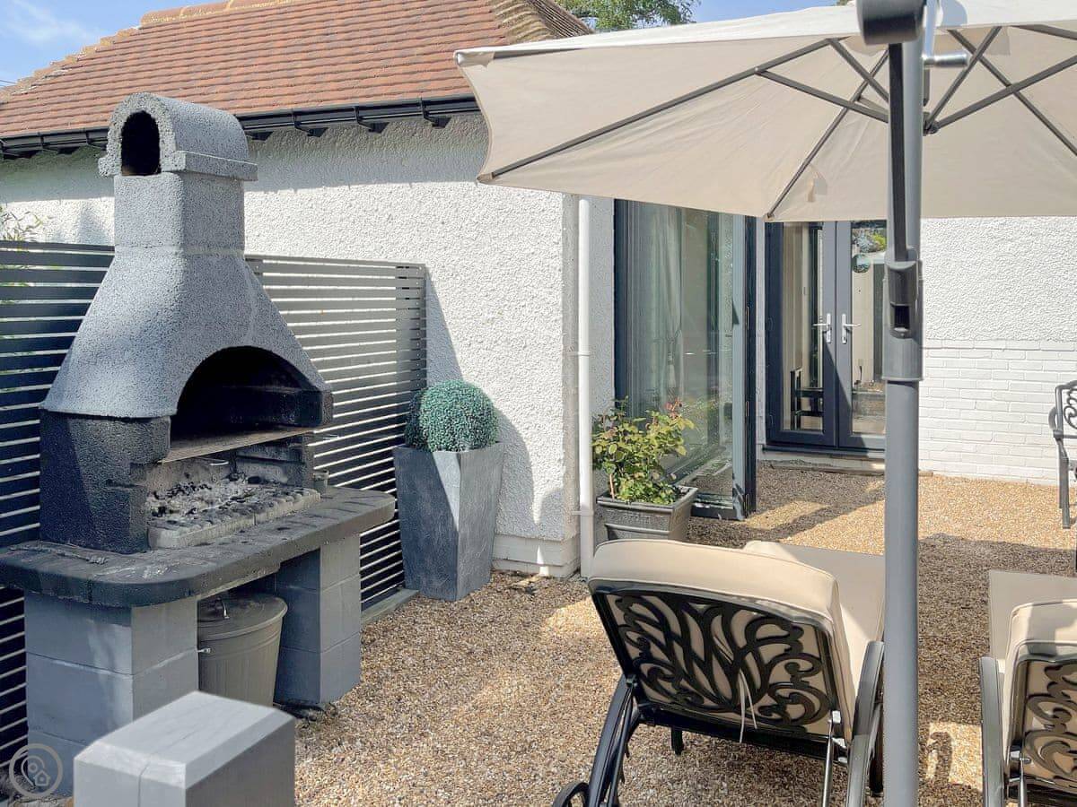 The main thing outside is the hot tub. It's in the enclosed garden, down a few steps. There's also a small gym shed at the bottom if you want it. The garden gets the sun in the afternoon.