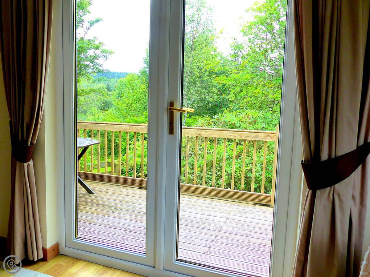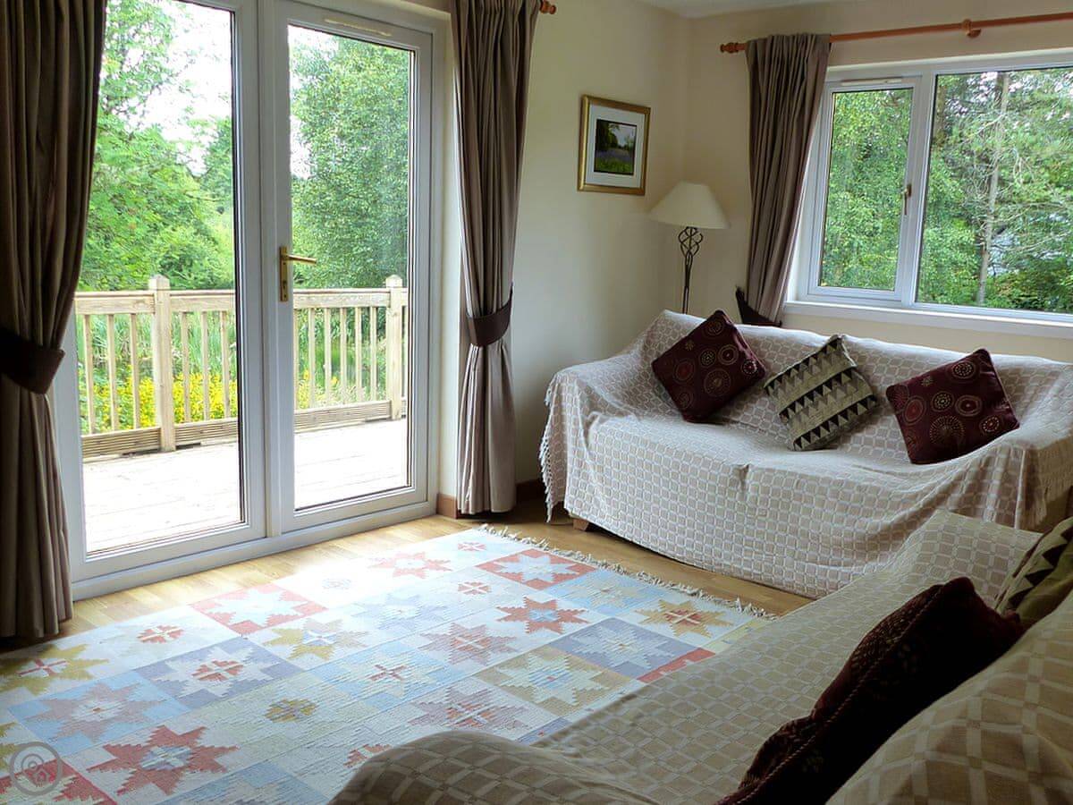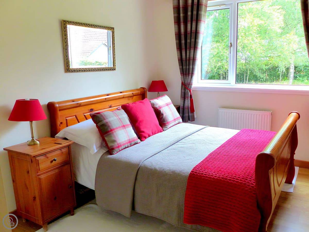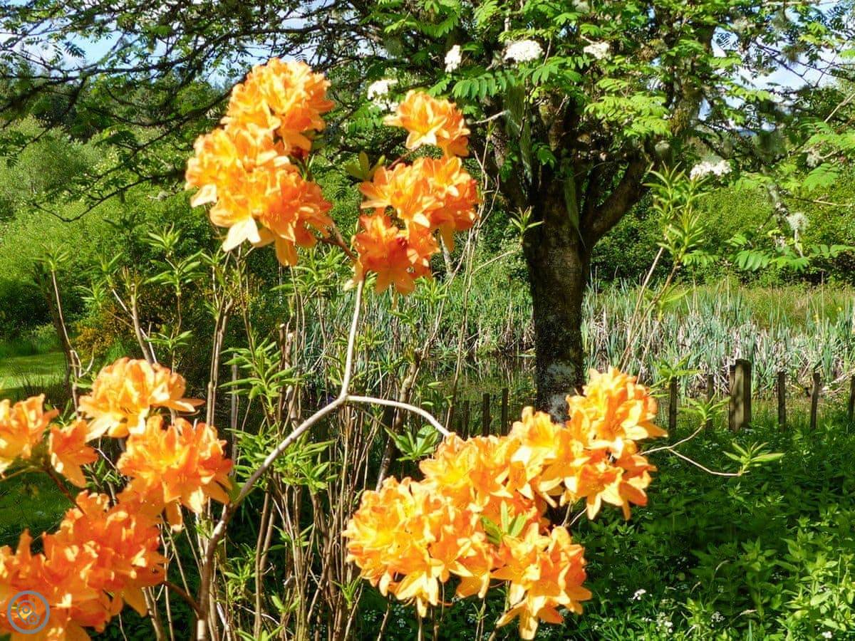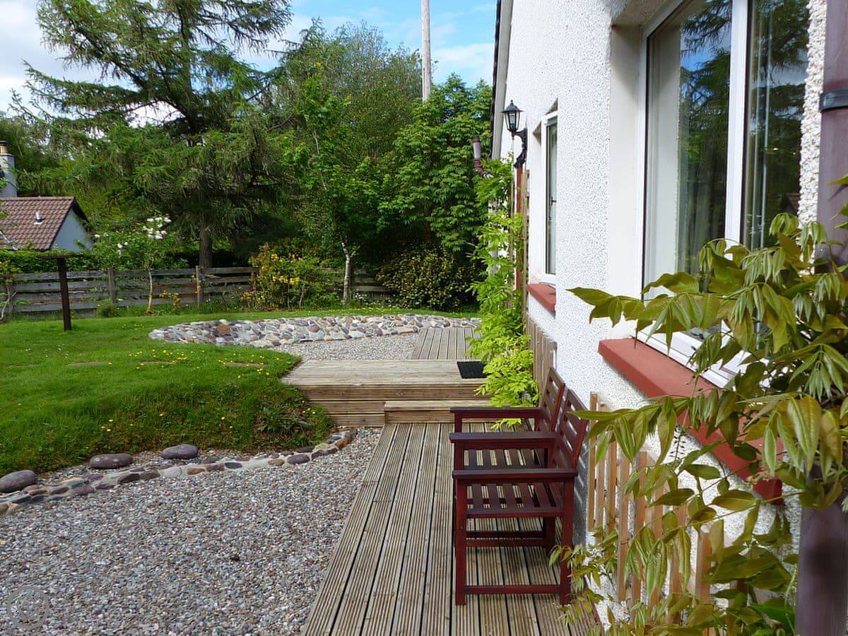 This is Bo Nan Taigh Cottage. It's on the edge of Aberfoyle, in the Queen Elizabeth Forest Park. It's quiet here. You look out over woods and a wildlife pond from the garden.