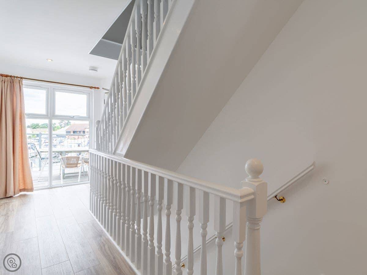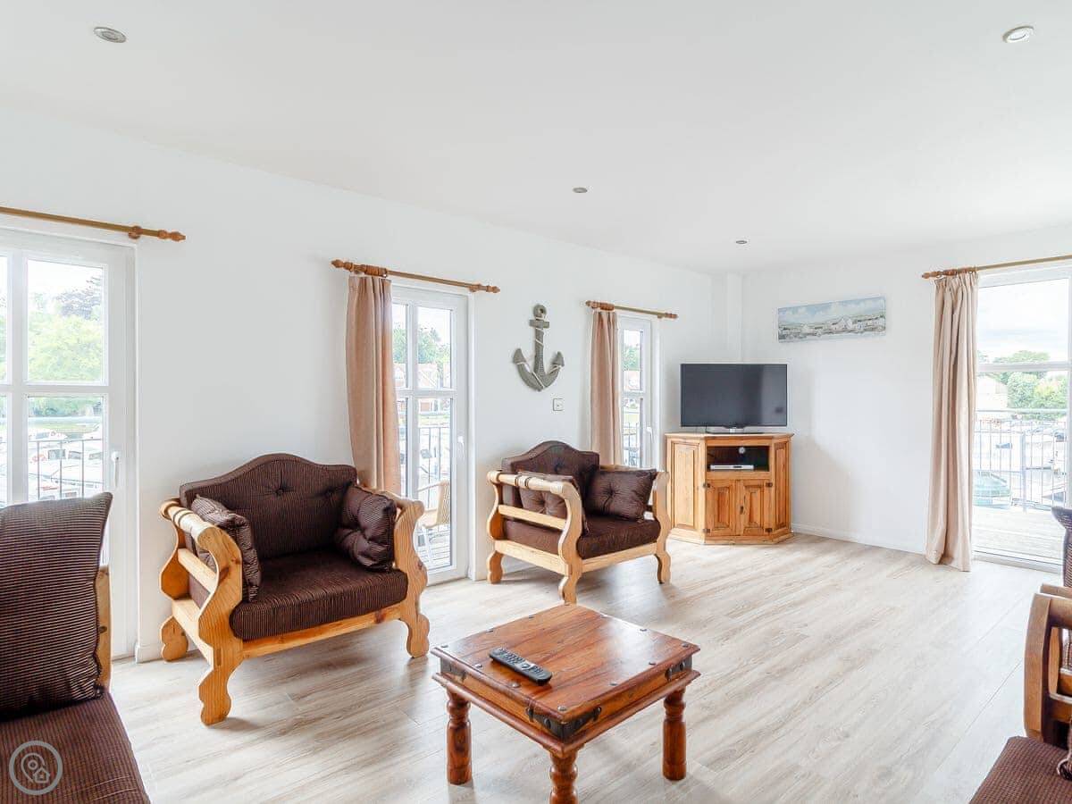 The main thing is the location. You've got your own decked balcony overlooking the water. There's a private mooring right outside. If you want to get out on the river, there's a day launch you can use for free most of the year, except the school summer holidays. You can still hire one then, but you pay.