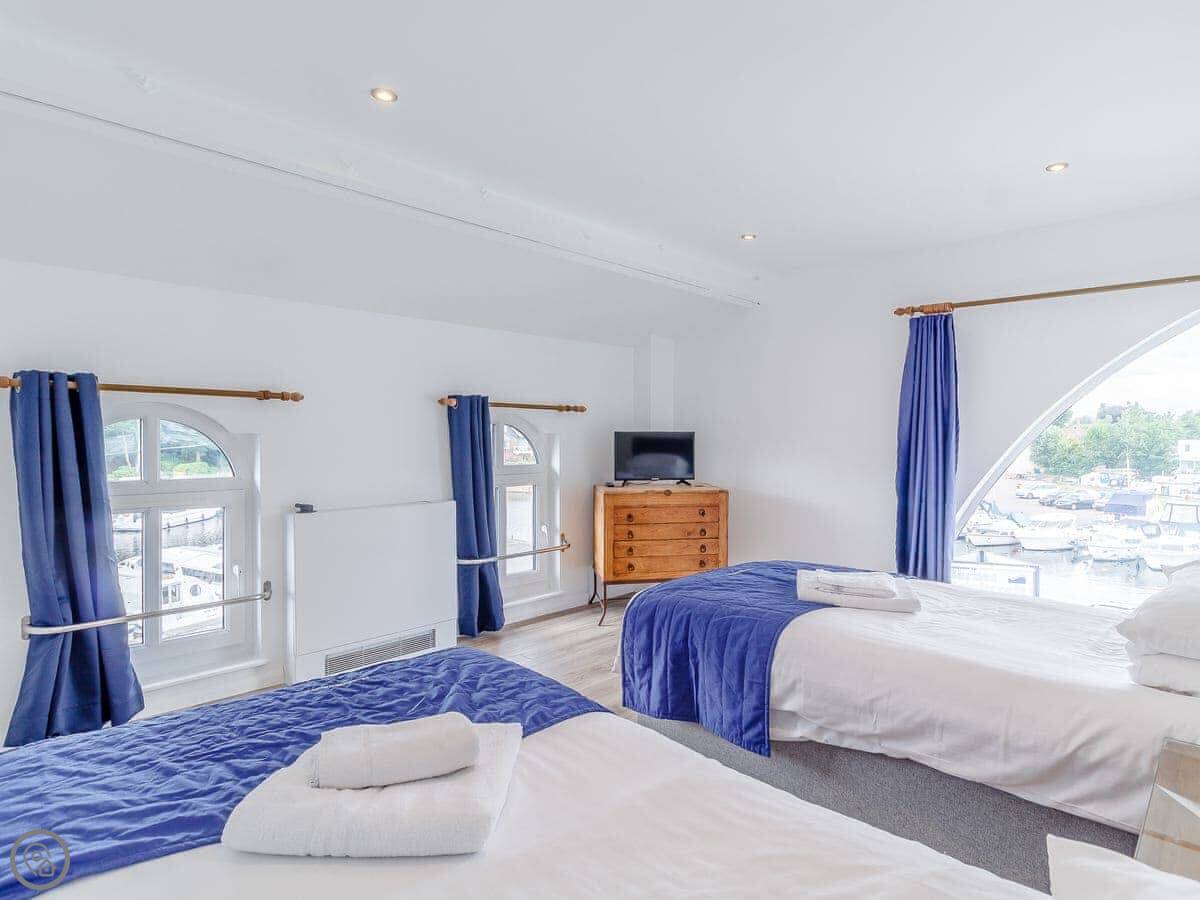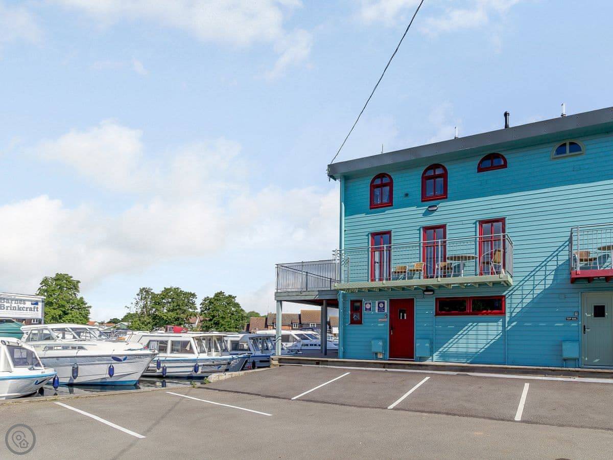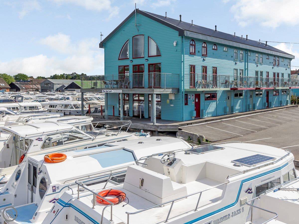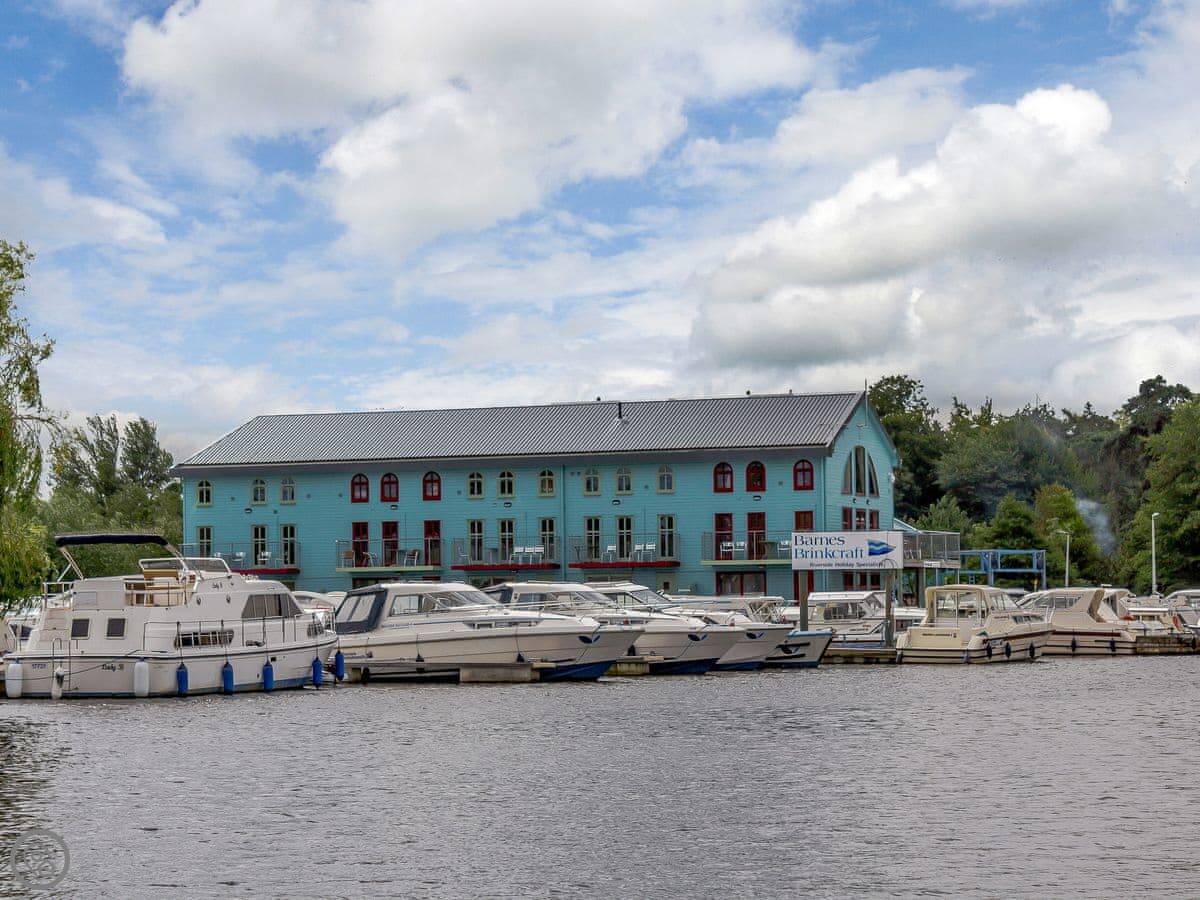 This is Spinnaker. It's an apartment right on the river in Hoveton, next to Wroxham. You look out over the water.