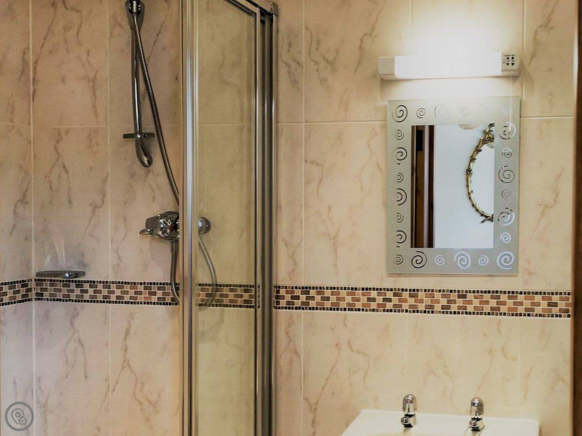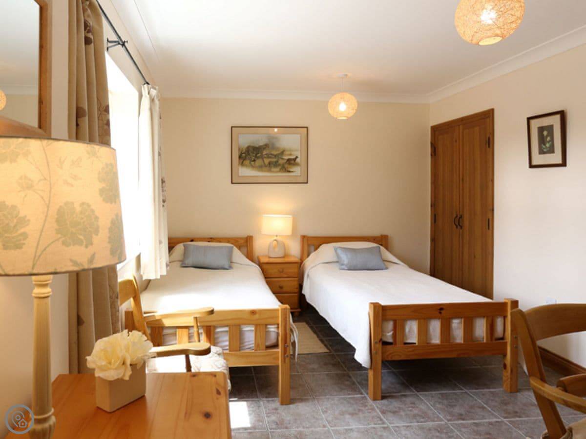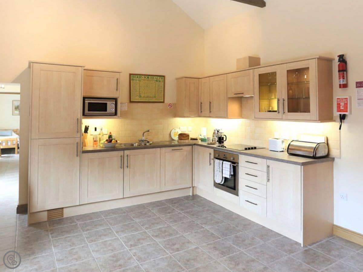 It sleeps four. Two bedrooms, each with its own shower room. It's a 4 Star, so it's well set up and comfortable. The ceilings are high with old beams. It has underfloor heating, which is nice on a cold morning.