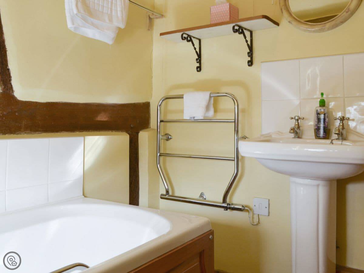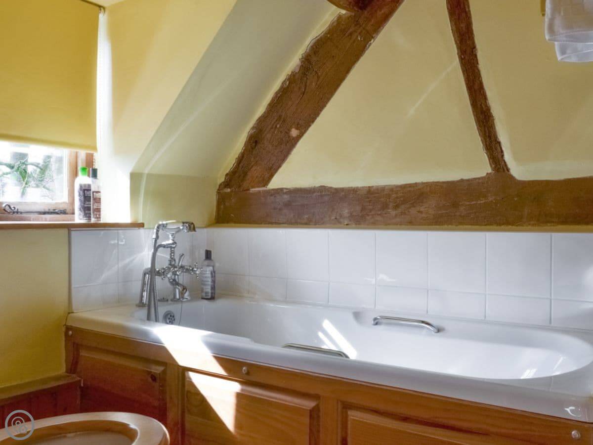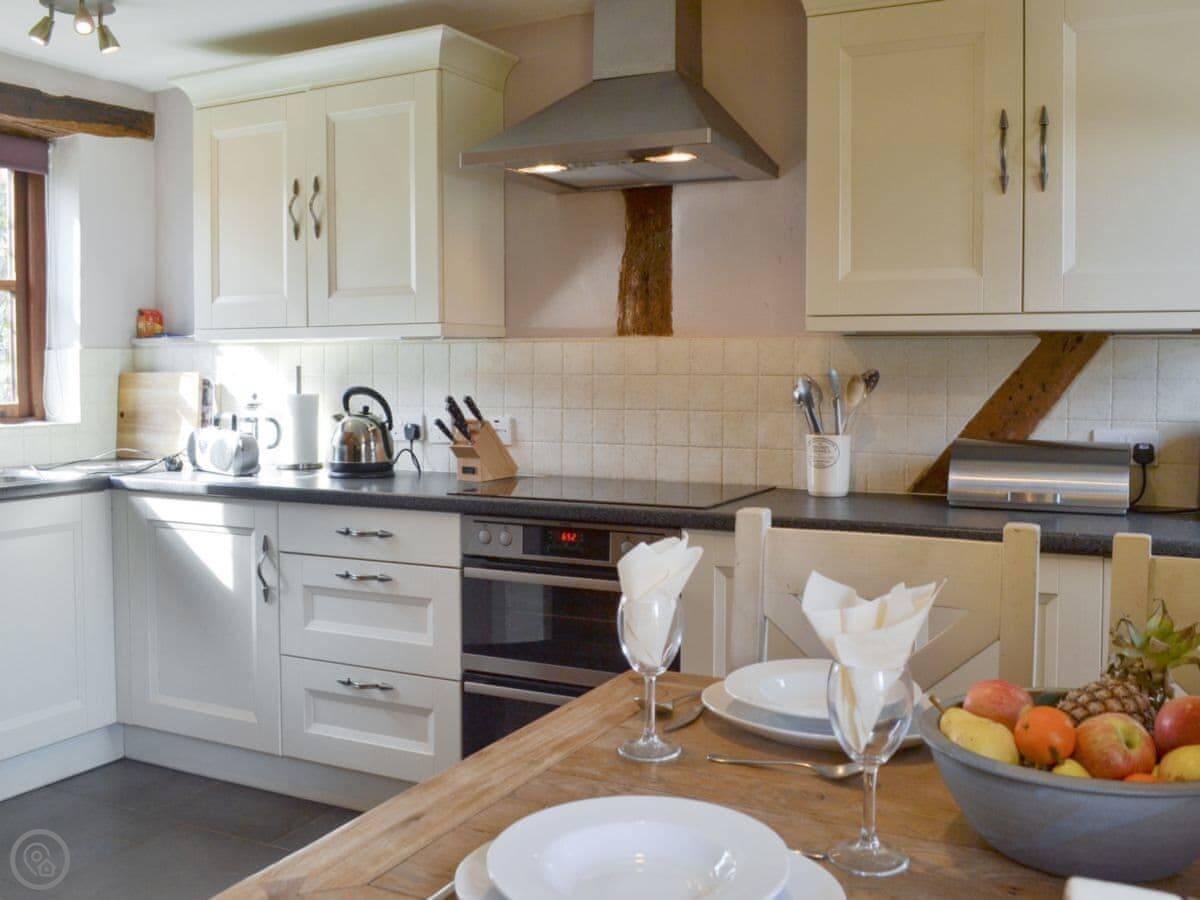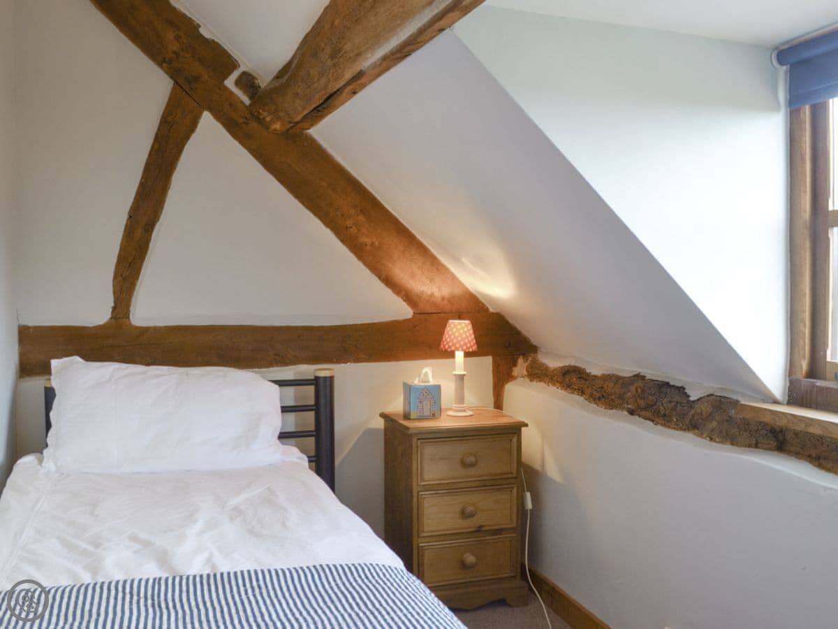 It sleeps five. There are three bedrooms and two bathrooms, which is handy. The place has a lot of the original oak beams, so the ceilings are a bit lower in some places but you get the character. It's got a 4 Star rating.