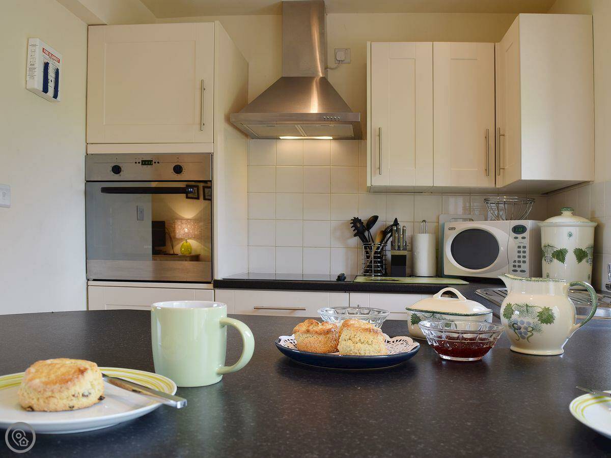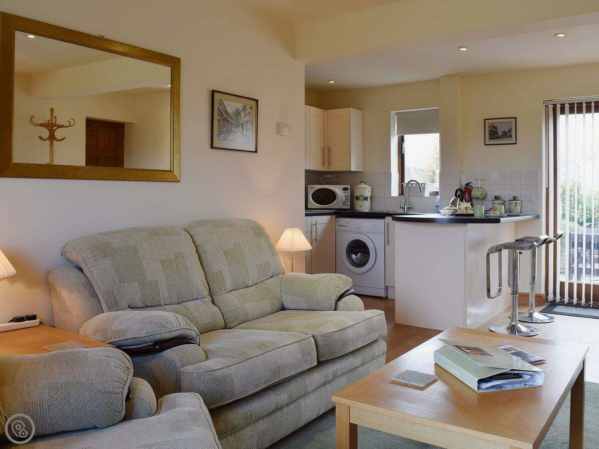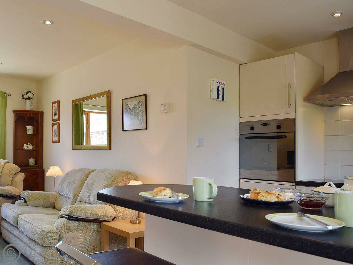 It's for two people. One bedroom, one bathroom, and it's all open plan downstairs. It's got a 4 Star rating. It's modern and clean. The bed is upstairs, so the stairs are there, but they're not too bad.