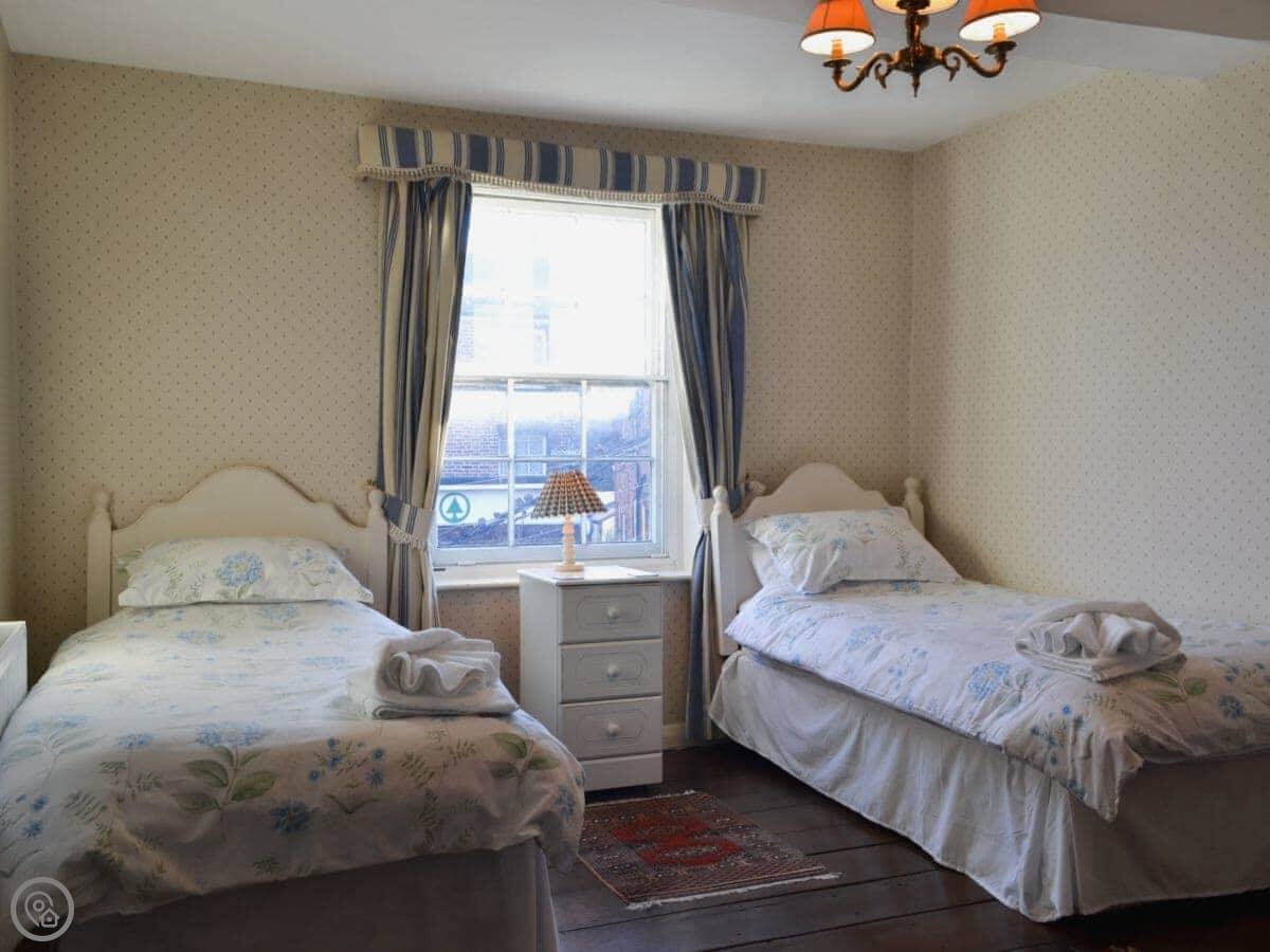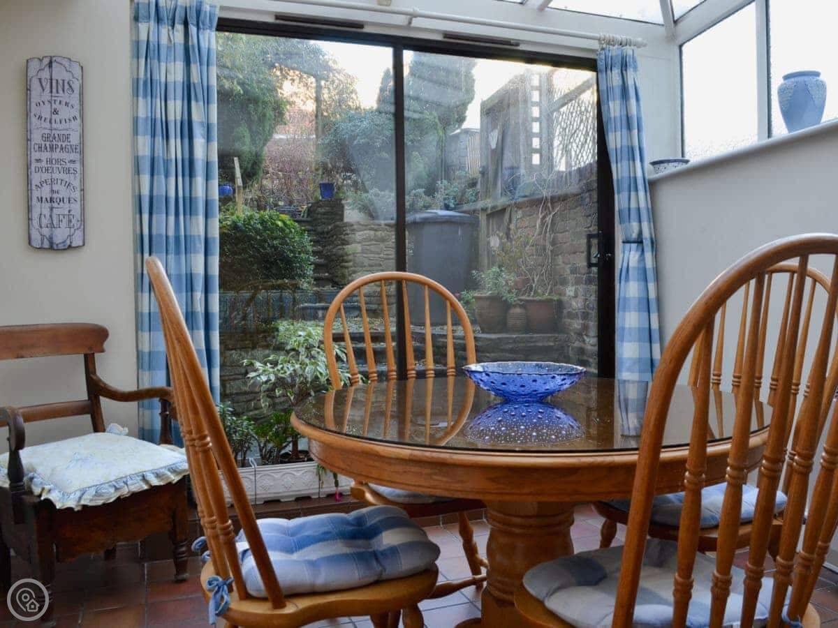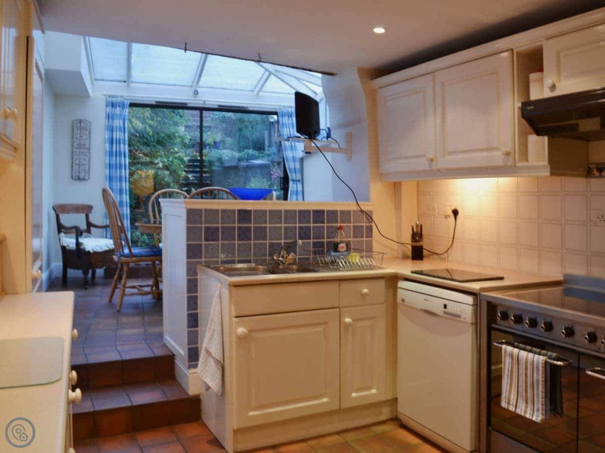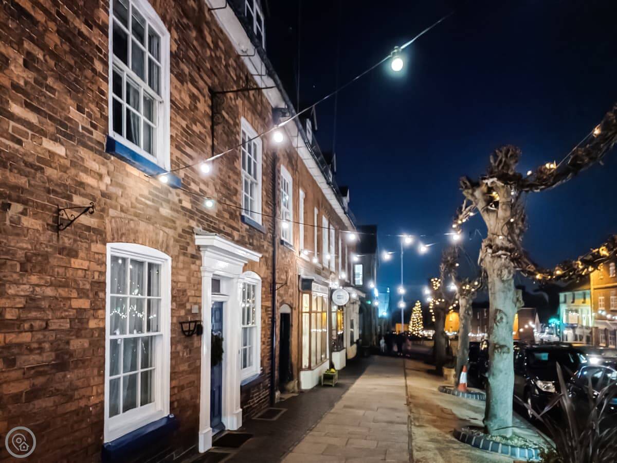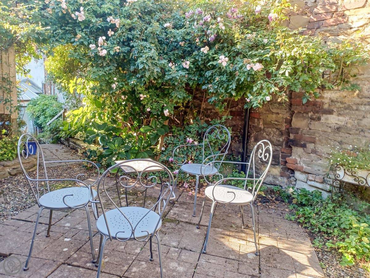 You're right in the middle of town. The front door opens onto the pavement. There are several pubs, a couple of restaurants, and a really good butchers and grocers all within a minute's walk. Out the back, there's a small, walled garden. It's quiet there, a proper sun-trap in the afternoon.