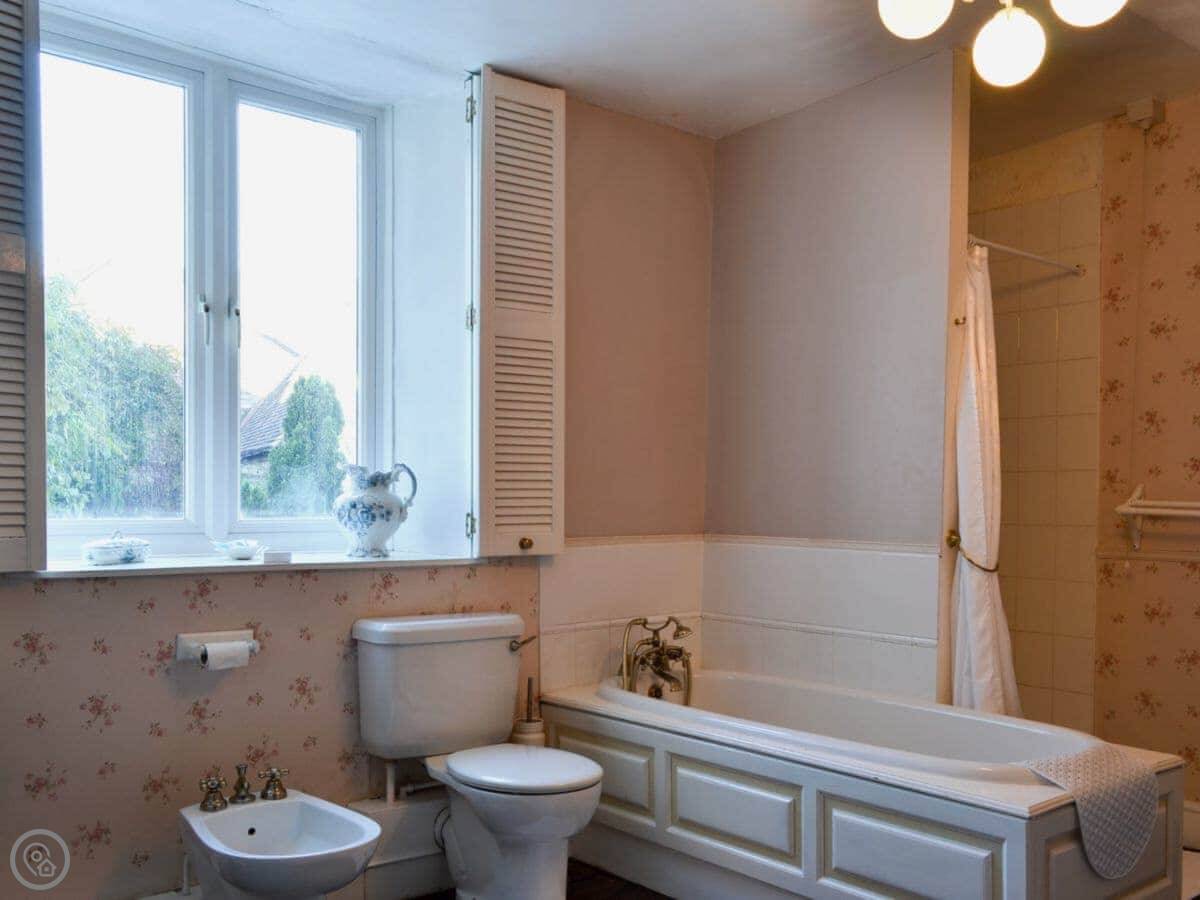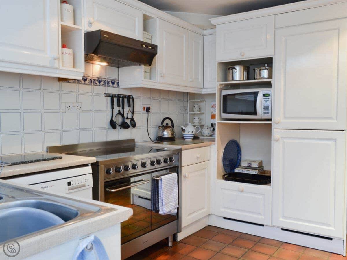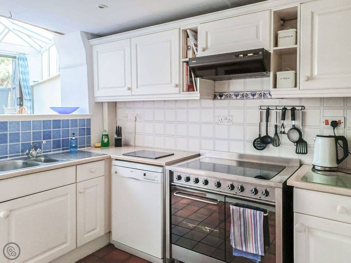 For facilities: it has a woodburning stove, a dishwasher, washing machine, WiFi, and TV. Bedding and towels are included. We can provide a cot. We accept up to two well-behaved dogs.