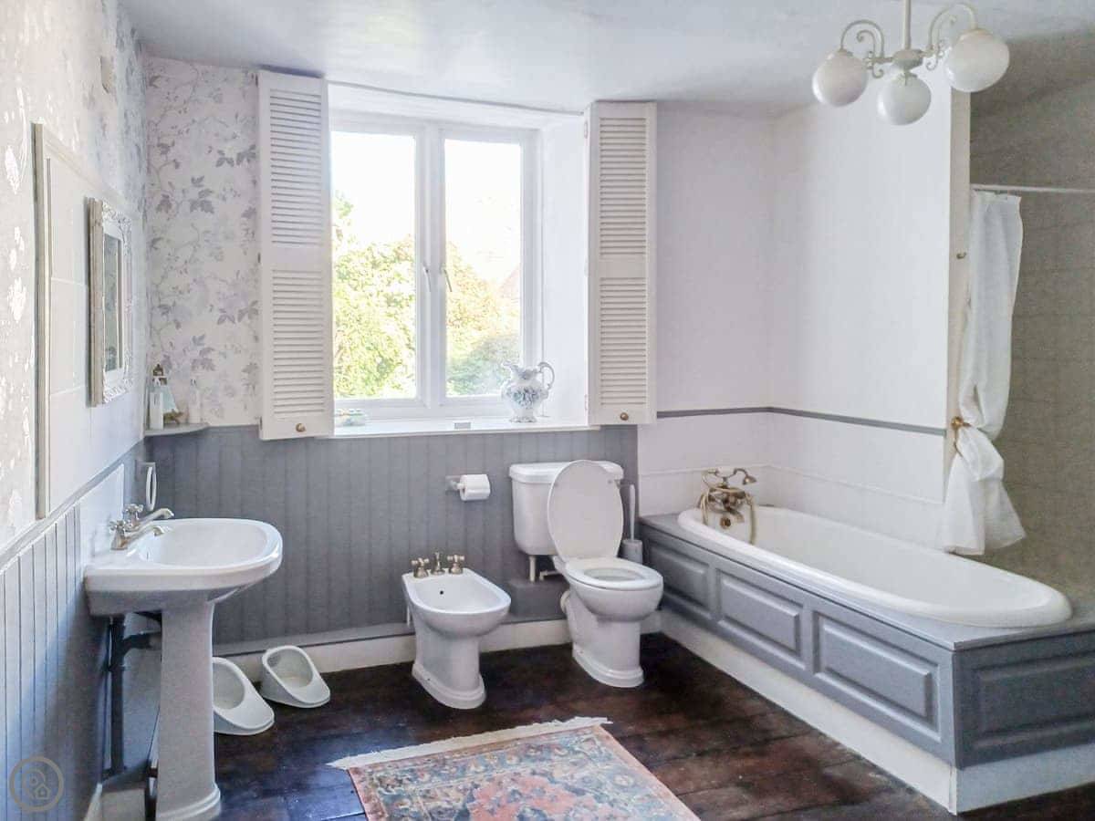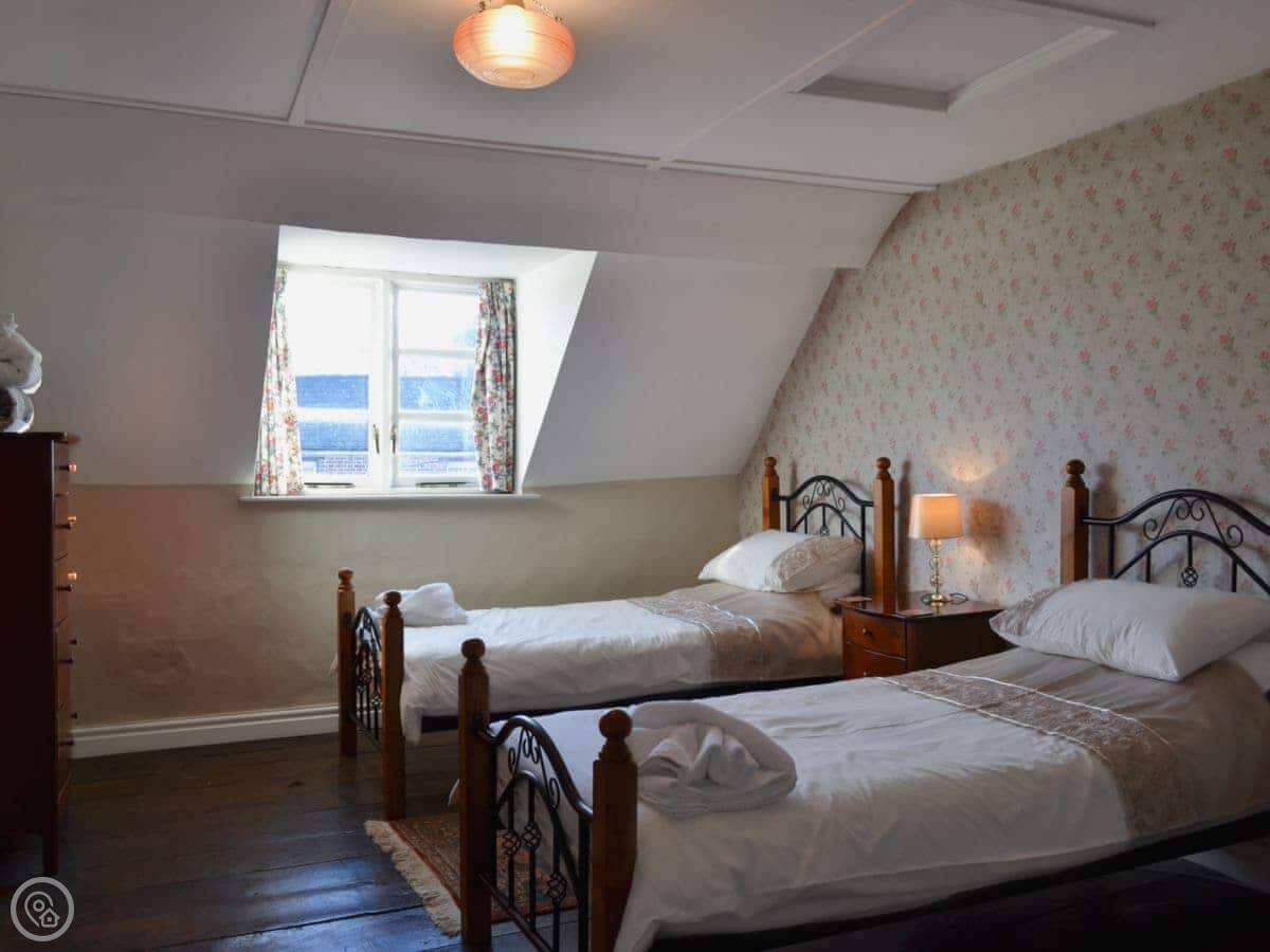 It sleeps eight, across four floors. There are four bedrooms and three bathrooms, which helps with a big group. It's a 4 Star place, so it's comfortable and well looked after. Just a note, the stairs are the original ones. They're fine, but they're quite steep and there are a lot of them.