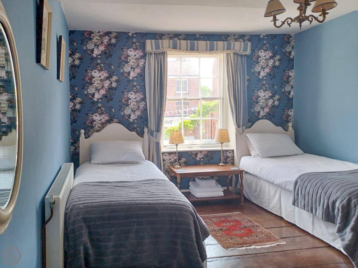 Ellinor House is on the main street in Cleobury Mortimer. It's a tall Georgian terrace, painted white. You can see the hills from the upstairs windows.