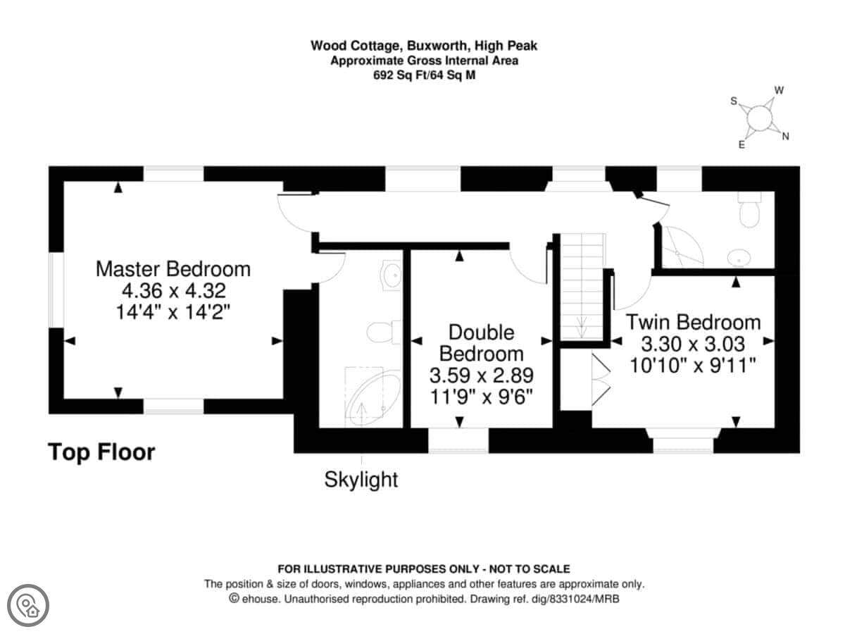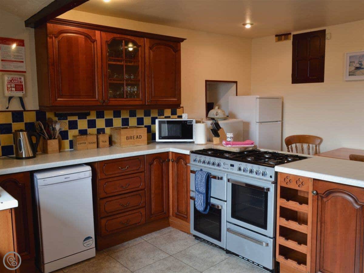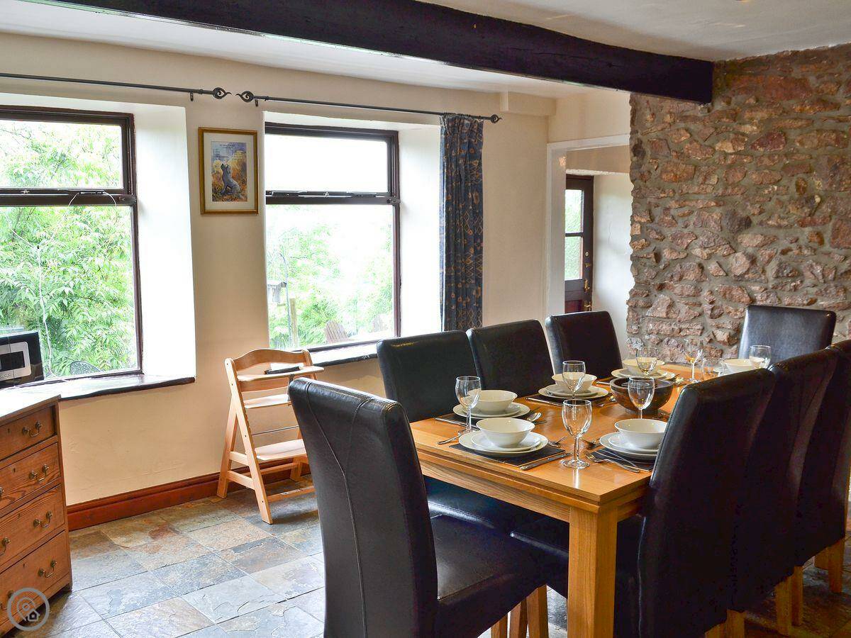 Wood Cottage is in Buxworth, on the edge of the Peak District. It's a semi-detached place. Sleeps eight, though there are three bedrooms, so a couple of rooms have bunk beds. Two bathrooms. It has a 4 Star rating, which means it's well looked after and comfortable.