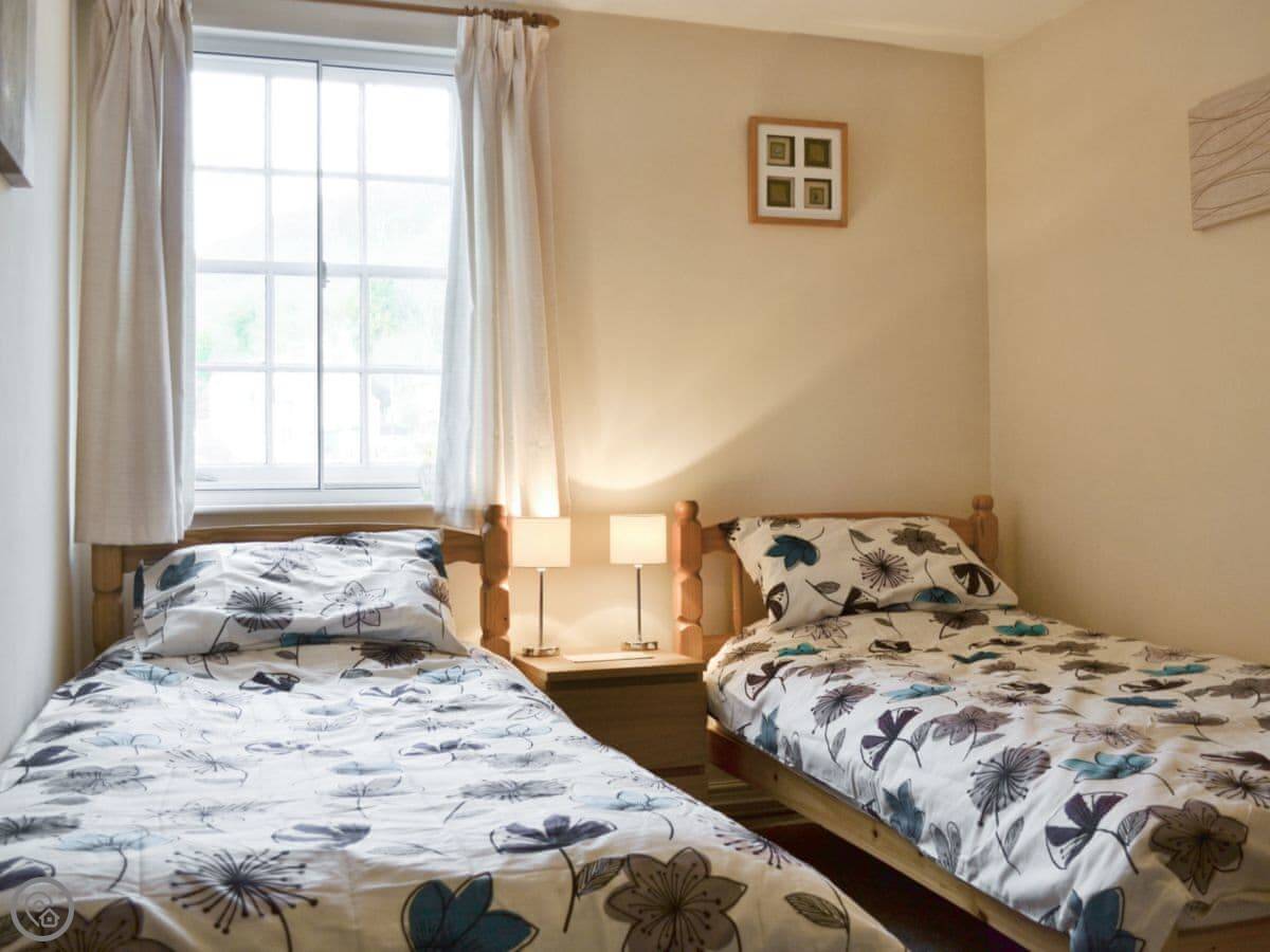 It sleeps four. Two bedrooms, one bathroom. It’s a 4 Star, so it’s comfortable and well kept. The kitchen and living space is all on the ground floor. The stairs to the bedrooms are steep, like a lot of these old places.