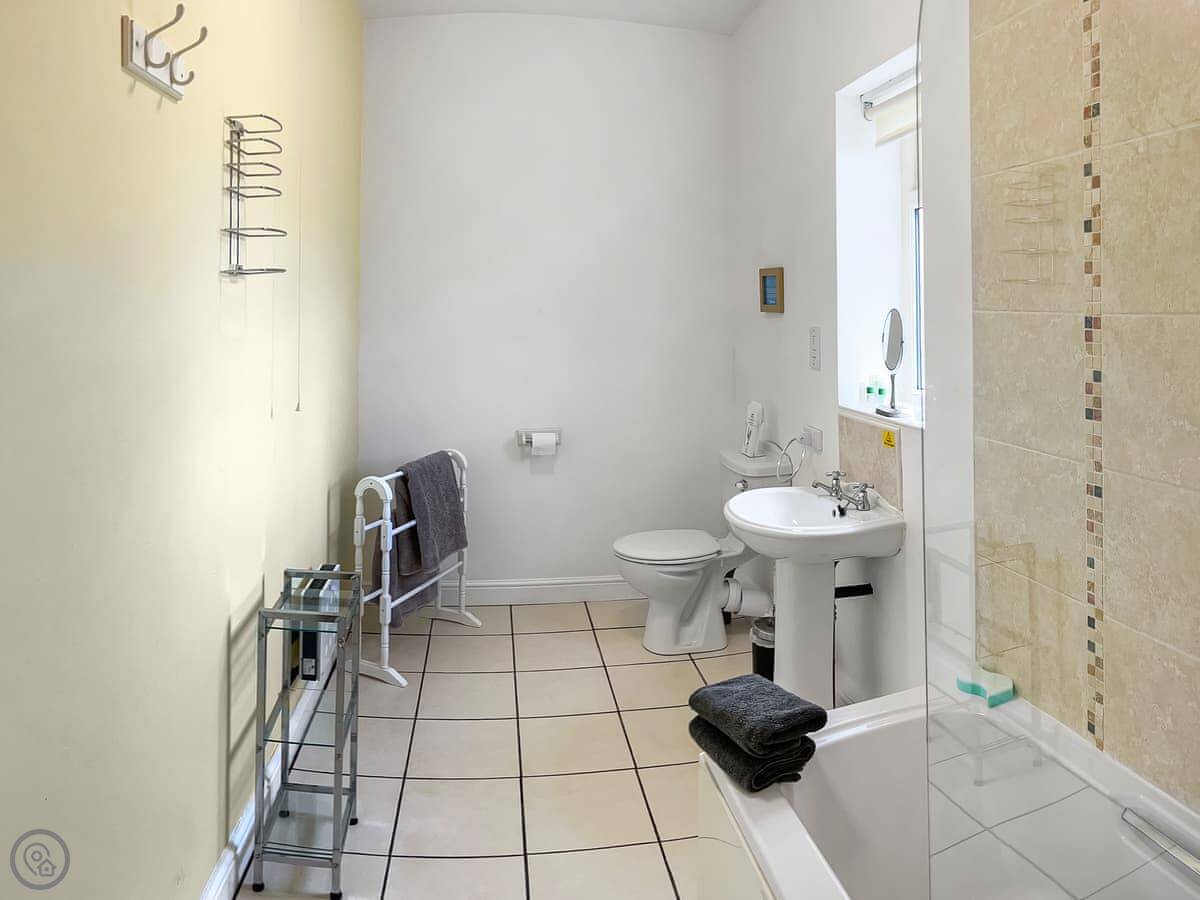 It's got a 4 Star rating. That means everything is in good, clean working order. The bed is a double. There's one bathroom with a shower over the bath. You're welcome to bring one dog.