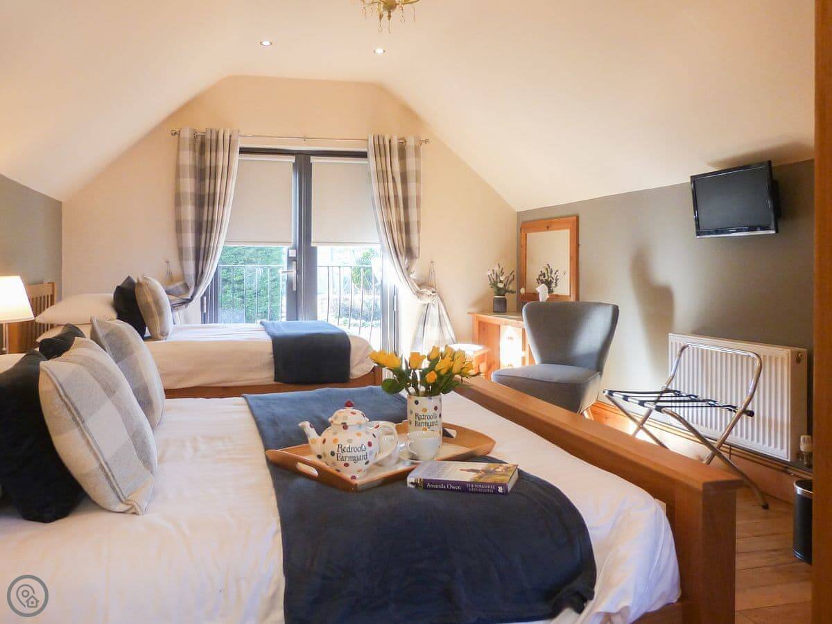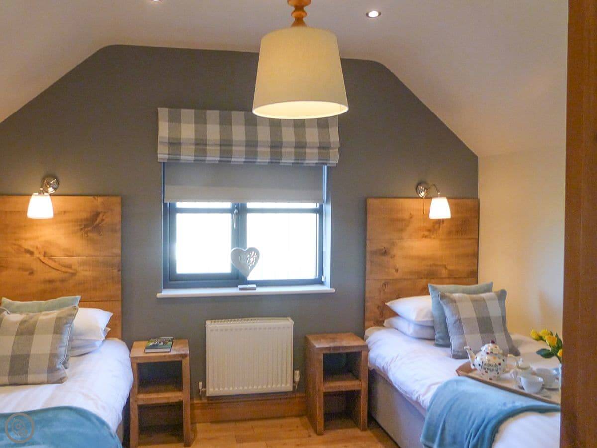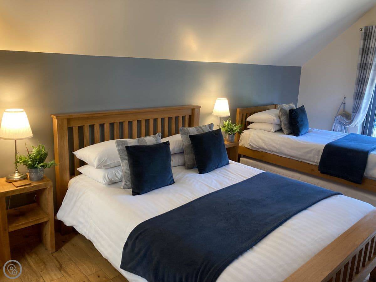It sleeps six, in two bedrooms. There are two bathrooms, which is handy. It's got a 4 Star rating. It's comfortable and well-equipped, not old-fashioned. The stairs are fine.