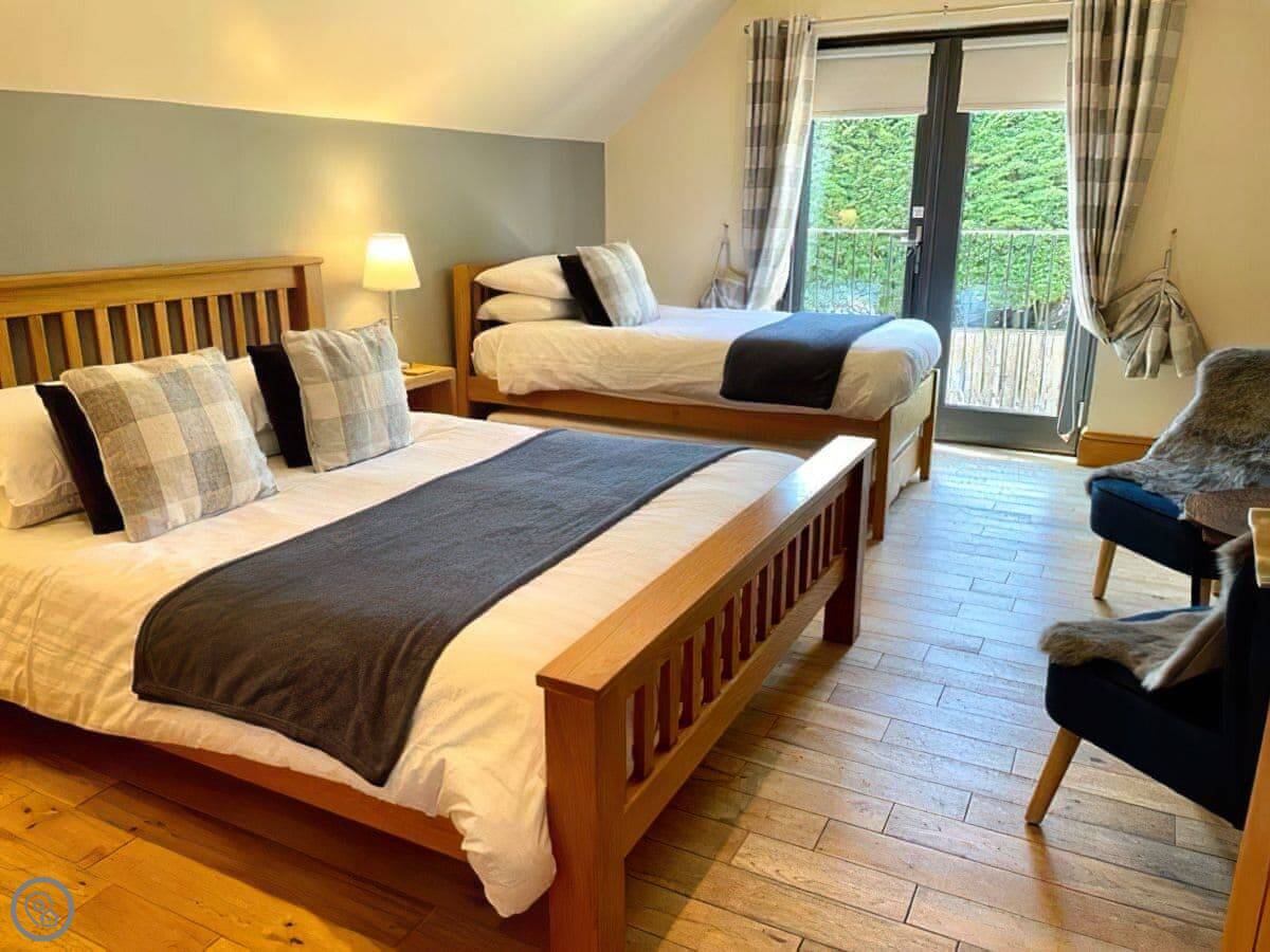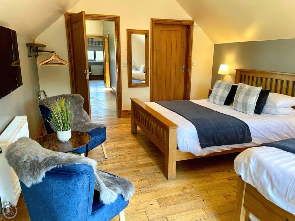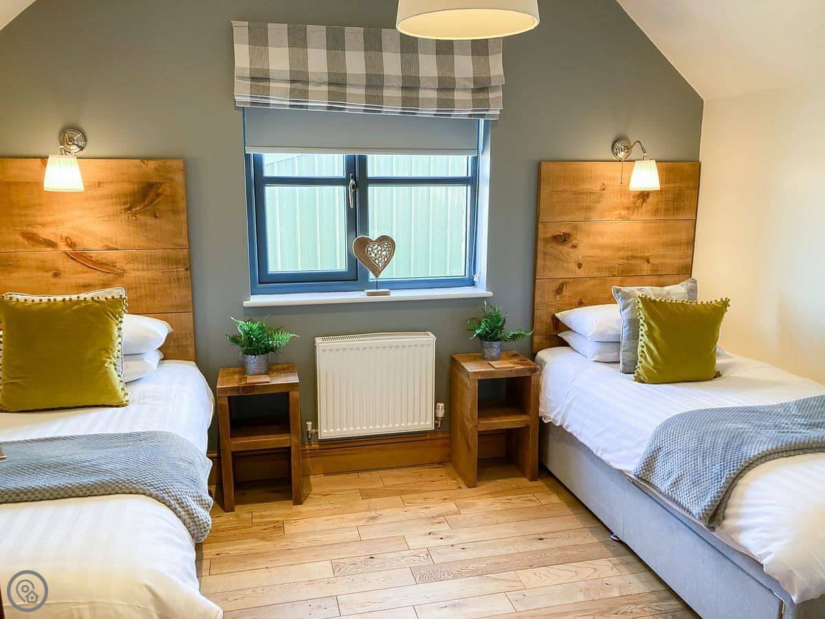 It sleeps six, in two bedrooms. There are two bathrooms, which is handy. It's got a 4 Star rating. It's comfortable and well-equipped, not old-fashioned. The stairs are fine.