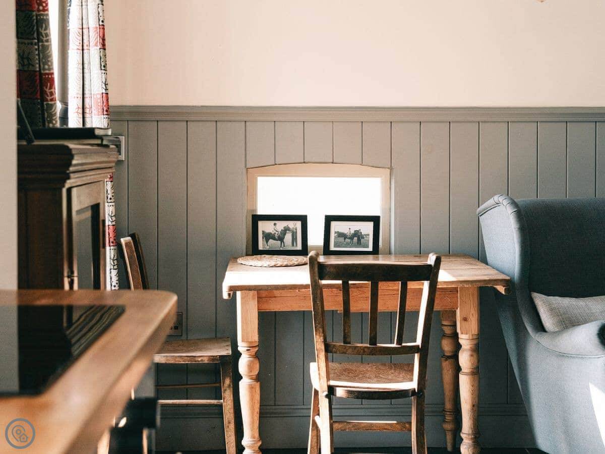 It sleeps two. One bedroom, one ensuite shower room. It's got a 4 Star rating. It's comfortable, not huge. The living room has a wood burner. The kitchen is a decent size.