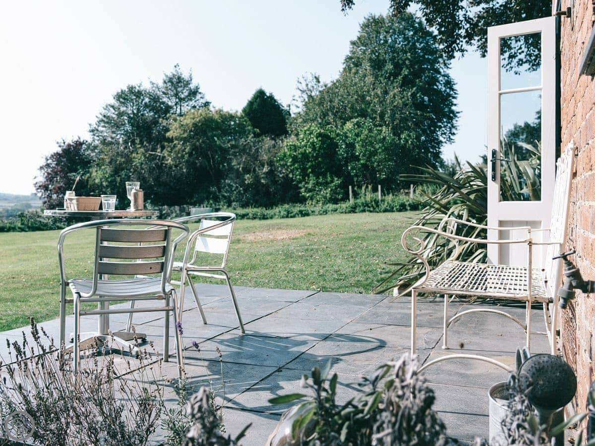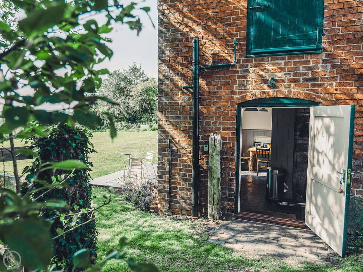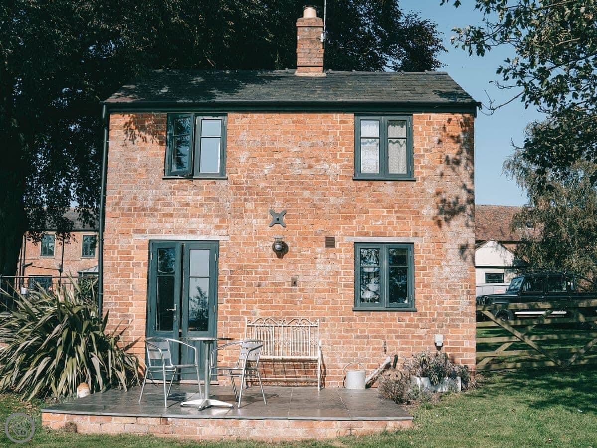 Southfield Cottage is in Braunston. It's one of three places here. This one is a detached cottage at the bottom of our garden. It's quiet, and you get the garden to yourselves. It looks out over a paddock to fields.