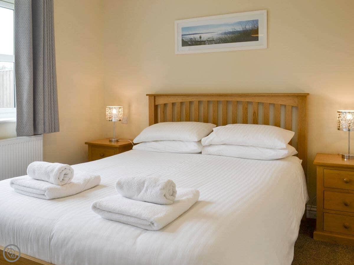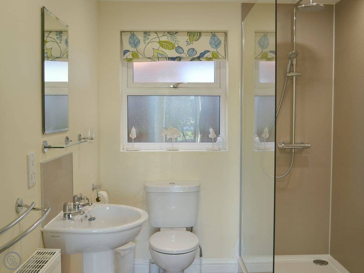 It sleeps four. Two bedrooms, one bathroom. It's got a 4 Star rating, which is good. It means it's comfortable and well-equipped. The bathroom has a walk-in shower. The front door and the rooms are all wheelchair accessible, but the paths in the garden might be a bit narrow for some chairs.