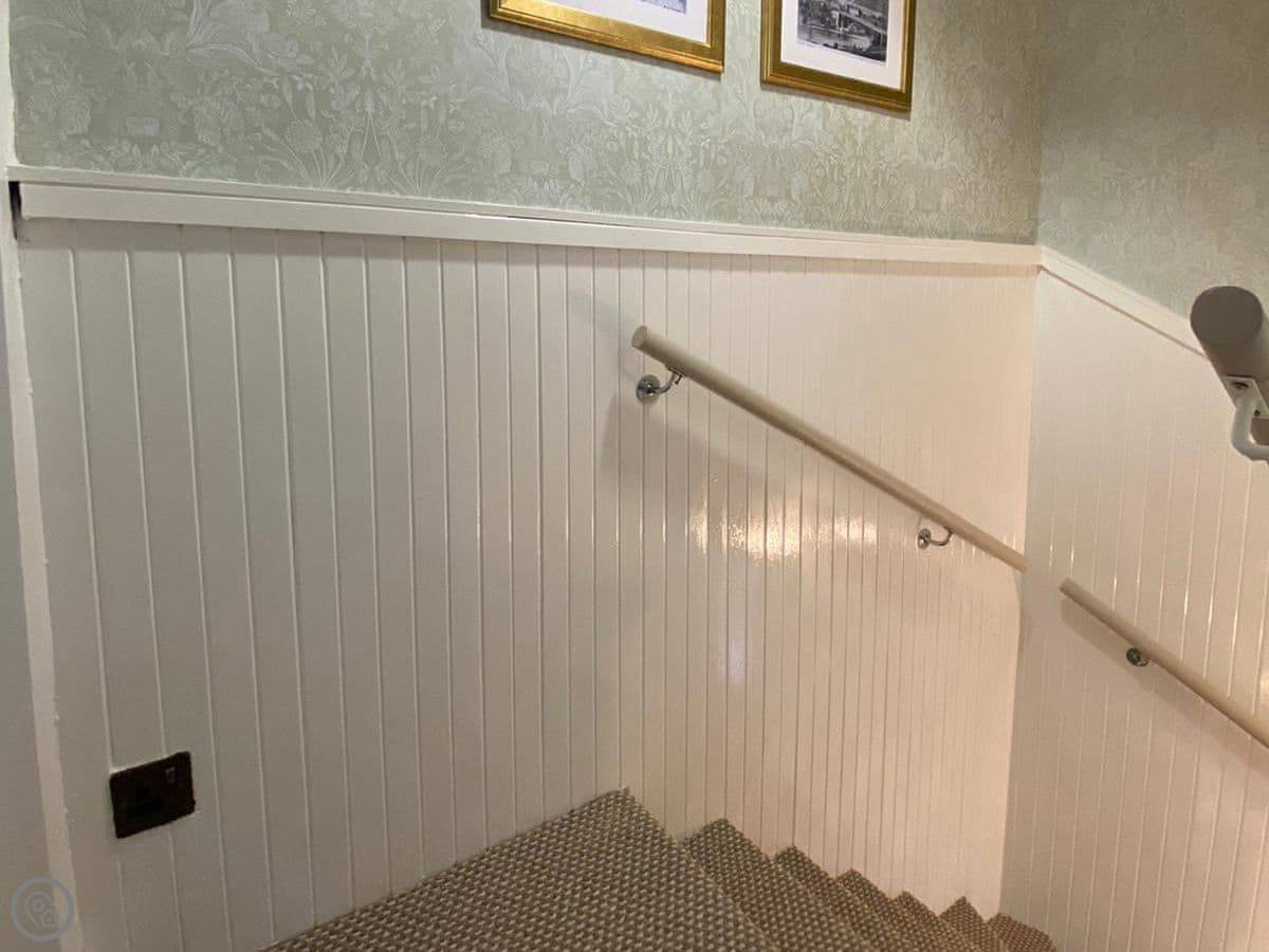 It sleeps four. Two bedrooms, one bathroom. It's a Four Star place, so it's comfortable and well equipped. The kitchen is new. You should know the stairs are steep and spiral. They're original to the building.