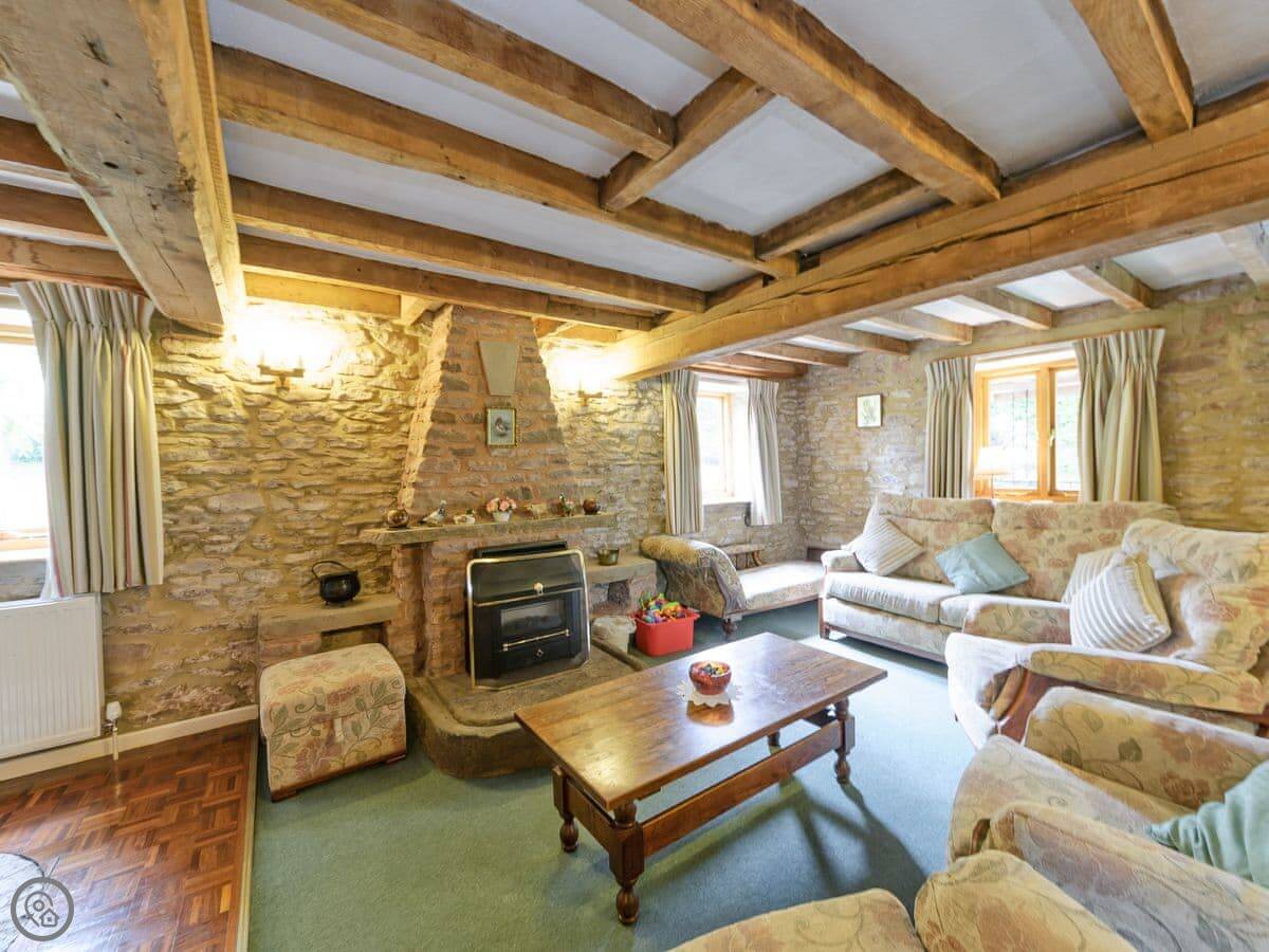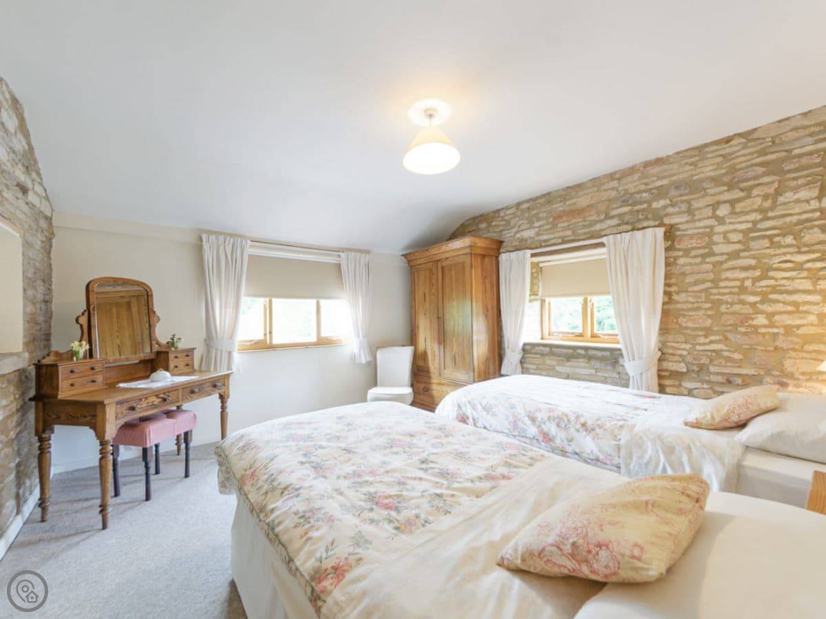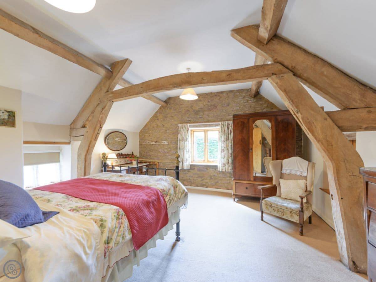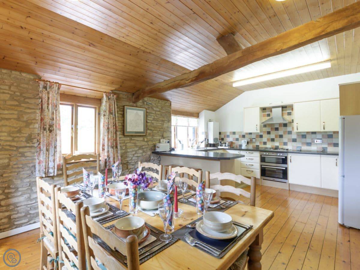 It sleeps eight. Four bedrooms, two bathrooms. It's got a 4 Star rating. We kept a lot of the original bits when we converted it, like the beams, stonework, and some of the millstones. The kitchen is new, though.