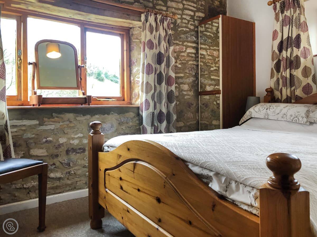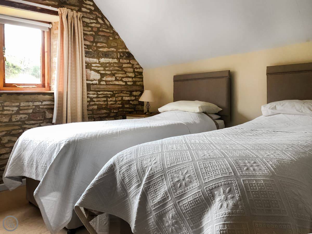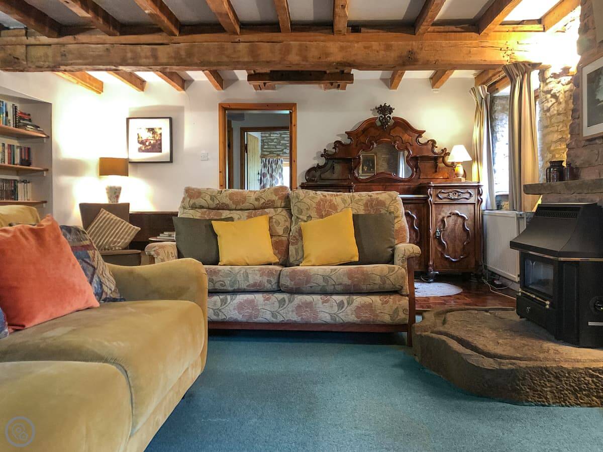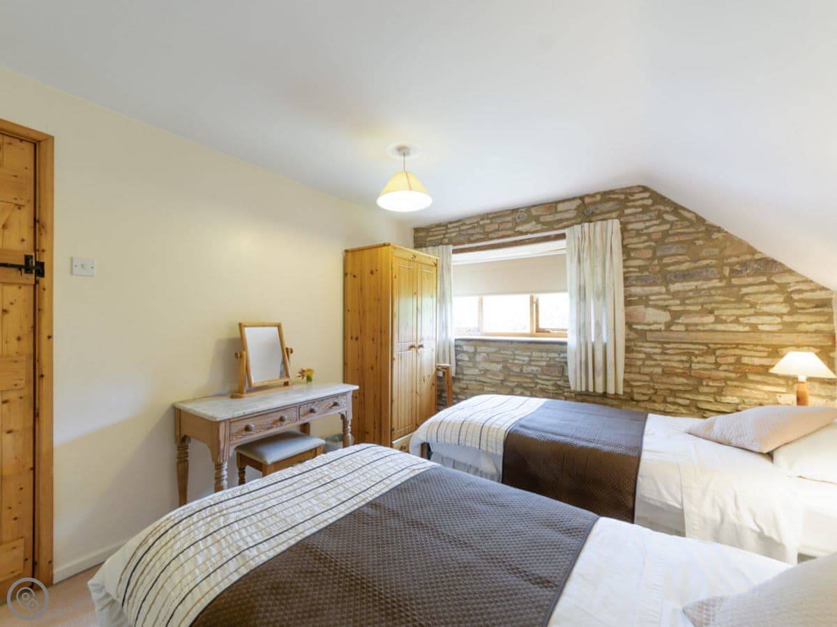 It sleeps eight. Four bedrooms, two bathrooms. It's got a 4 Star rating. We kept a lot of the original bits when we converted it, like the beams, stonework, and some of the millstones. The kitchen is new, though.