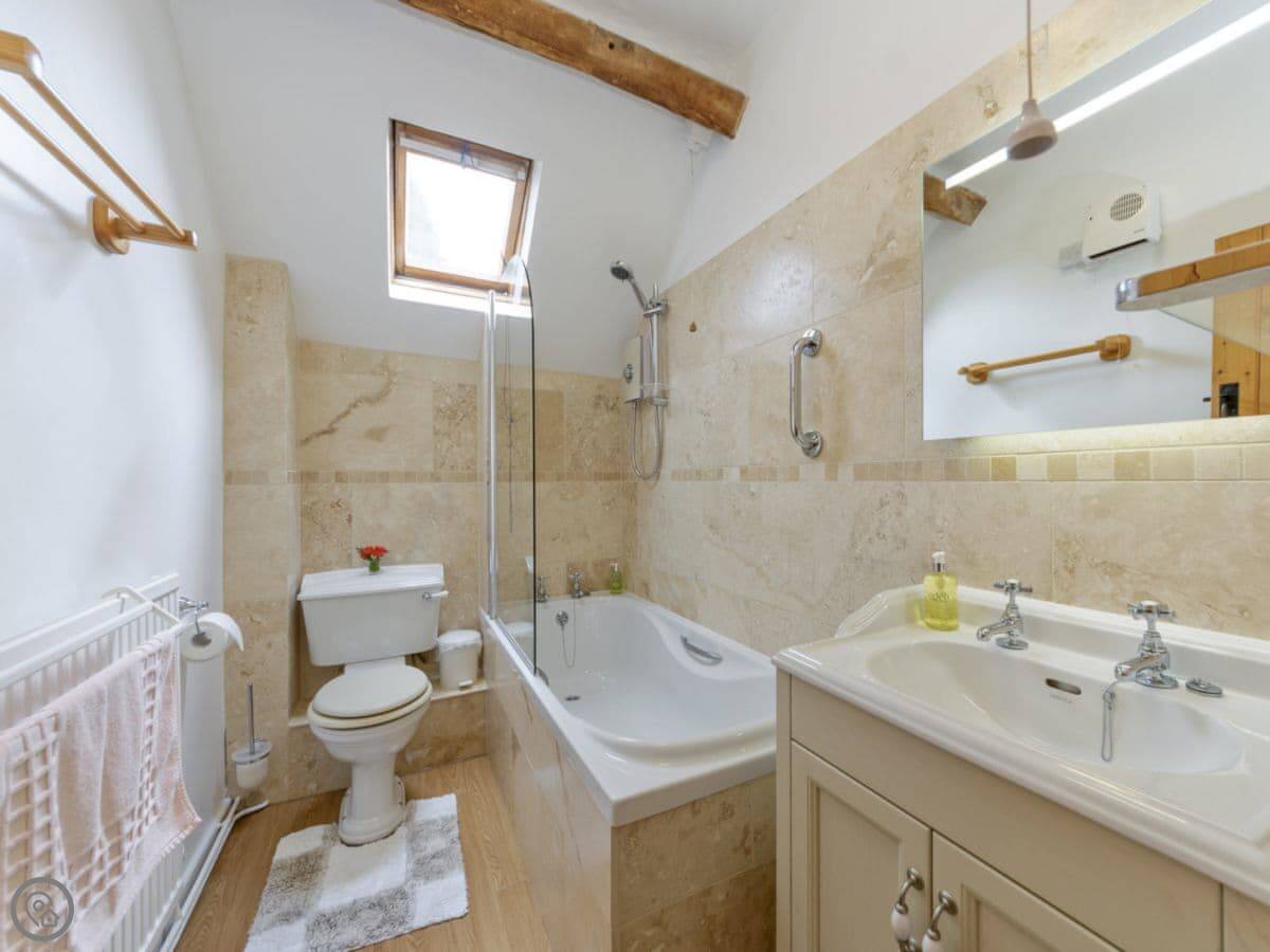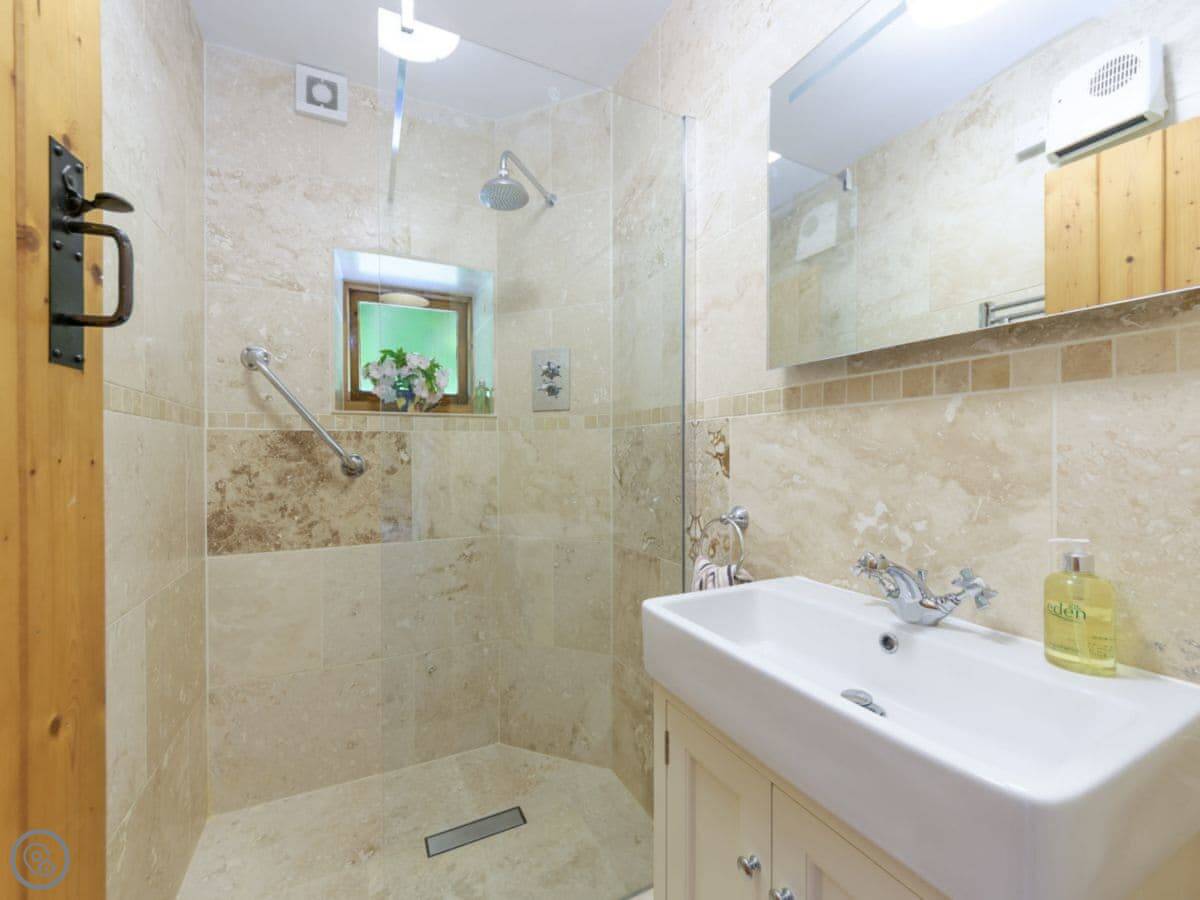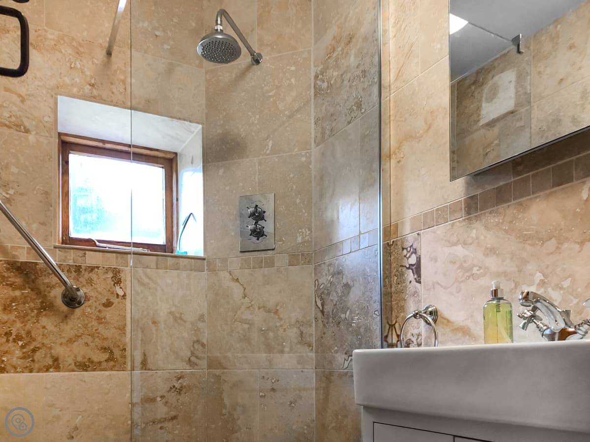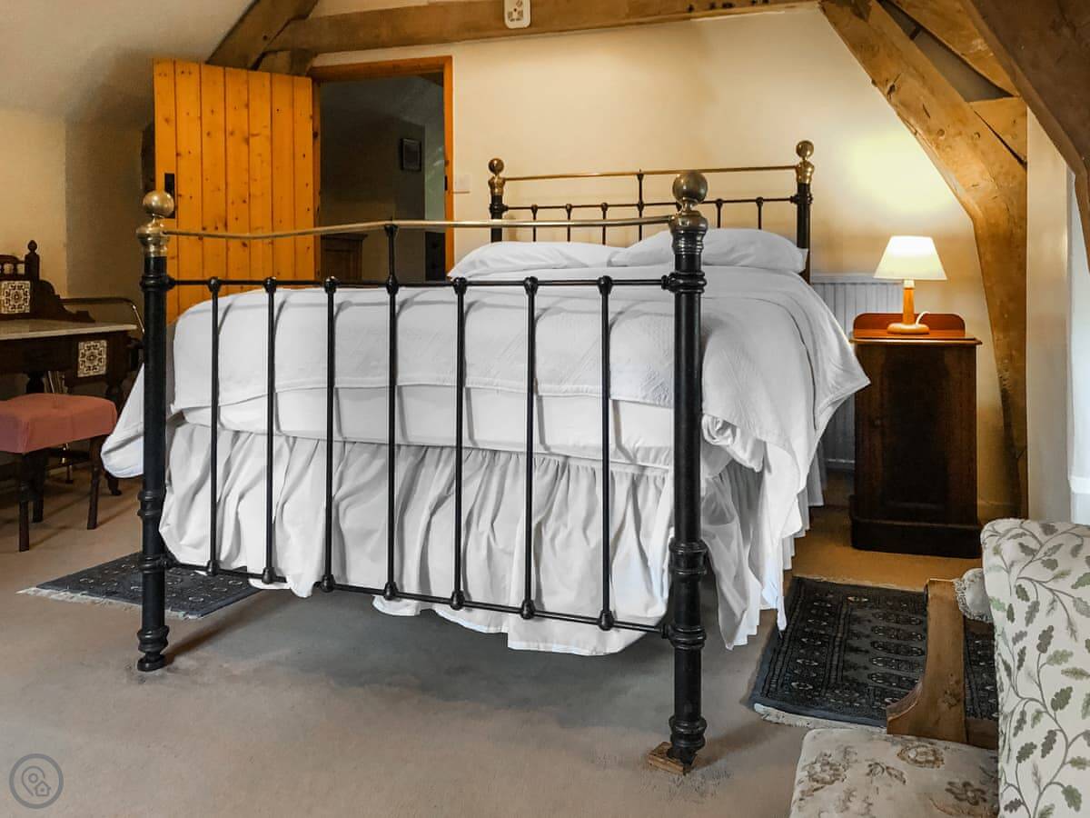 It sleeps eight. Four bedrooms, two bathrooms. It's got a 4 Star rating. We kept a lot of the original bits when we converted it, like the beams, stonework, and some of the millstones. The kitchen is new, though.